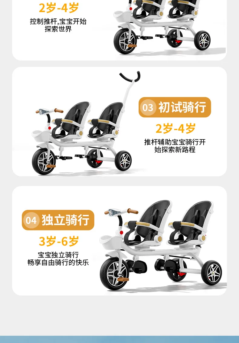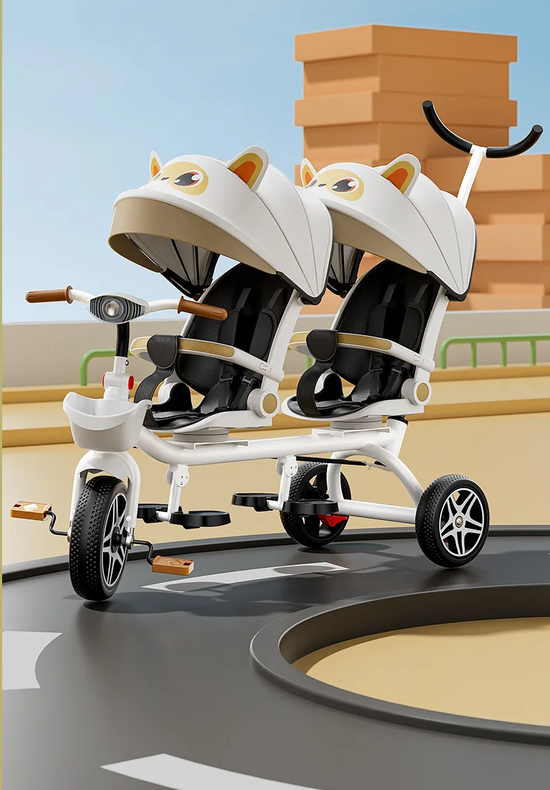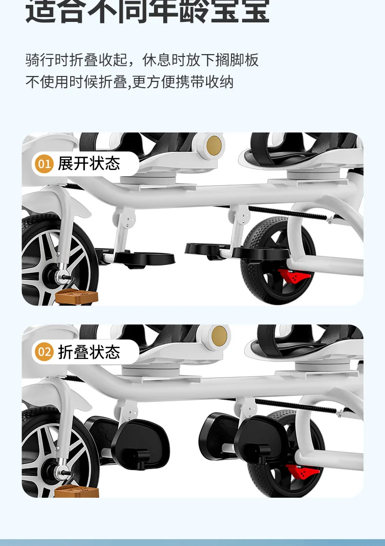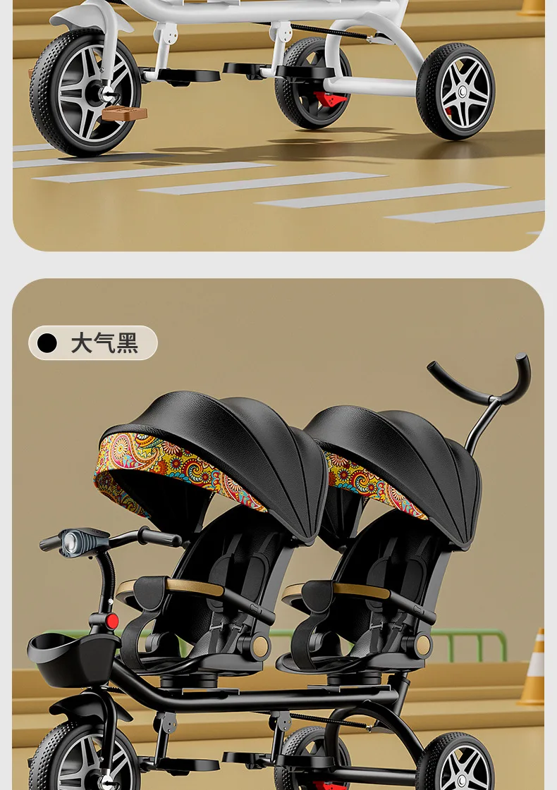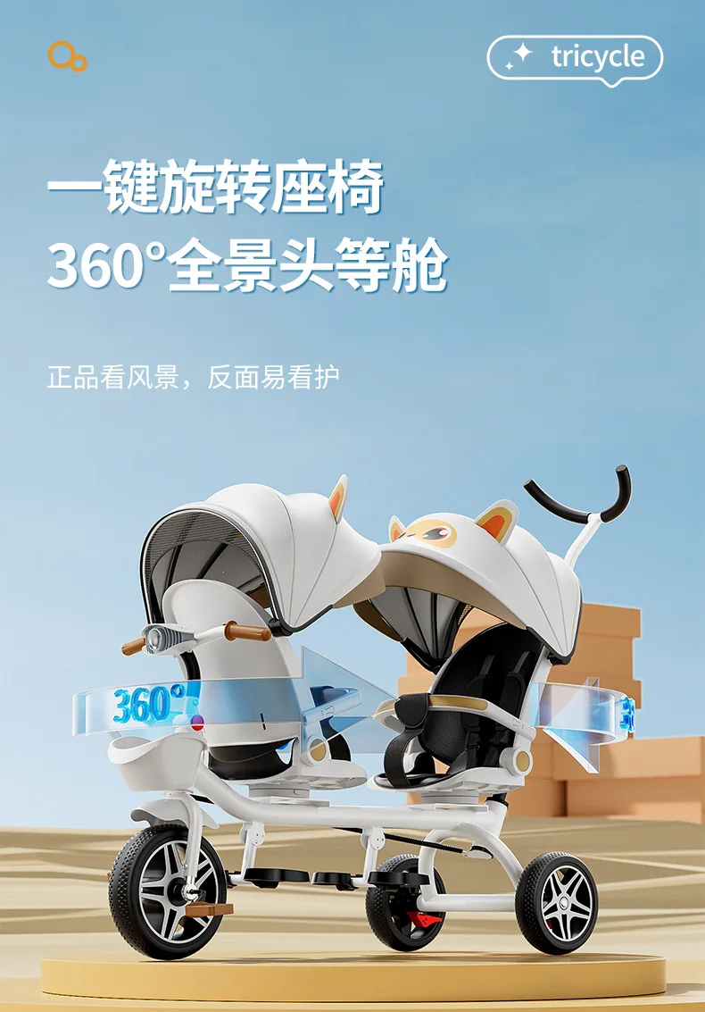 Carrito de mano doble para bicicleta de bebé, asiento giratorio para bebé, asiento de bicicleta ajustable para niños de 1 a 6 años