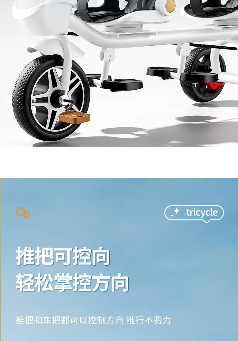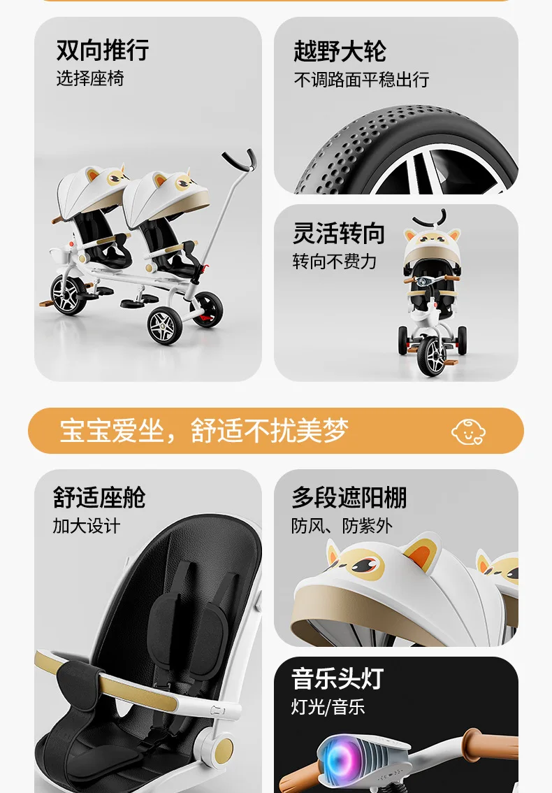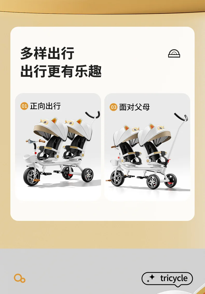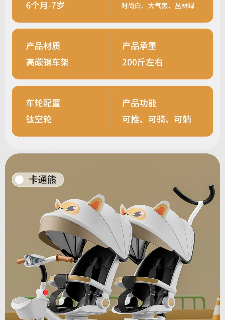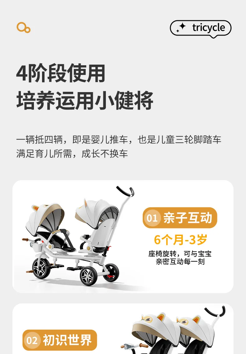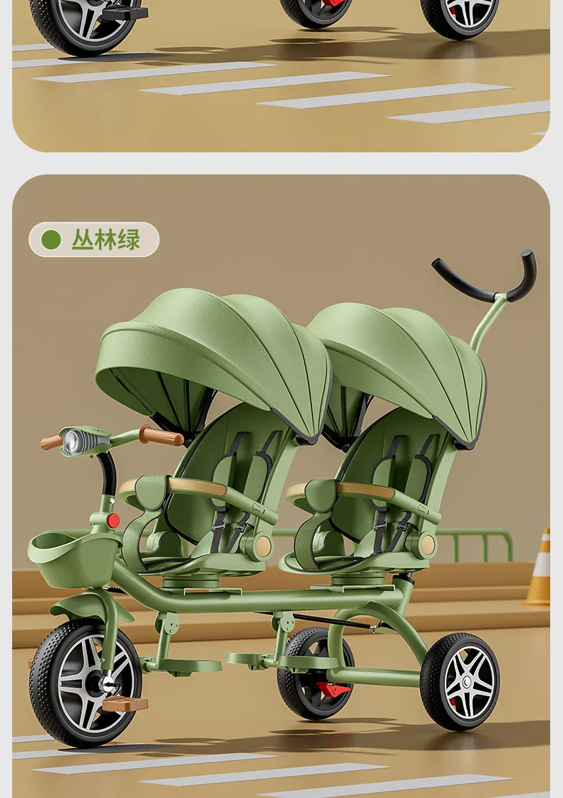Carrito de mano doble para bicicleta de bebé, asiento giratorio para bebé, asiento de bicicleta ajustable para niños de 1 a 6 años