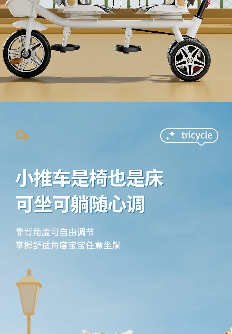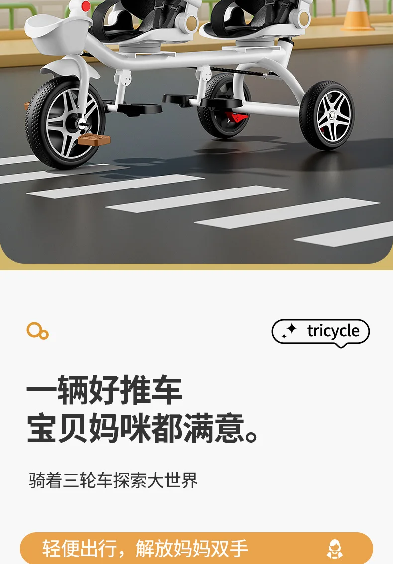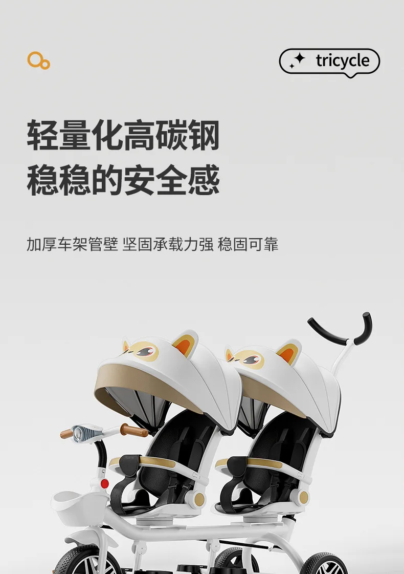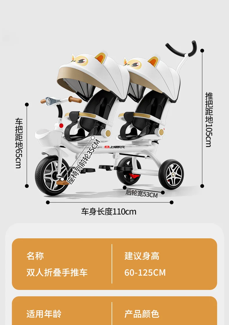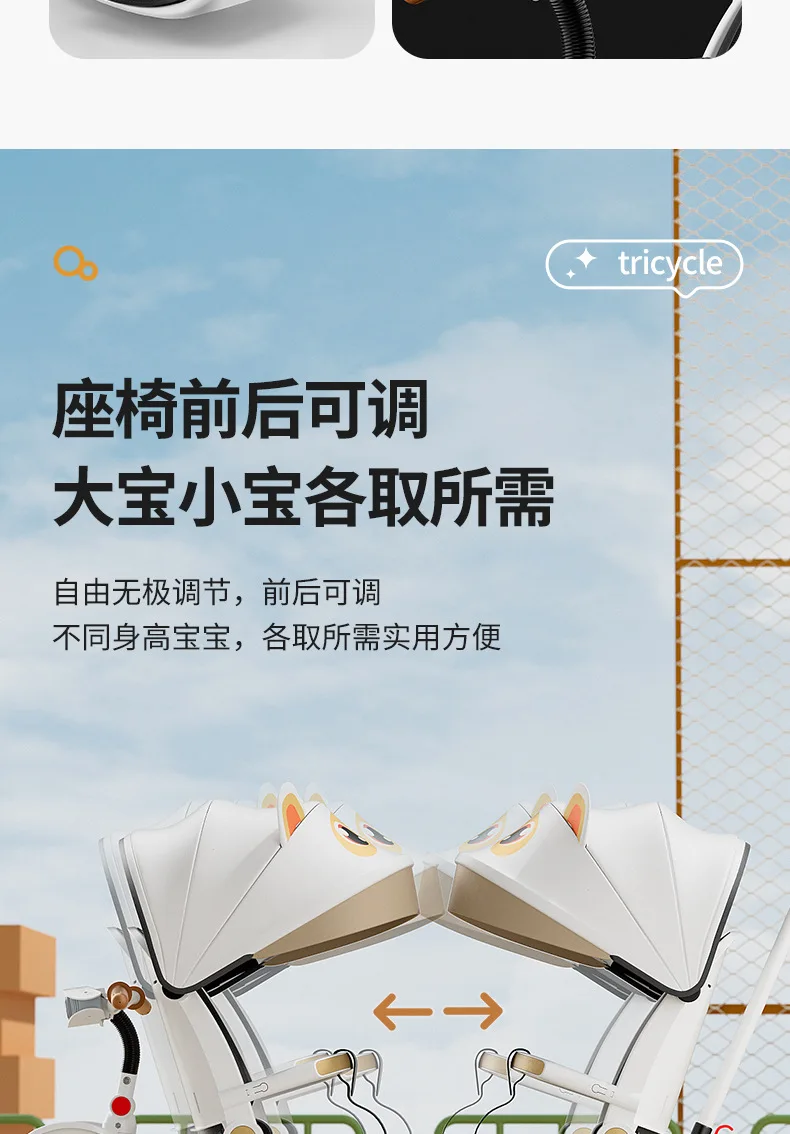 Carrito de mano doble para bicicleta de bebé, asiento giratorio para bebé, asiento de bicicleta ajustable para niños de 1 a 6 años