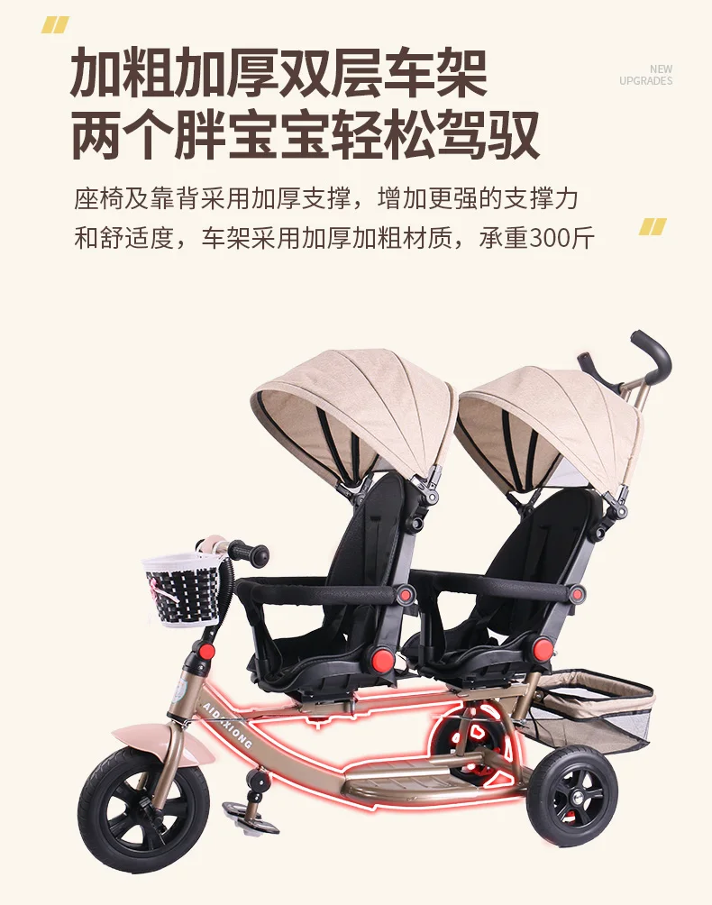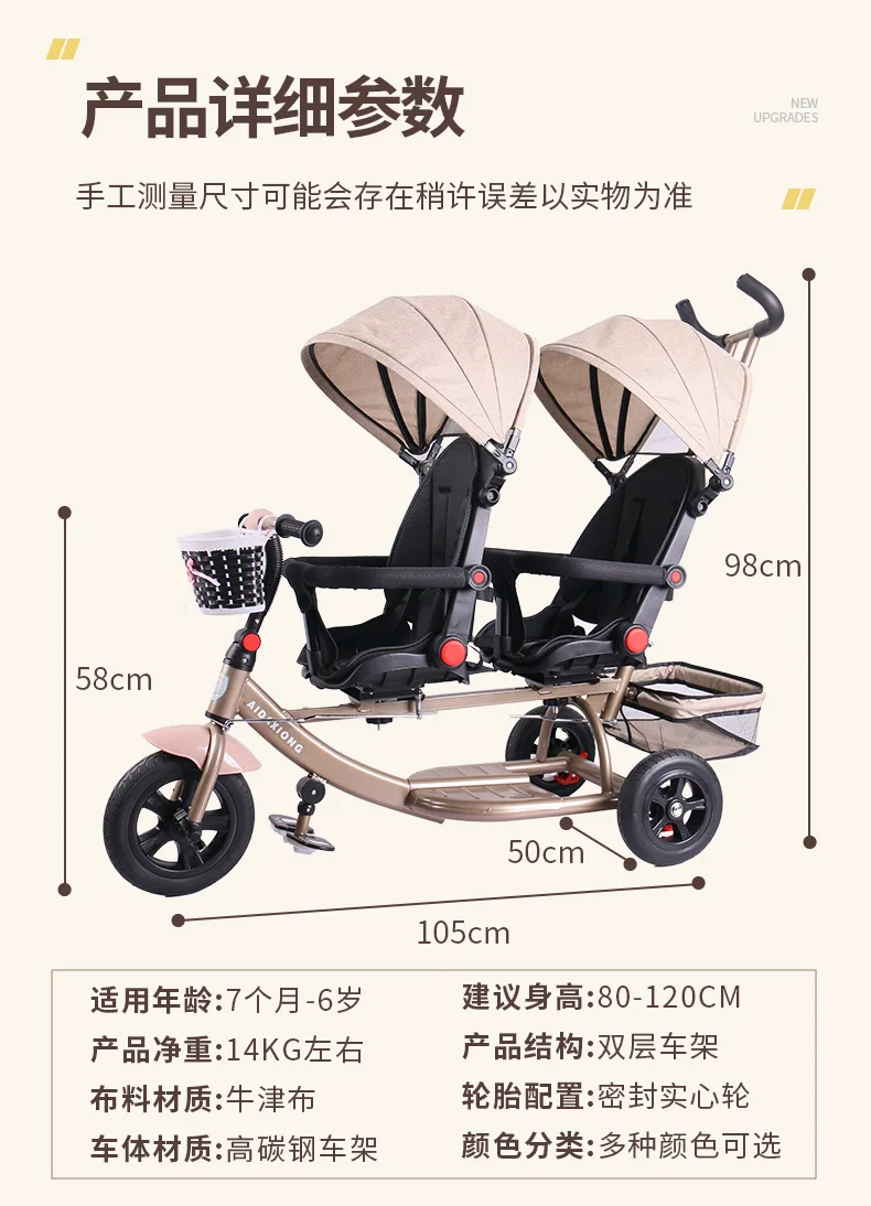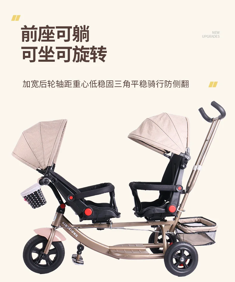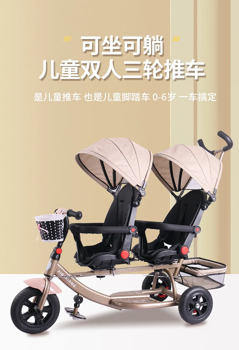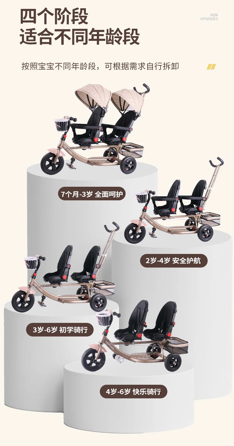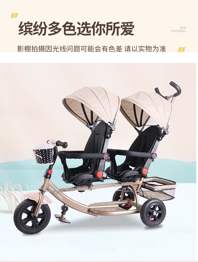 Carrito de mano doble para niños, tamaño dos asientos delanteros y traseros, bicicleta de bebé doble, puede sentarse y acostarse, cochecito de bebé, herramienta divina