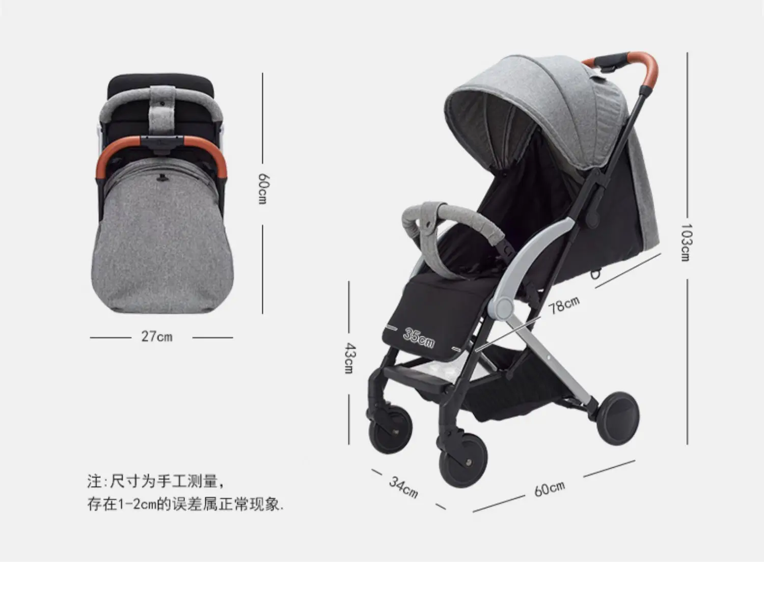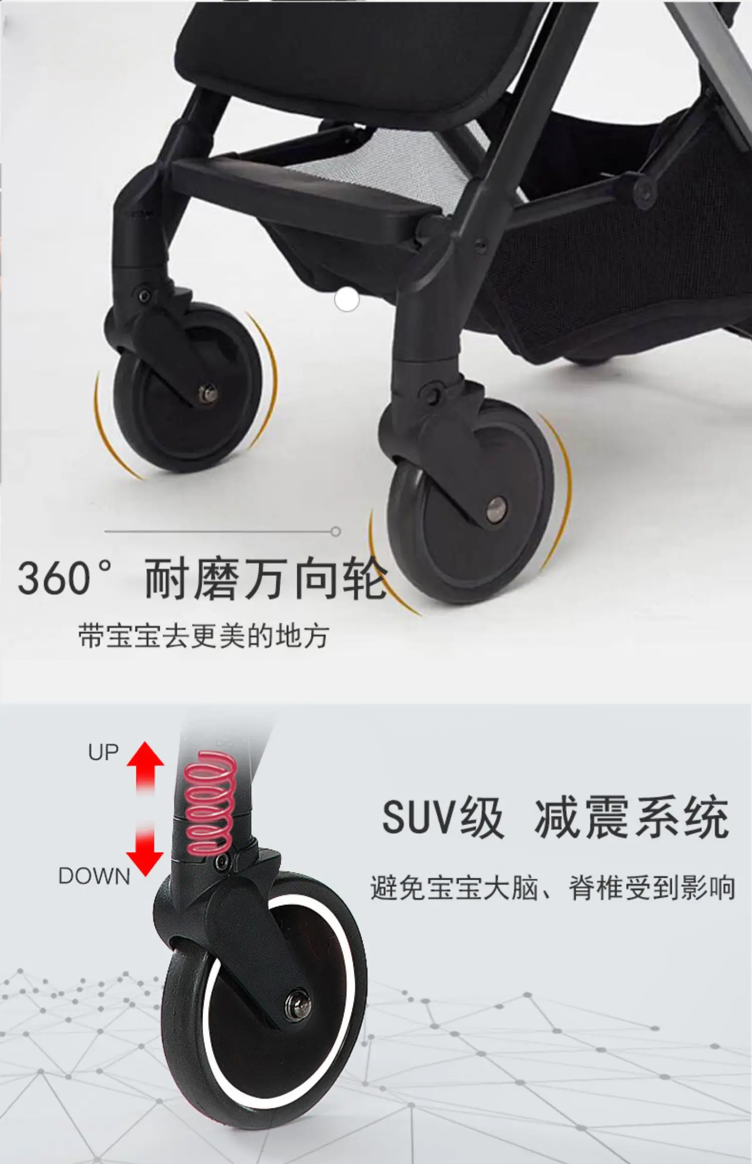 El carrito con sombrilla para cochecito se puede tumbar en el carrito plegable ultraligero portátil con un solo clic y amortiguador de cuatro ruedas para niños