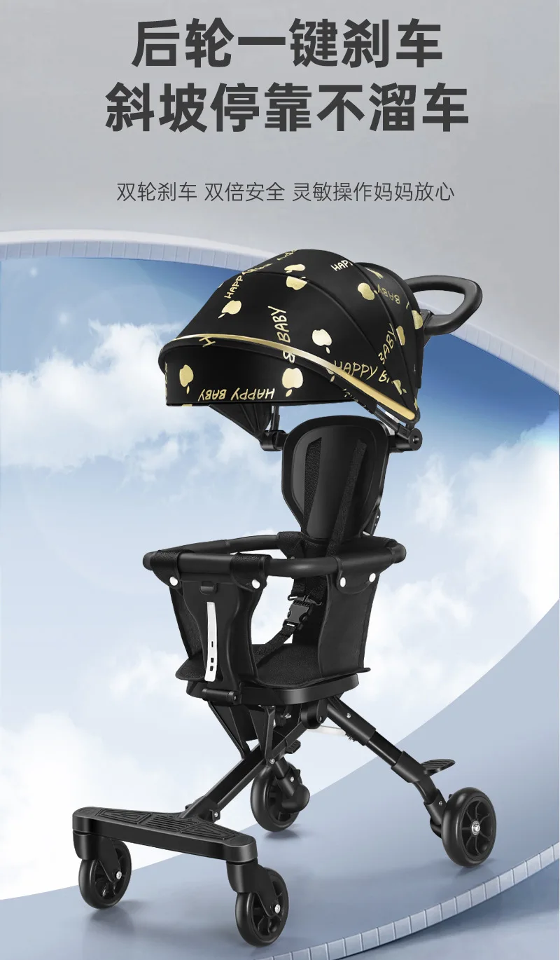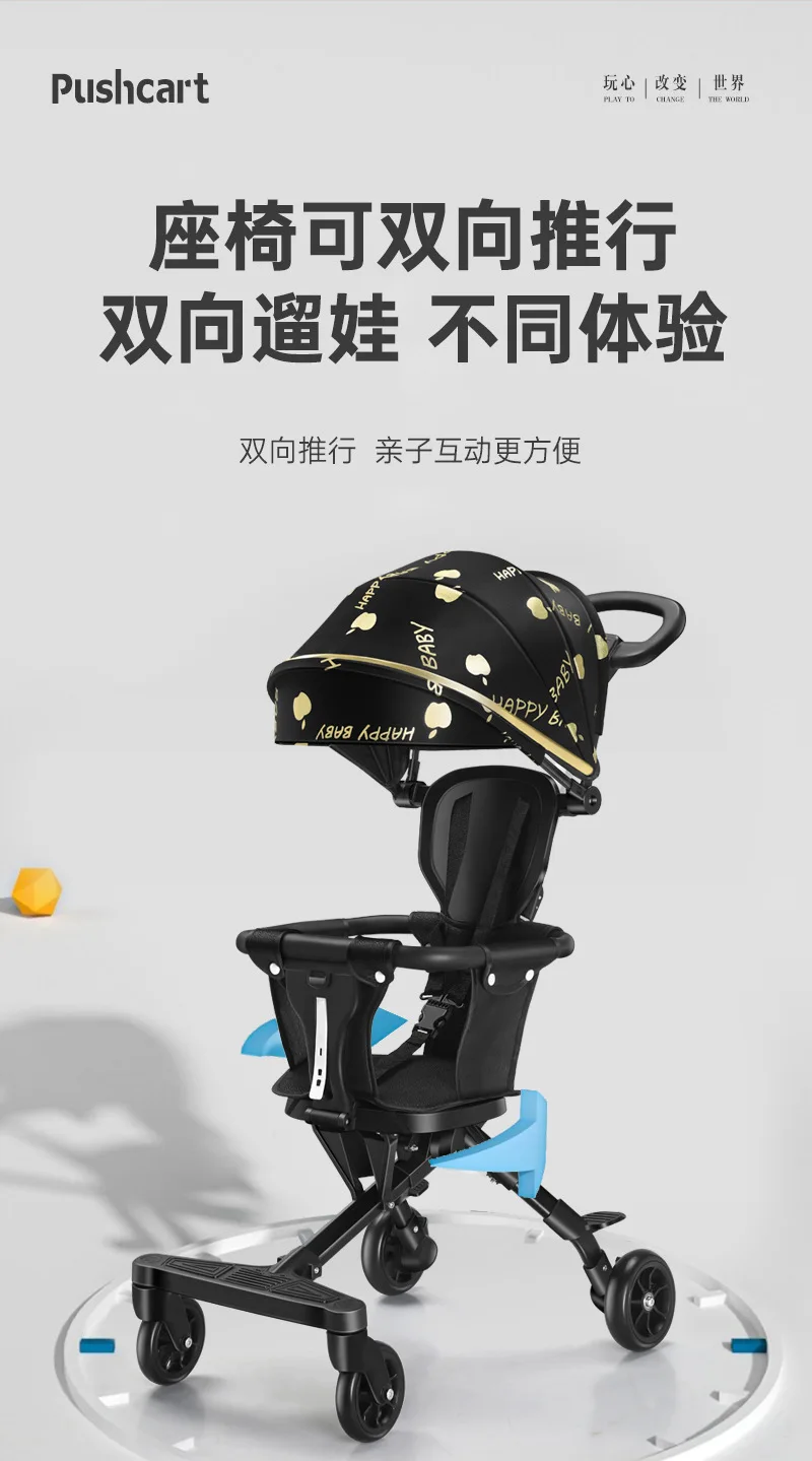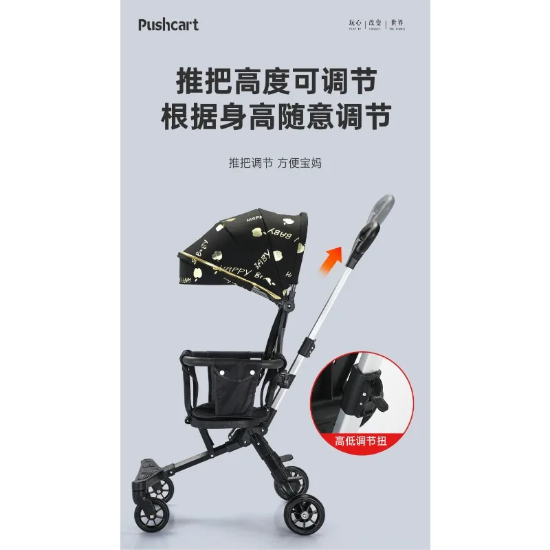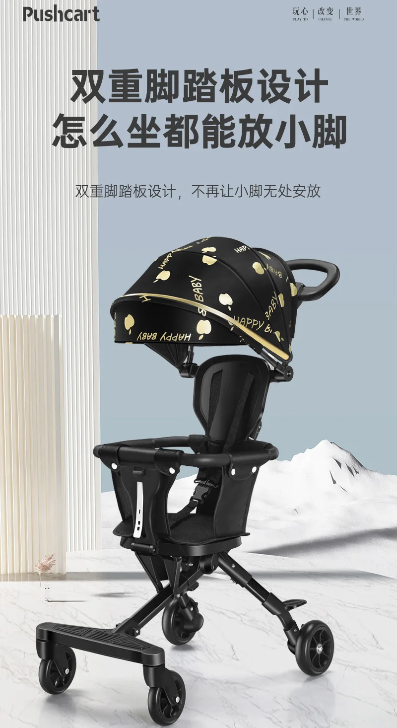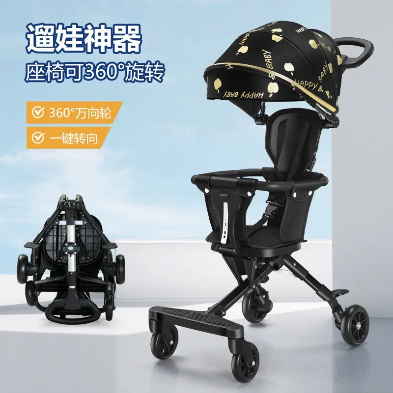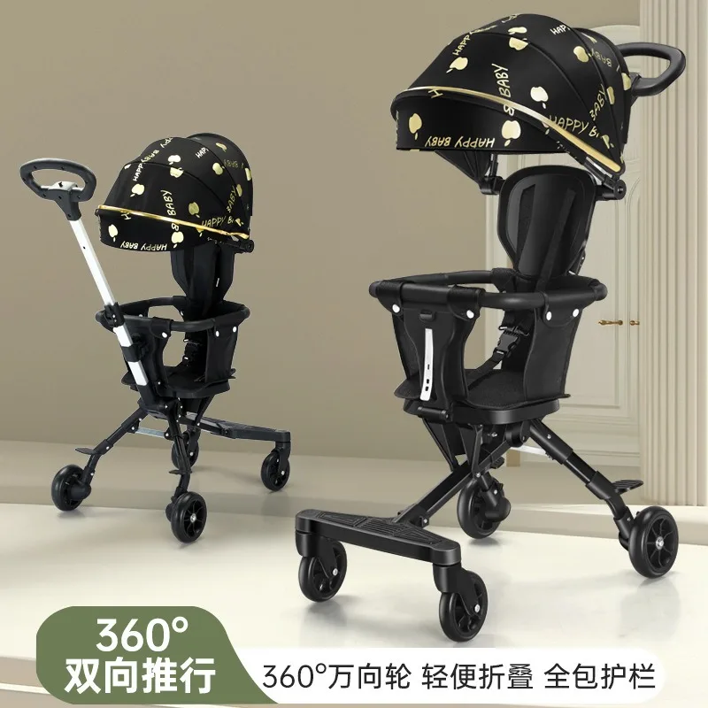 Comprar Carro para caminar bidireccional plegable ligero para bebé, carrito para bebé de cuatro ruedas con paisaje alto