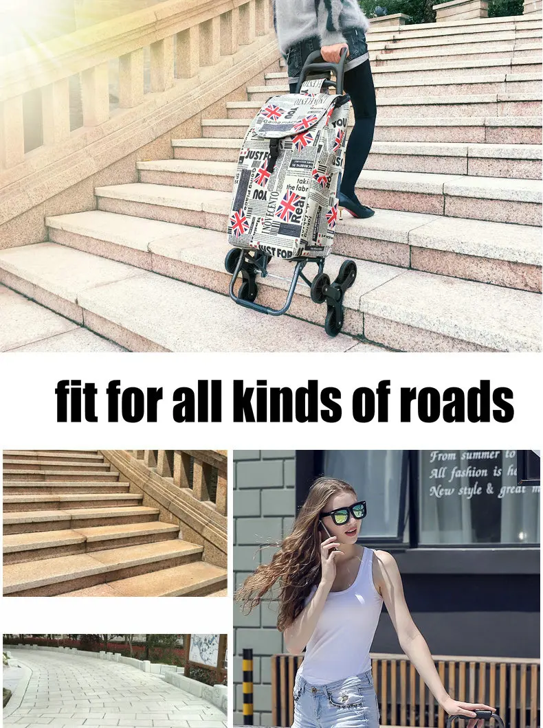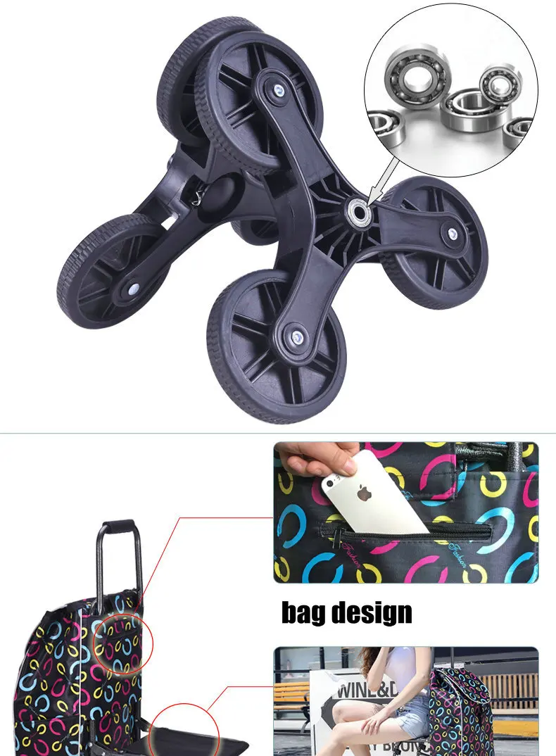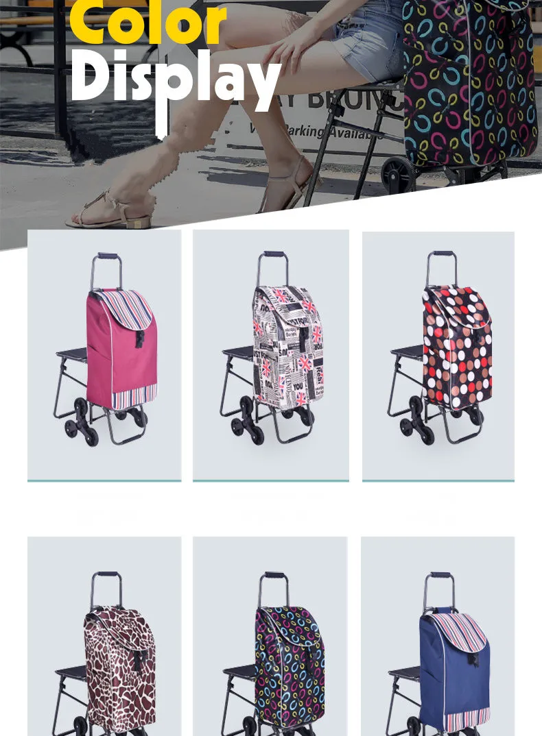 Carro de compras para subir escaleras caseras con bolsa impermeable, carrito doméstico con asiento, carrito de compras con estructura de acero, carrito con barra de tracción
