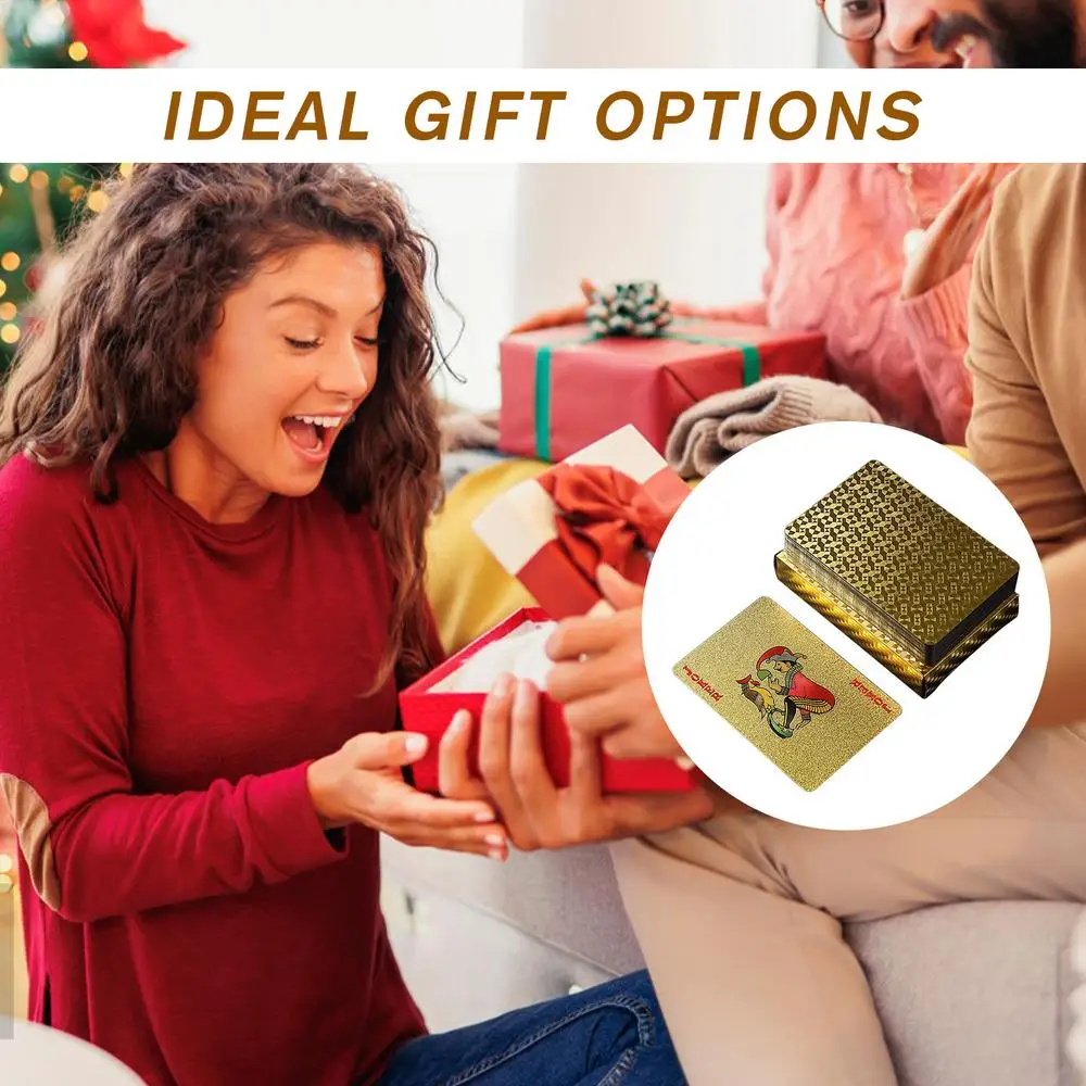 4.Regalo navideño: disfrute de una experiencia de juego mejorada con estas cartas de póquer de lámina dorada.Al elevar el cociente de estilo, son buenos regalos de Halloween, Navidad, Año, bodas y cumpleaños.
