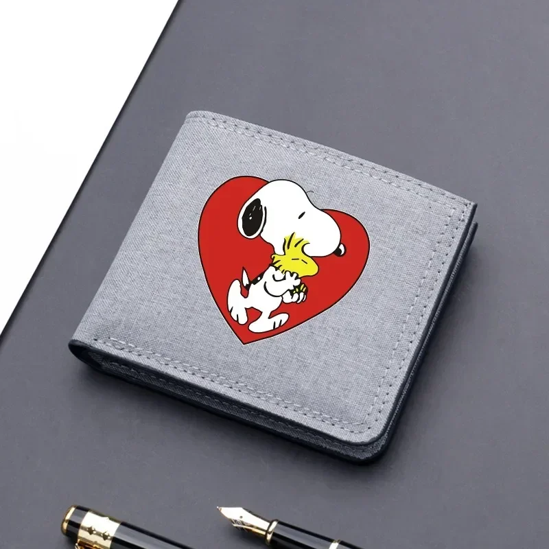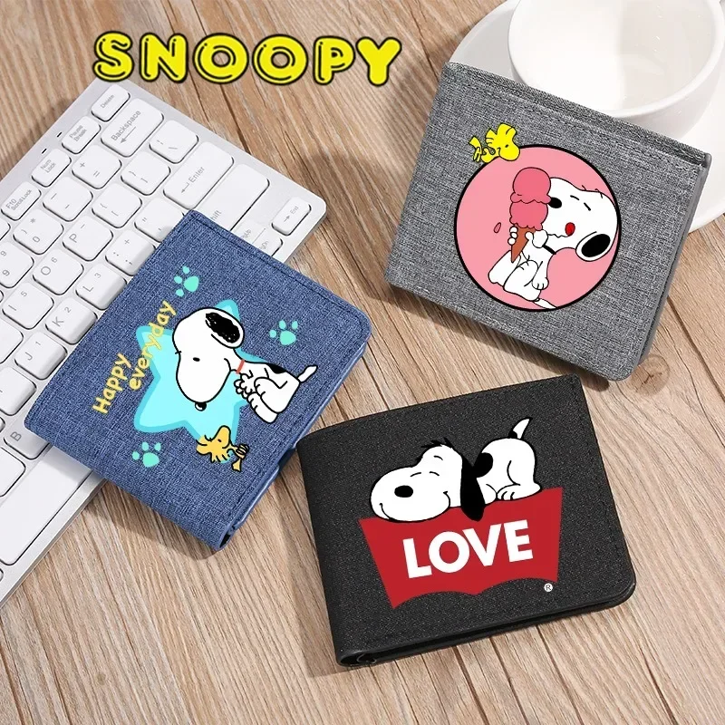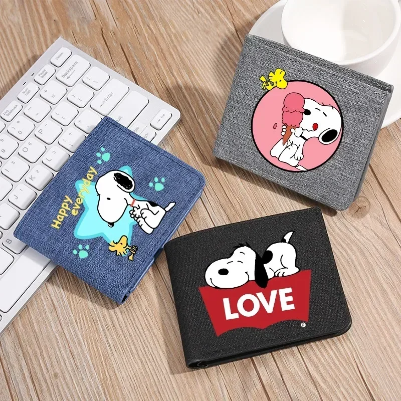 Cartera Snoopys para mujer, monedero plegable, figura de Anime Kawaii, soporte para paquete de tarjetas para niño y niña, Mini bolsa de almacenamiento para tarjetas bancarias, regalo para niños