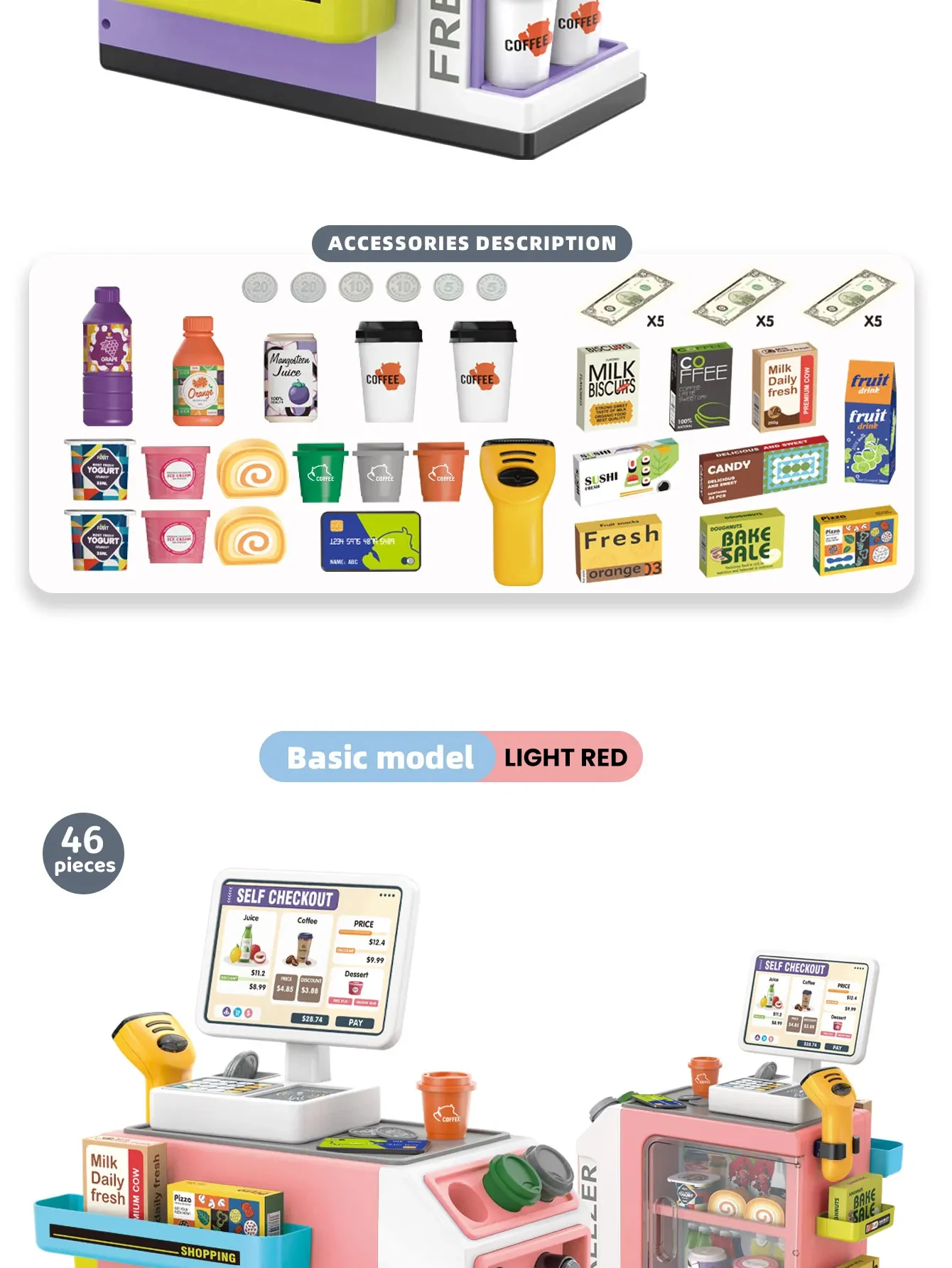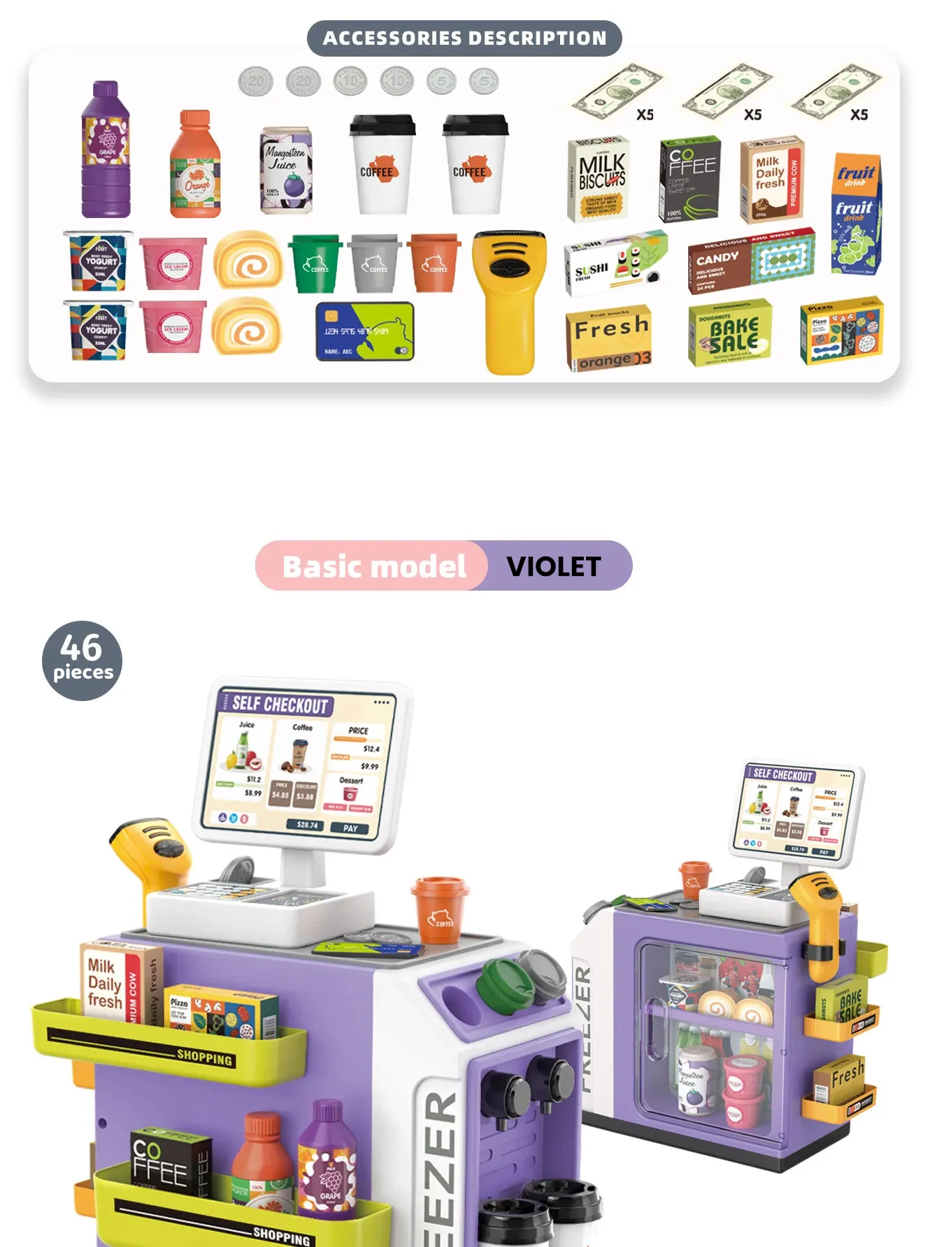 1.Seguro y duradero: hecho de ABS de alta calidad, el mini cajero de supermercado no contiene BPA, es inodoro y cumple con los estándares de seguridad.Su superficie lisa garantiza que su
