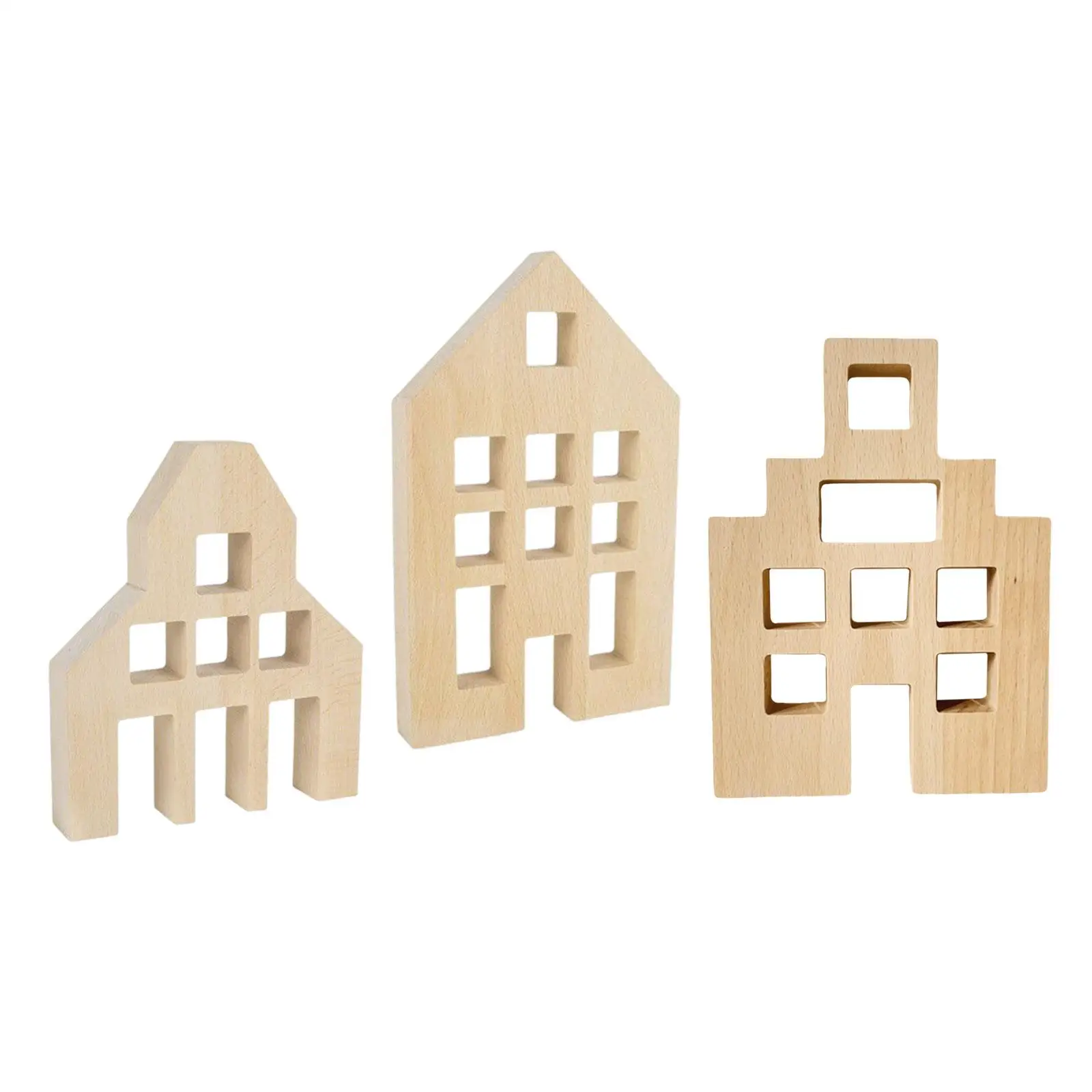 Comprar Casa de madera de 3 piezas para niños y niñas, juguete de apilamiento Montessori, regalo creativo, adorno, centro de mesa, favores de fiesta, librería para el hogar