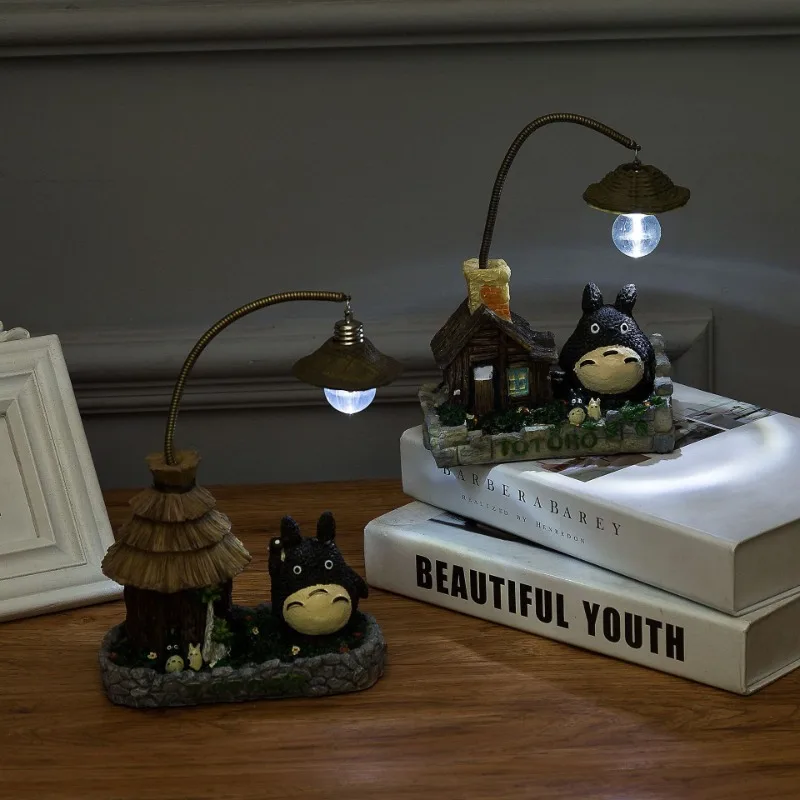 Casa de madera de dibujos animados de Anime, casa de hierba, luz nocturna pequeña, escritorio, decoración de oficina, adorno de luz nocturna pequeña, regalo de cumpleañosAtención: Este producto no incluye pilas.Nota: