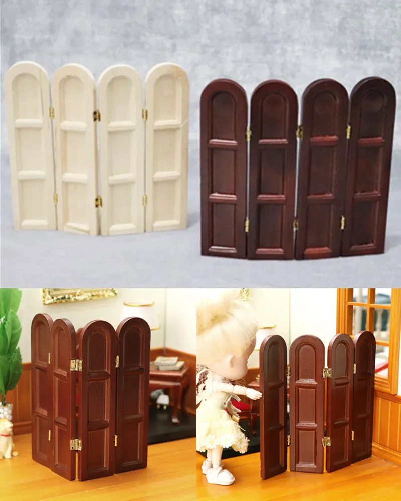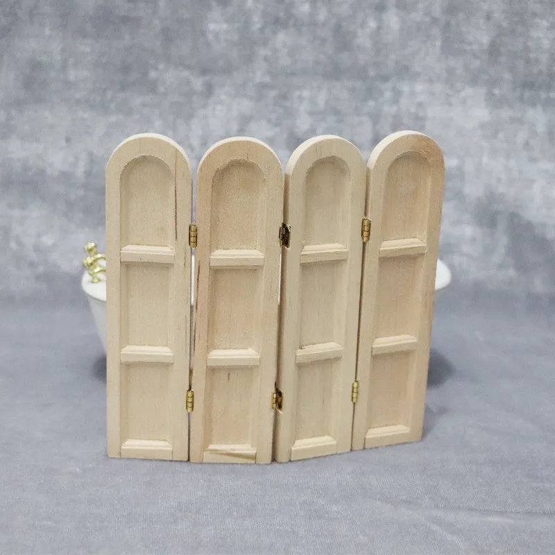 Casa de muñecas a escala 1:12, modelo de pantalla plegable de madera en miniatura, Mini pantalla Vintage, divisor de habitación para casa de muñecas, baño y sala de estar
