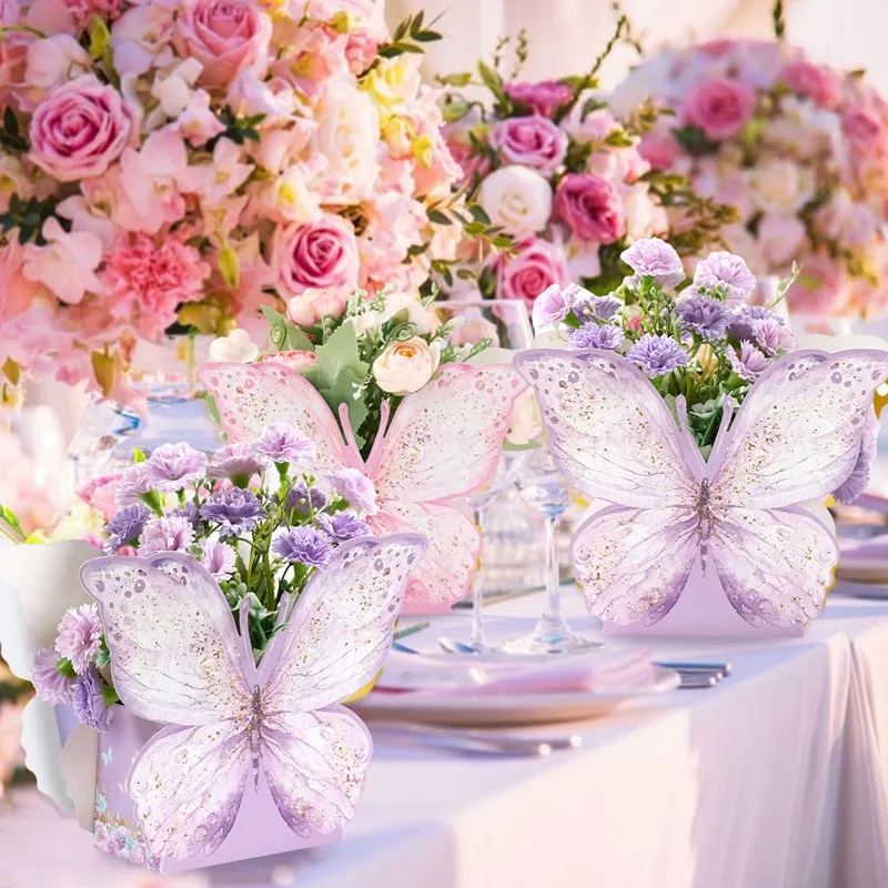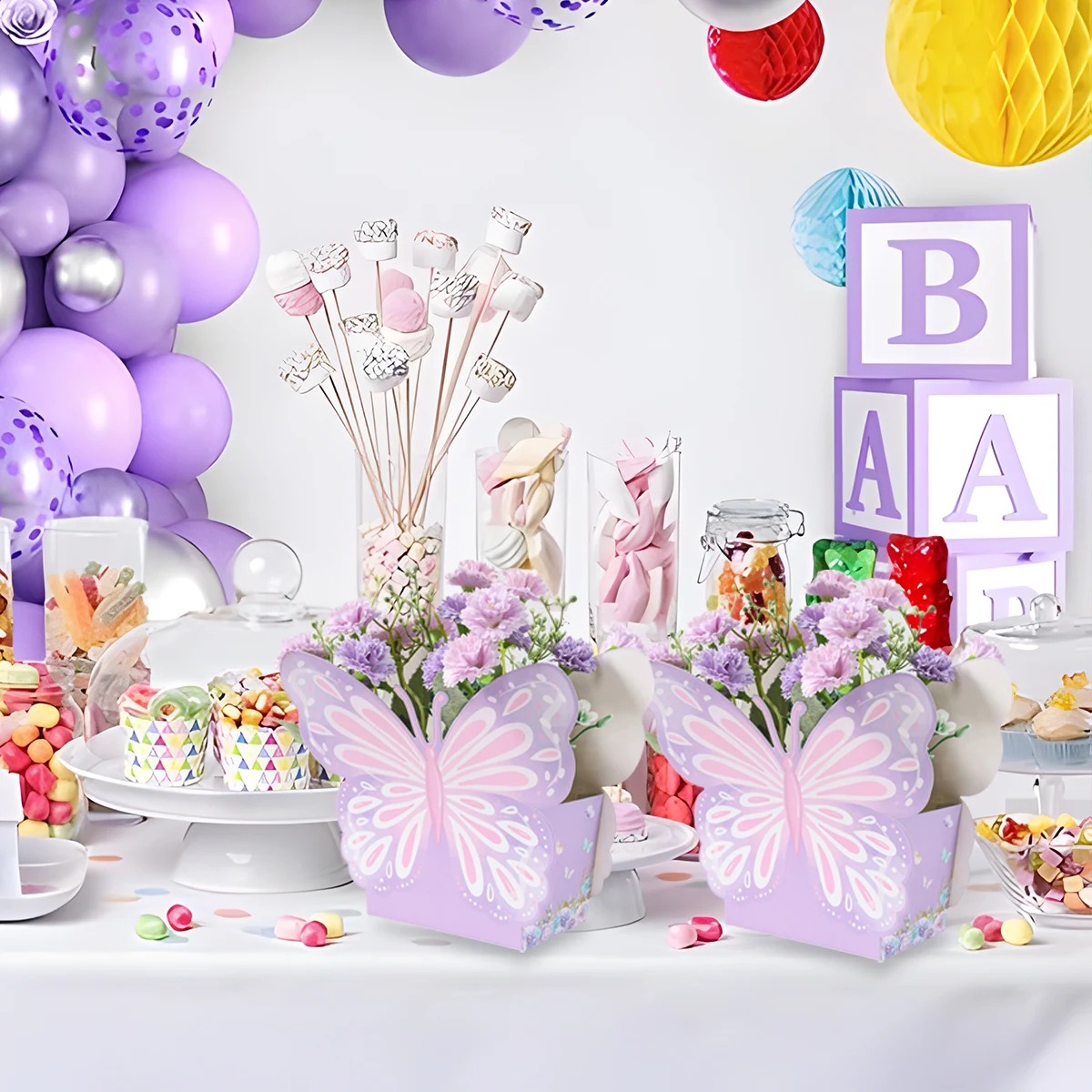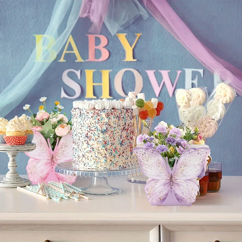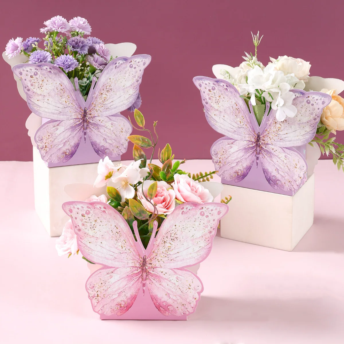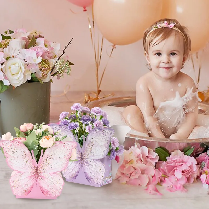 Centro de mesa de mariposa de simulación de doble cara 3D, decoración de cumpleaños, decoración de mariposa para niña, suministros de decoración para fiesta de cumpleaños y boda, 6 uds.