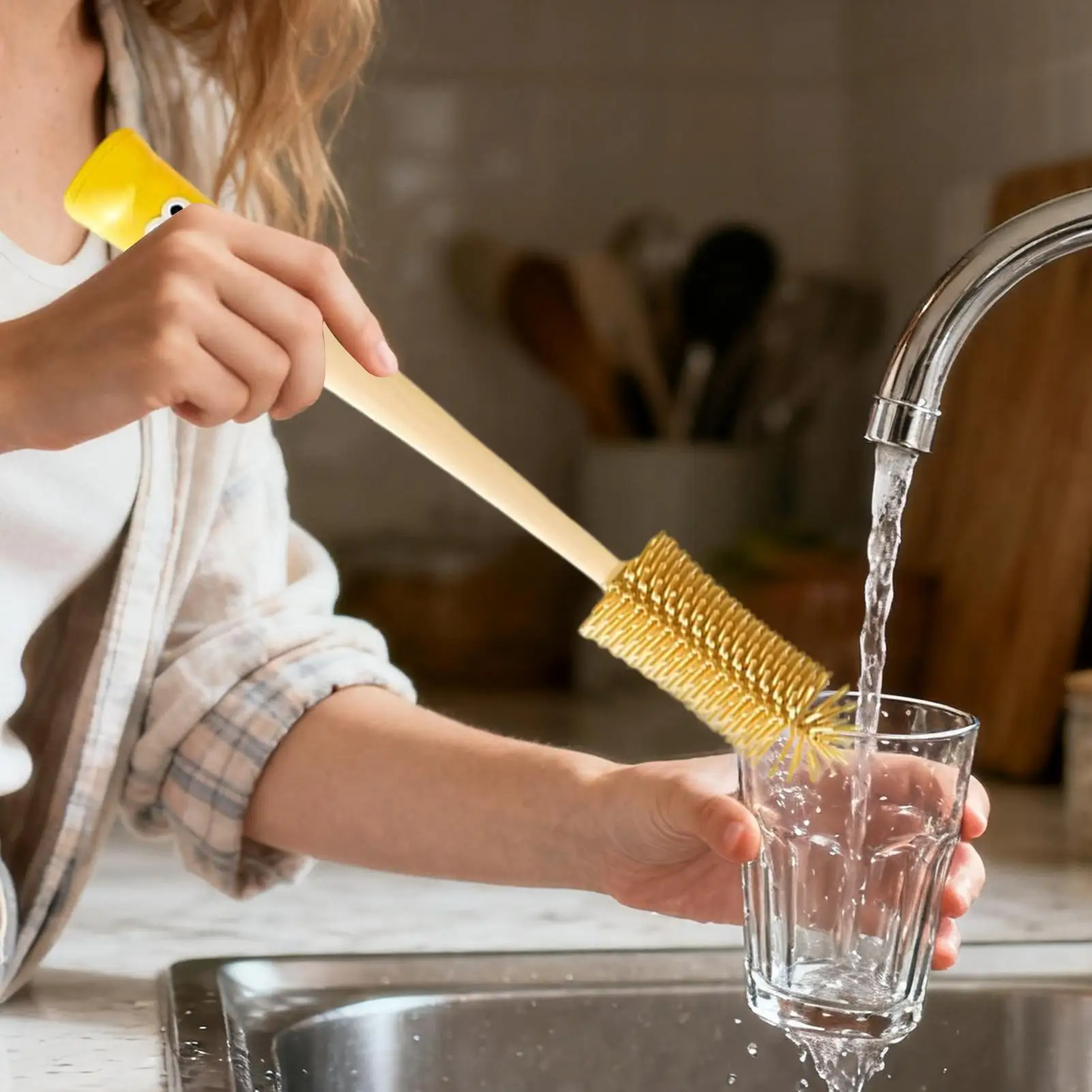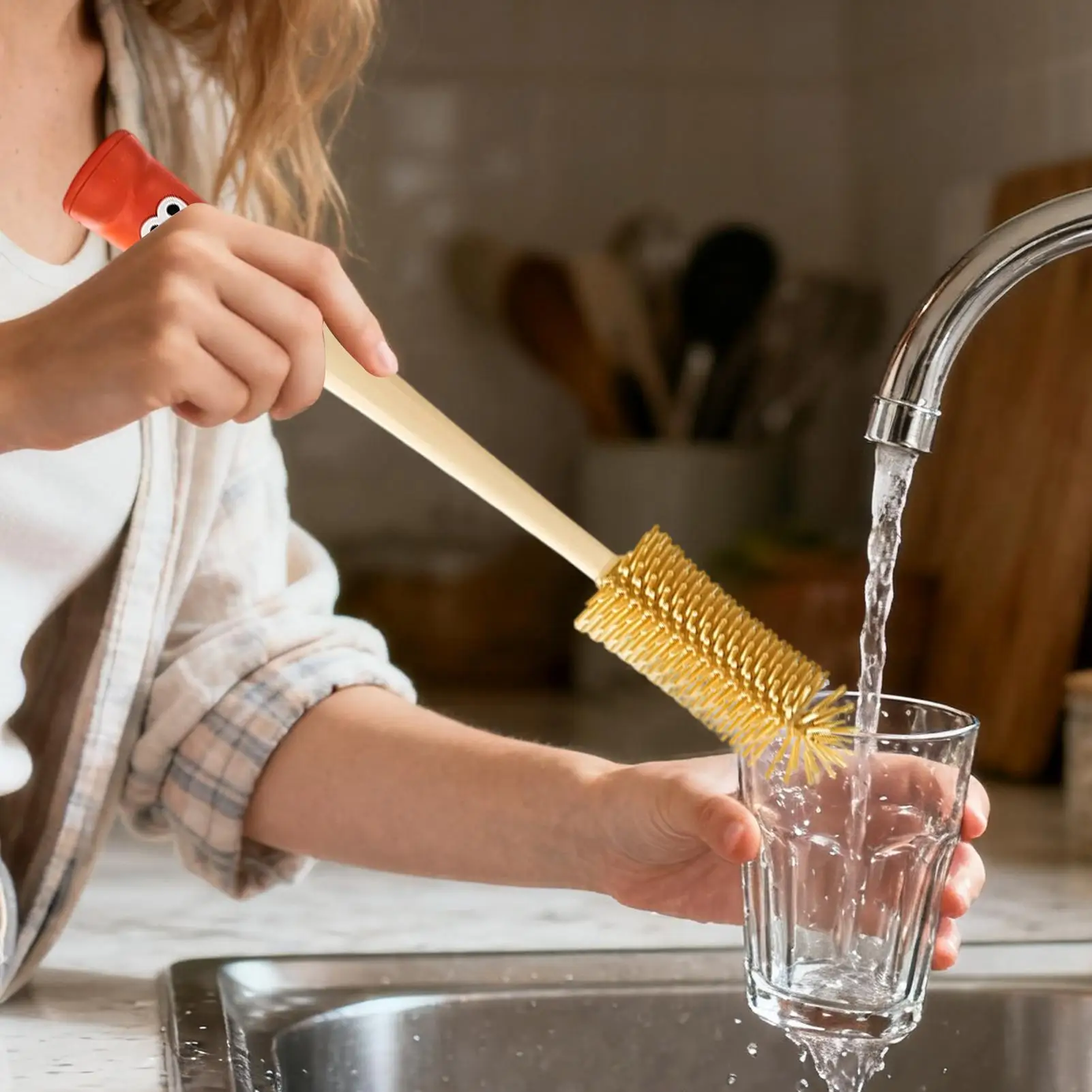4. Contadores organizados: el cepillo limpiador de botellas de agua está diseñado para la organización de cajones de gabinetes, lo que permite un mantenimiento ordenado de la cocina y ahorra espacio en el mostrador, lo que lo hace ideal para cocinas pequeñas o áreas desordenadas donde es imprescindible un almacenamiento eficiente