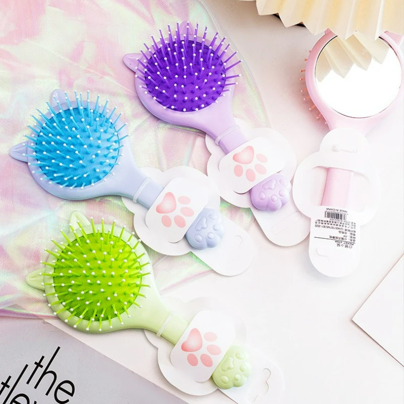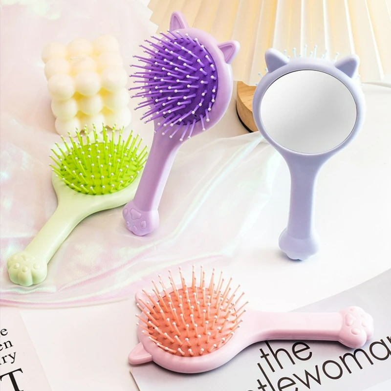 Cepillo para el cabello con cojín de aire estilo niña, bonito y creativo, con diseño de pata de gato, cepillo para el cabello con espejo para uso doméstico, cepillo para masaje del cuero cabelludo
