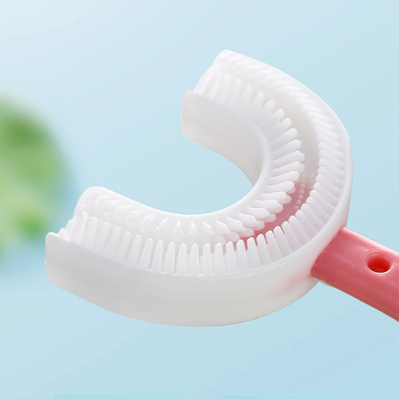 Comprar Cepillo de dientes Manual para niños, cepillo de dientes para bebé en forma de U de 360 grados, limpieza de dientes de piel suave de silicona, cuidado de limpieza bucal infantil de 1 a 12 años
