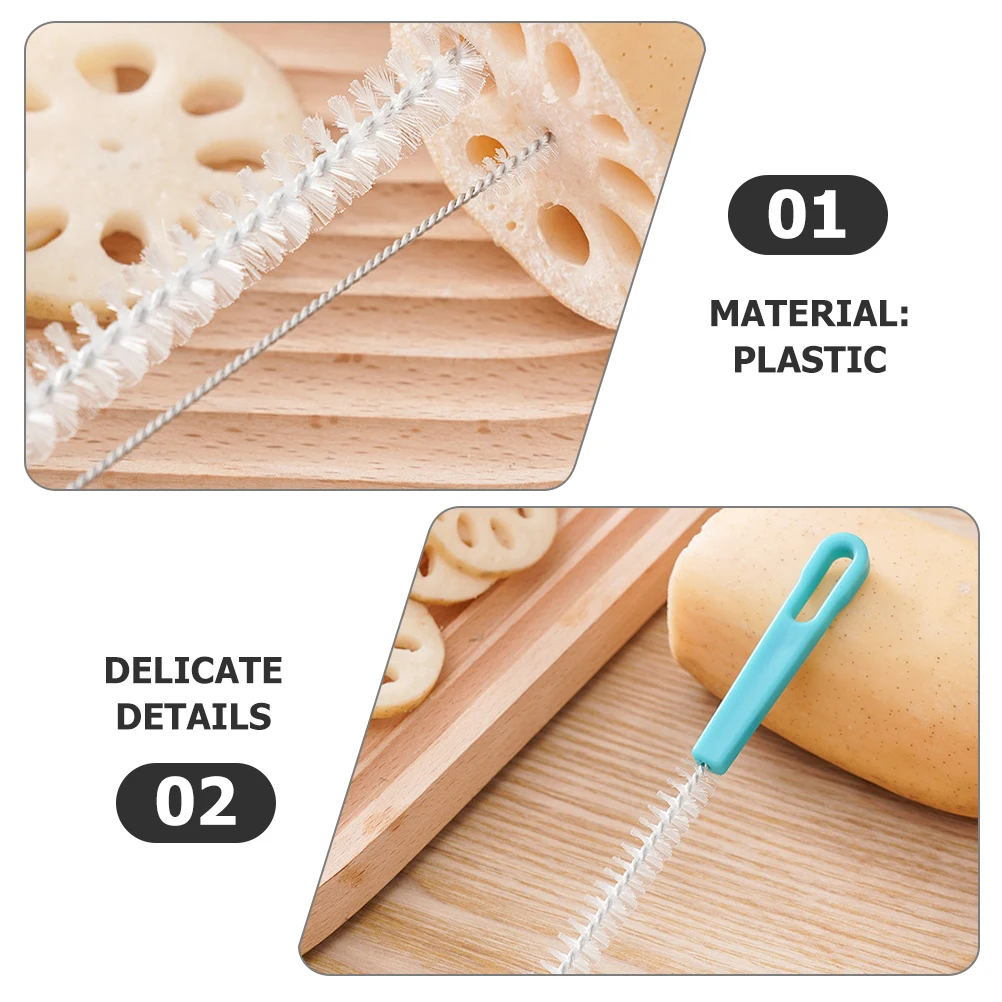 2 uds cepillo de limpieza de agujeros de raíz de loto cepillos de botella de paja cerdas finas plástico limpiador de tubos multifunción herramienta de cocina