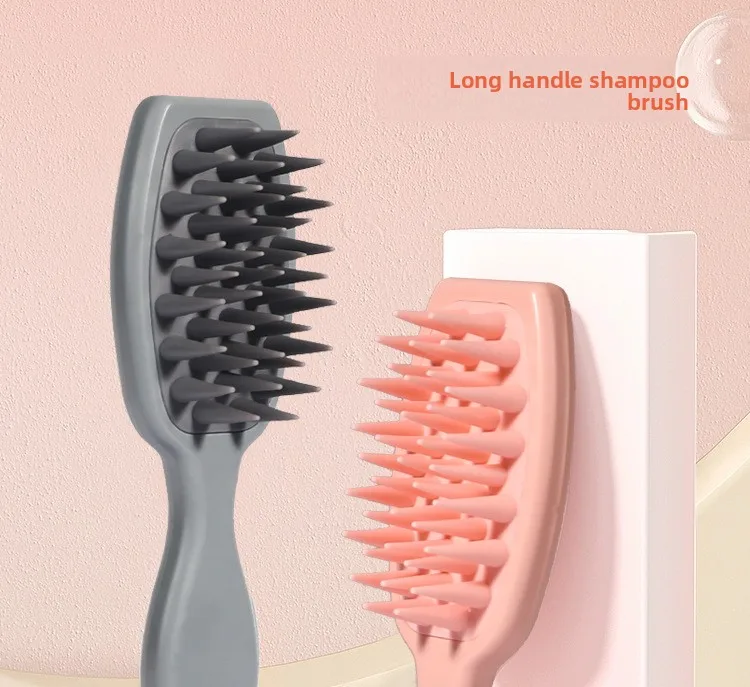 Cepillo de masaje del cuero cabelludo de silicona de mango largo para mujeres, peine suave para lavar el cabello para una limpieza profunda, herramienta perfecta para el cuidado del cabello en el hogar