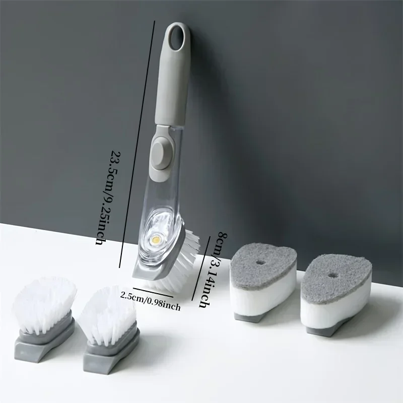 Easy to useThe dish wand sponges make cleaning easier. Pouring a small amount of the detergent each time you can clean the dish easily. The handle can be filled with detergent before used no need to pour the detergent during the cleaning process and dispenses on demand with the light push of a button. Let your hands get out of troubles.