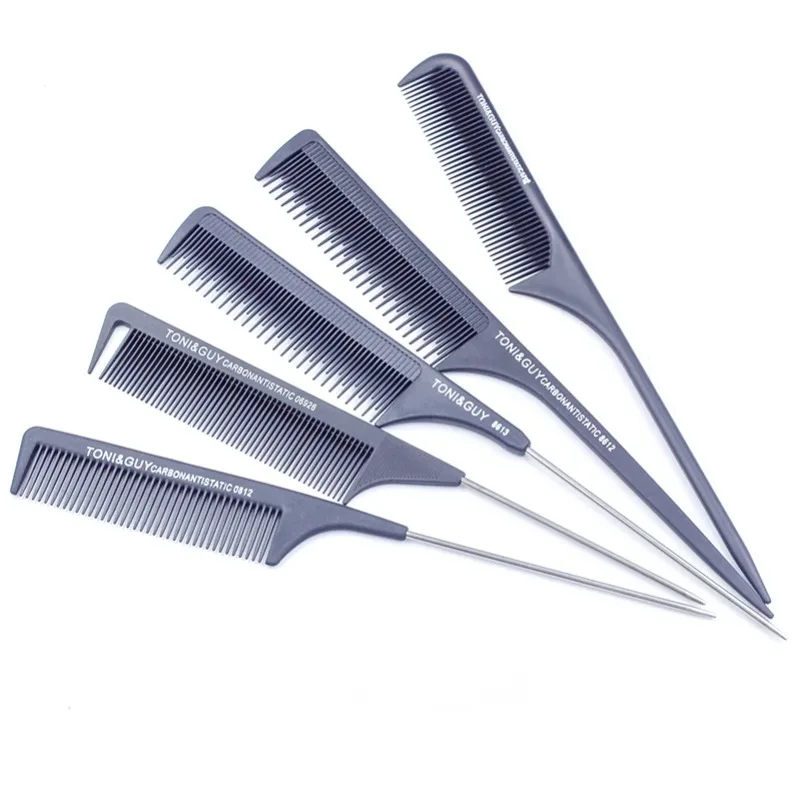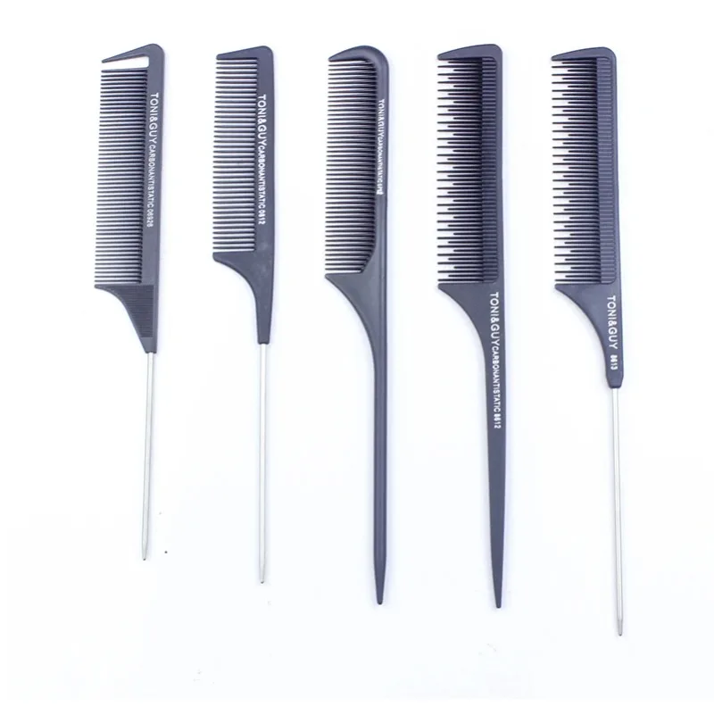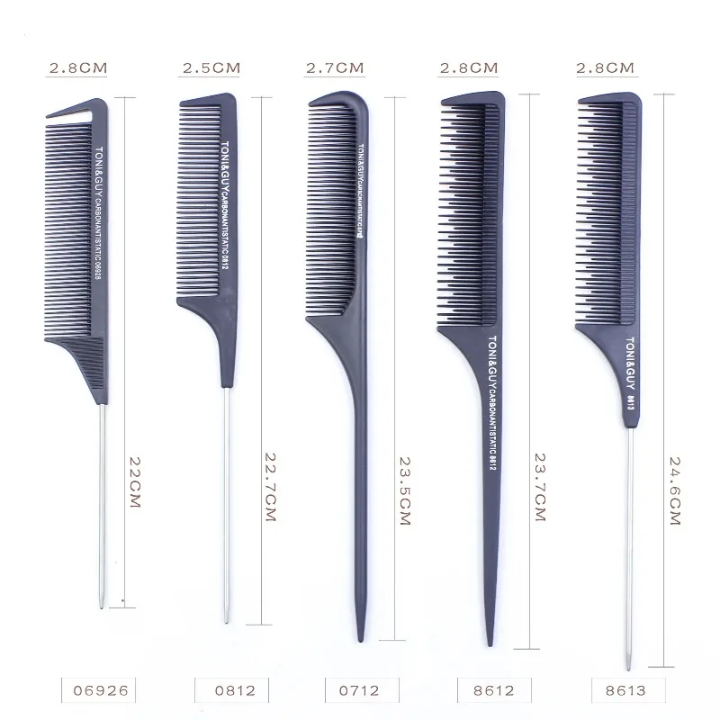 Peine de pelo de dientes finos negro, peines antiestáticos para teñir la cola de rata, aguja de acero, herramientas de belleza para peinar el cabello, accesorios de barbería de 24cm