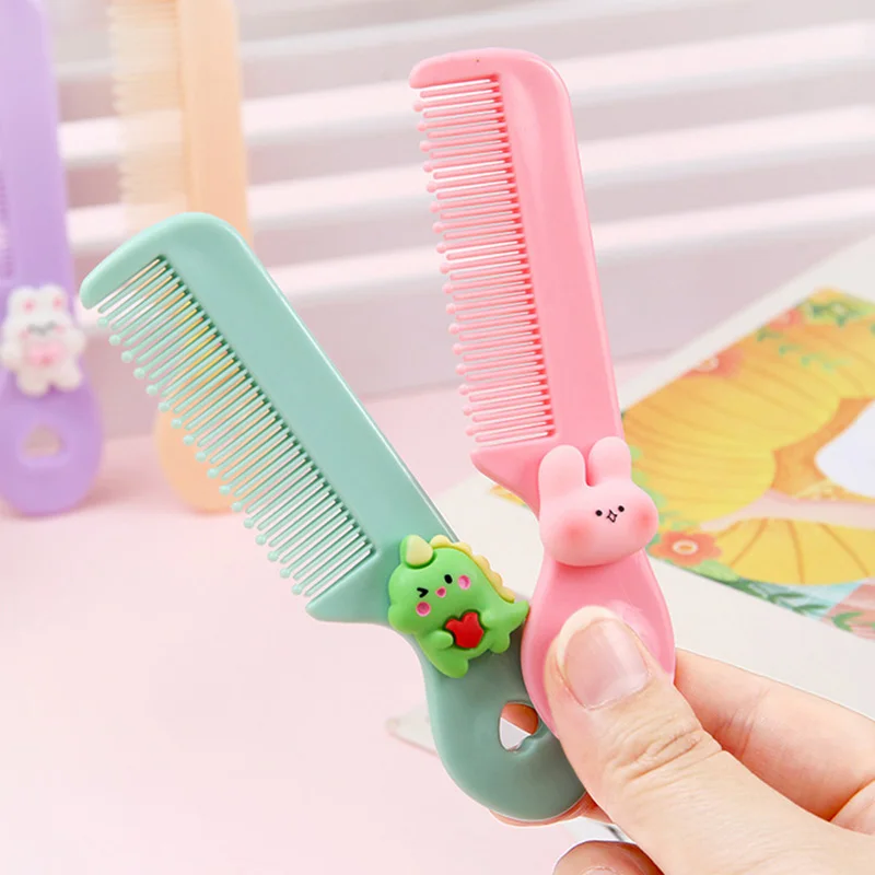 Comprar Cepillo de pelo pequeño de dibujos animados para niños, peine con forma de Animal, Mini cepillo de dientes redondo con flequillo desenredante portátil para niñas