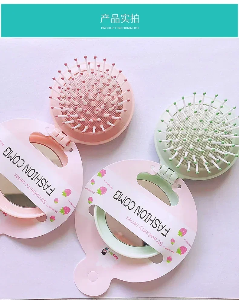 Cepillo de pelo portátil de colores para bebé, peine de pelo con espejo, peine de masaje plegable, herramientas de peinado de viaje para niñas y mujeres