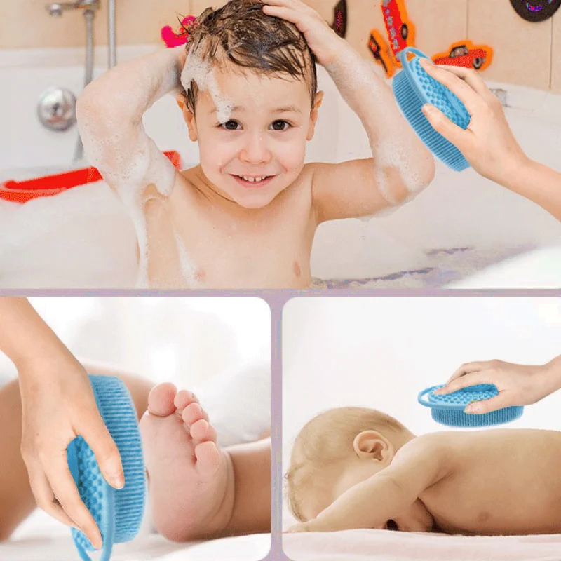 Comprar Cepillos de baño de silicona suave para bebé y niño, cepillo de ducha, cepillos de limpieza de pelo corporal, entrenamiento táctil infantil, 1 unidad