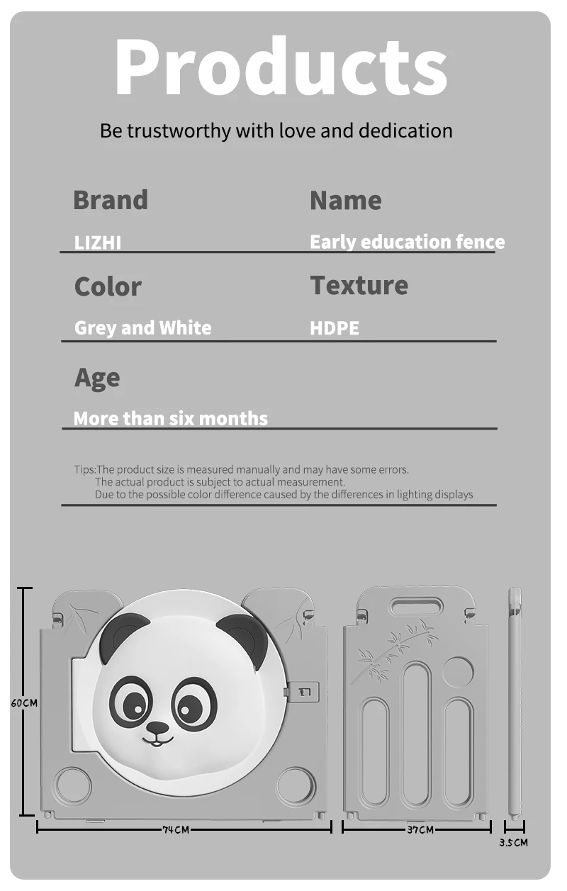 Especificación nombre Valla Panda 12+2 paquete Caja de cartón estándar color Blanco Tamaño del embalaje 73,5*37*61cm Peso bruto del producto. 14,5 kg textura del material Polietileno de alta densidad respetuoso con el medio ambiente certificado Si es necesario, puedes hacerlo en cualquier momento (CE,CPC,GCC,SNI) contacta con nosotros Si tiene alguna pregunta sobre la información del producto, no dude en contactarnos en cualquier momento. Embalaje y entrega