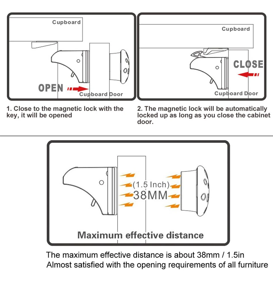 ②The magnetic lock will be automatically locked up as long as you close the cabinet door.