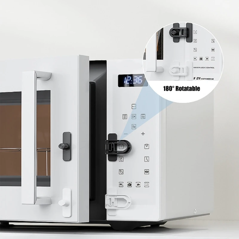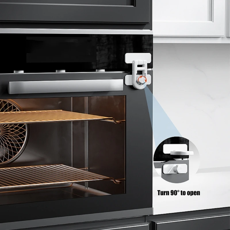 Producida con un componente ABS resistente al calor y de alta calidad, esta cerradura a prueba de niños es ajustable y se adapta a varios espesores de puertas de hornos y microondas que no necesitan taladrar ni herramientas.
