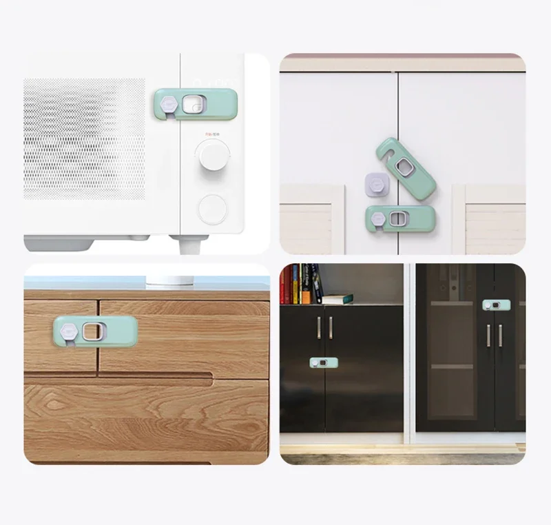 Nombre: Cerradura de seguridad para niños Tamaño: 10 CM * 4 CM Color: gris, verde, blanco Material: material ABS