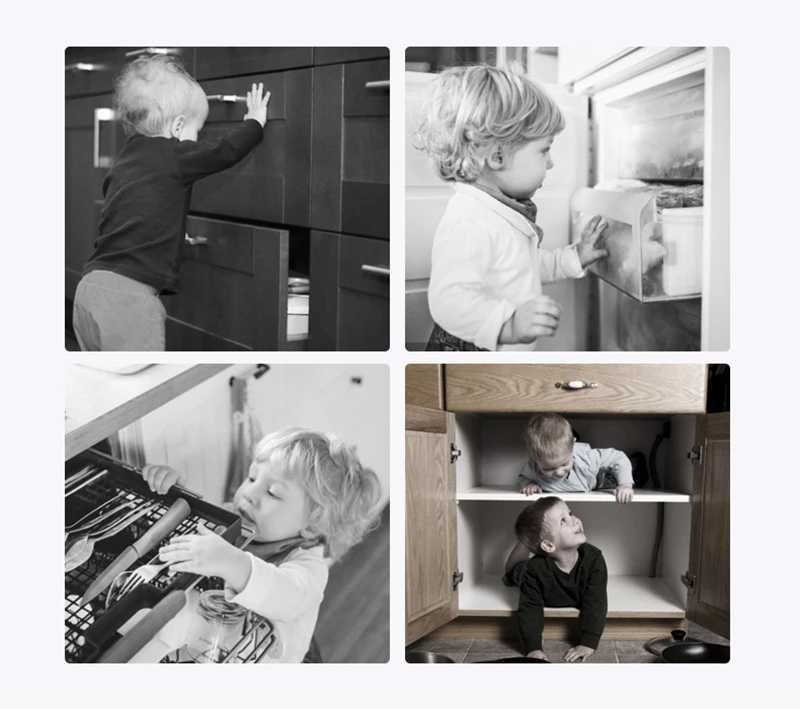 1.Adecuado para puertas de refrigeradores, cajones, armarios, dispensadores de agua, etc. 2.Cuide de forma segura el crecimiento saludable de su bebé. 3. Evite que su bebé se lesione durante la exploración.