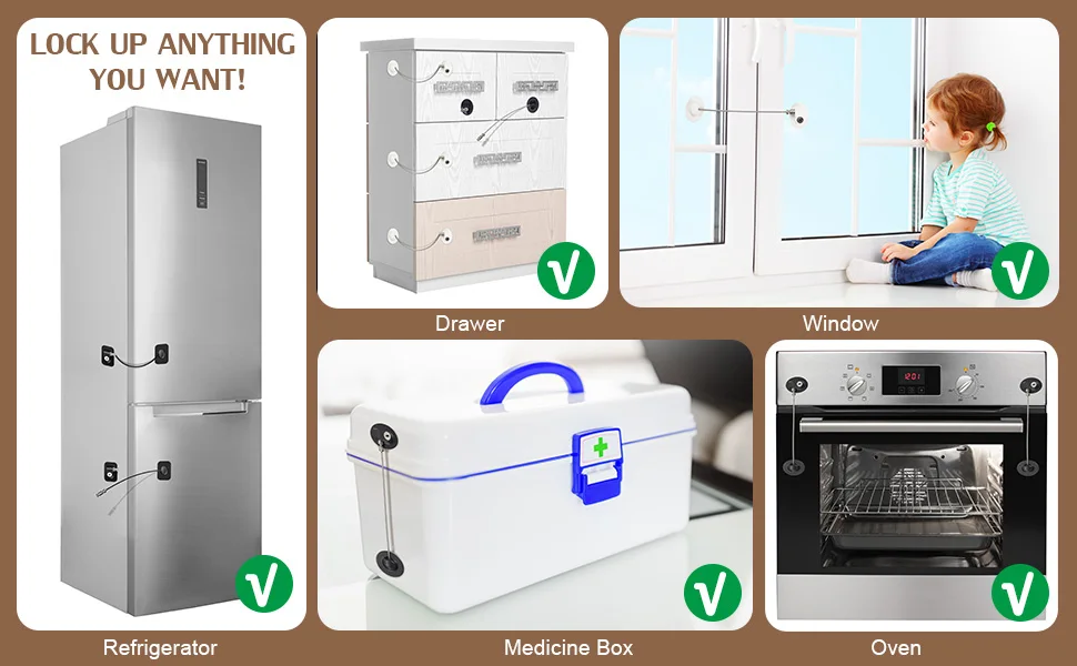 ✅ 【MEJOR VALOR】: Cerradura de puerta/cerradura de ventana de refrigerador. Nuestra tecnología se prueba según los mejores estándares de rendimiento y se construye para ser increíblemente fácil de usar y de operar, minimizando los inconvenientes y maximizando la seguridad. ✅ 【ULTIFUNCIÓN】: Por lo general, no sabemos exactamente qué debemos proteger en nuestros hogares: ¿armarios? ¿ Electrodomésticos? ¿Asientos de inodoro? ¿cueble? cajón de archivos? ¿Refrigerador? ¿Ventana? No te preocupes: puedes aplicar estas cerraduras donde necesites y moverlas si es necesario. ✅ 【INSTALACIÓN FÁCILMENTE】: 1. Cerradura de la puerta del refrigerador: utilice adhesivos 3M de alta calidad que han sido probados para una sujeción fuerte pero que no dejan residuos si se retiran (requiere mucha fuerza para despegar). La cerradura del refrigerador se adherirá instantáneamente al refrigerador, sin necesidad de taladrar ni tornillos. 2. Cerradura de ventana: utilice cuatro tornillos para fijar (proporcionaremos tornillos). Más sólido. Adecuado para la mayoría de ventanas. El tamaño de la abertura se puede ajustar. ✅ 【SIN MATERIALES TÓXICOS】: Nuestro candado adhesivo para bebés está hecho únicamente de materiales no tóxicos aprobados por RoHS que se prueban minuciosamente en laboratorio para garantizar que no traerá nada peligroso a su hogar. No más temas de dañar accidentalmente a tu hijo con el dispositivo diseñado para protegerlo. ✅ 【GARANTÍA】: Ofrezca una entrega rápida y un servicio de buena calidad. Si tiene algún problema de calidad, reembolso completo o un nuevo reemplazo, puede estar seguro de comprar.