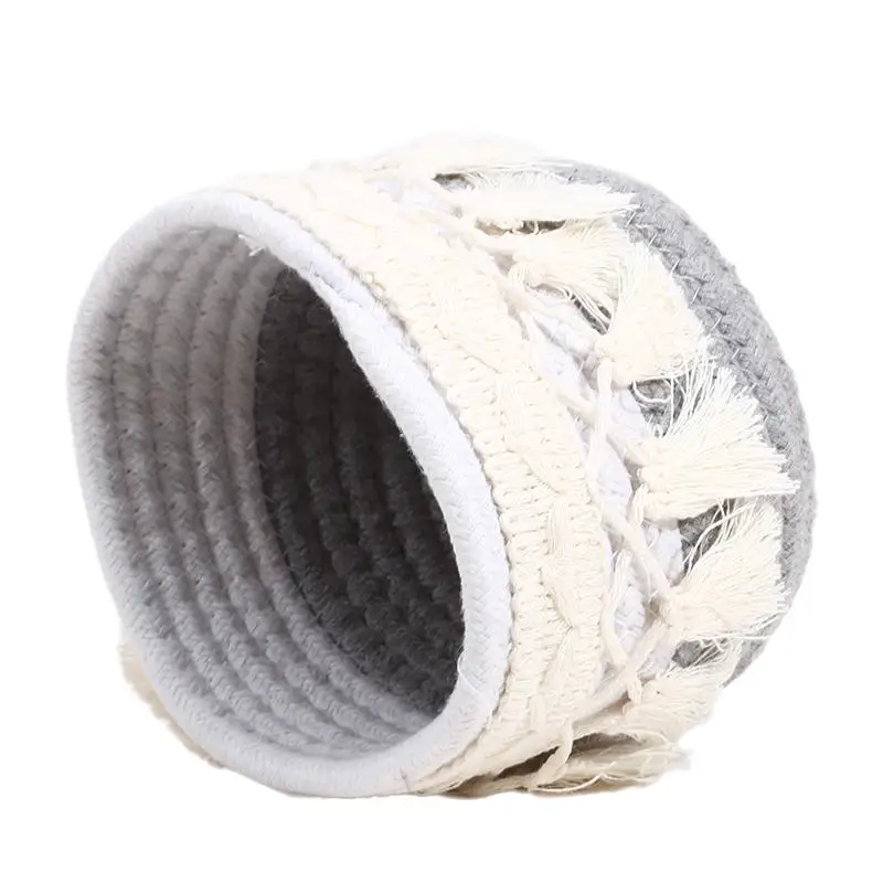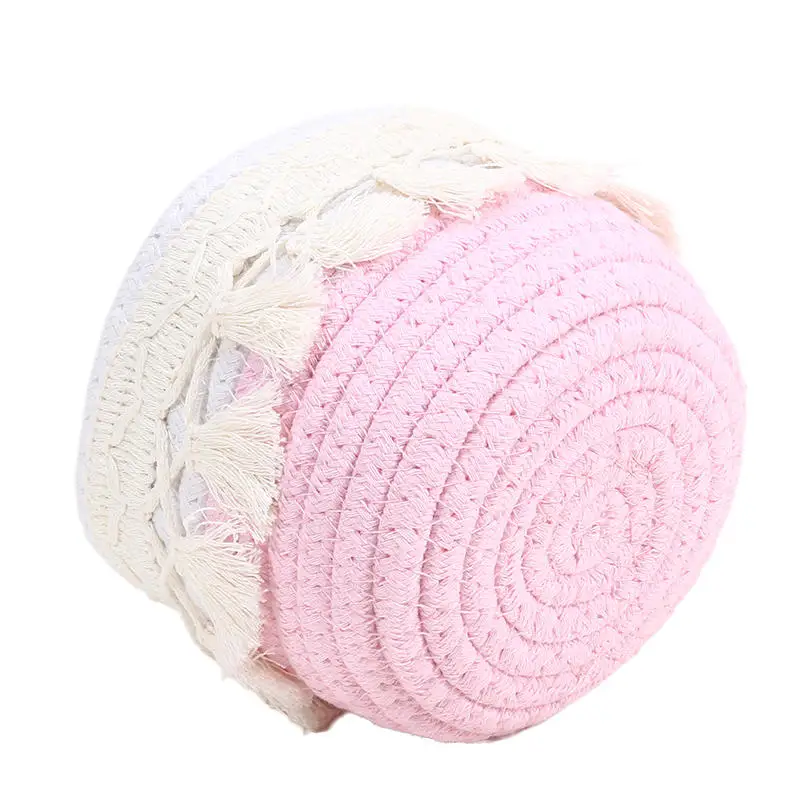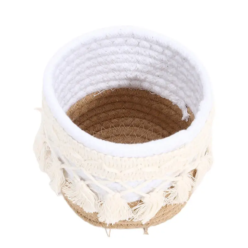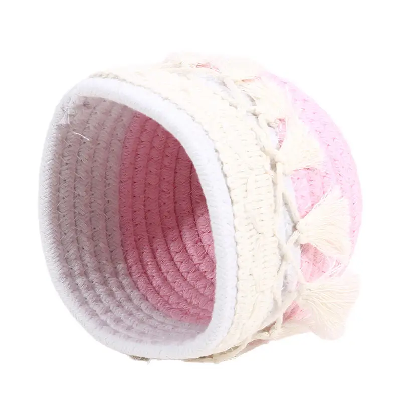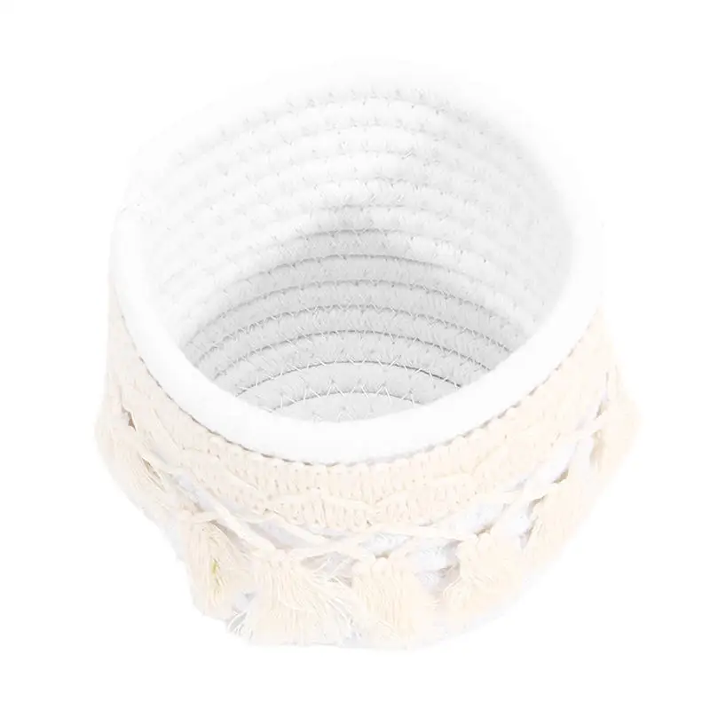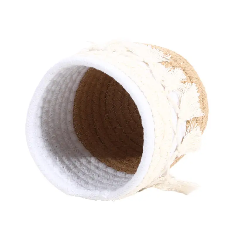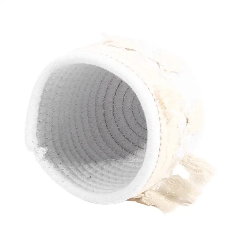 Cesta de almacenamiento de escritorio con borlas, caja de almacenamiento de brochas cosméticas, cestas de almacenamiento tejidas circulares, portalápices, necesidades diarias del hogar