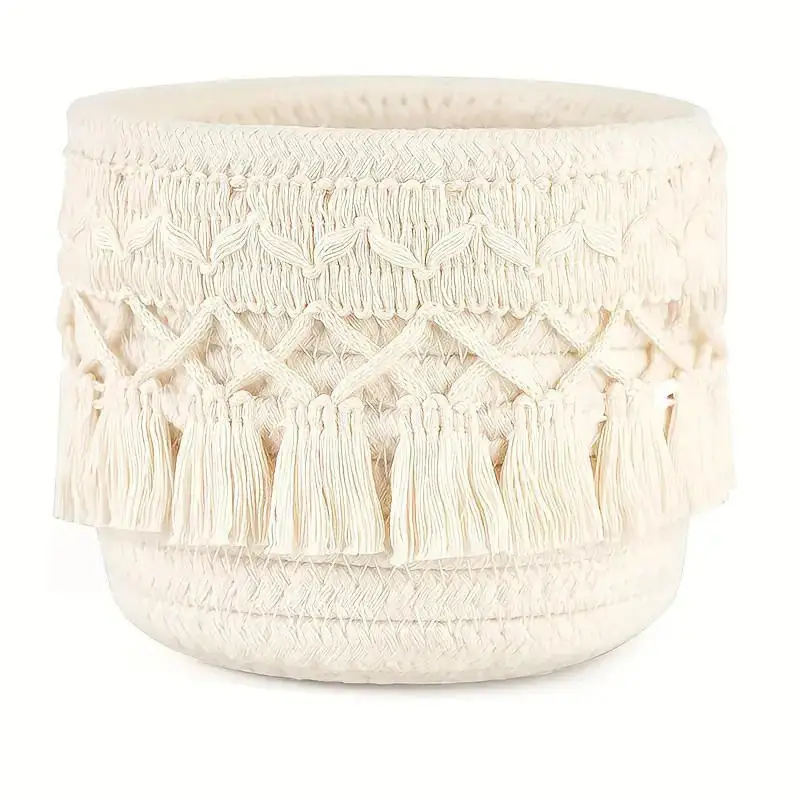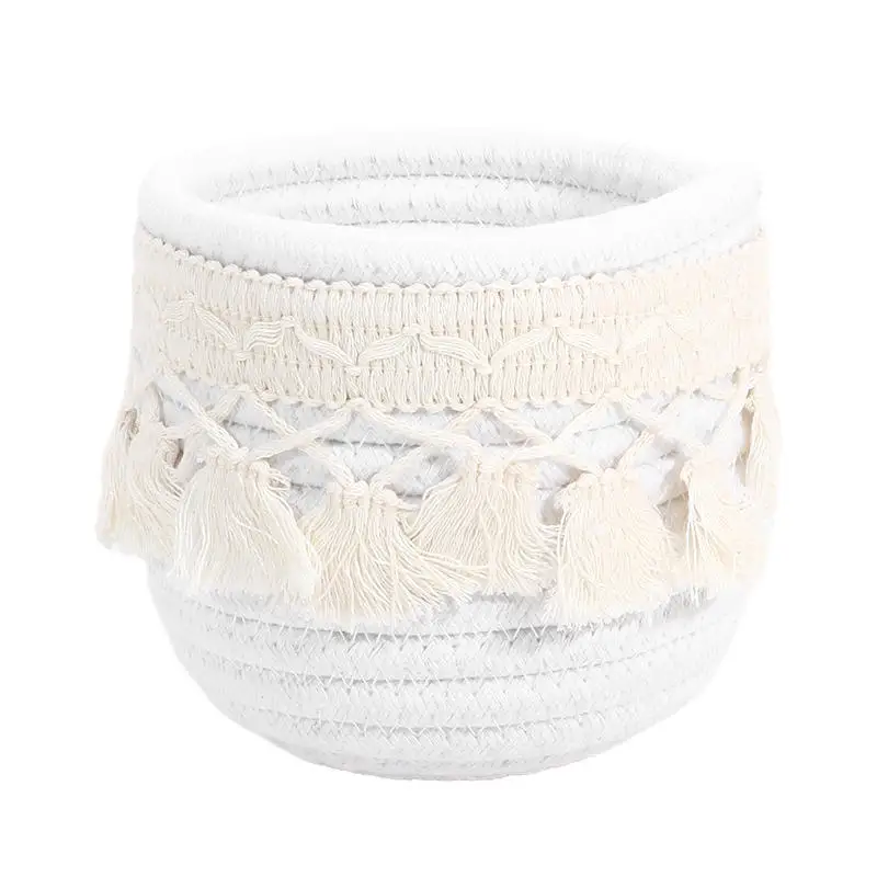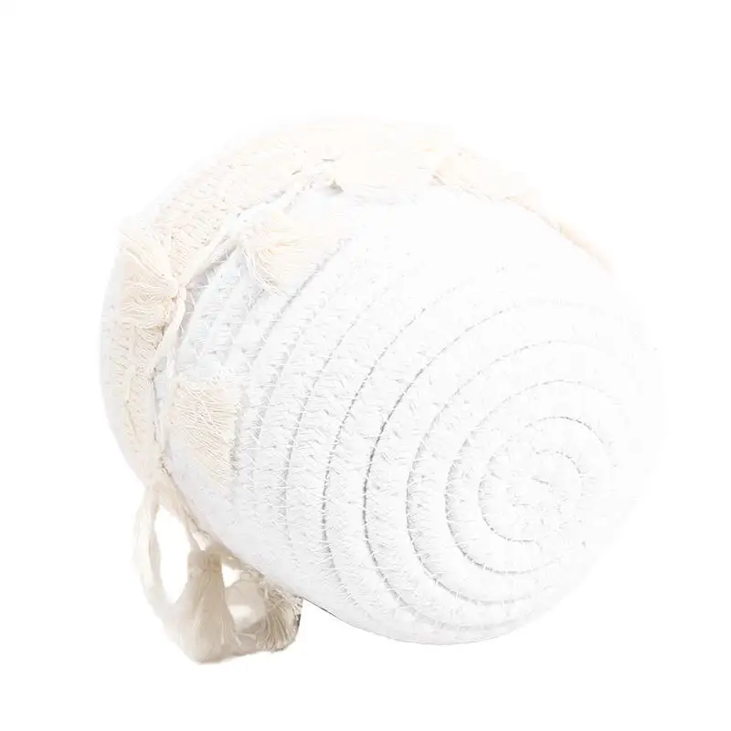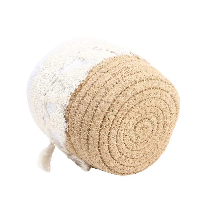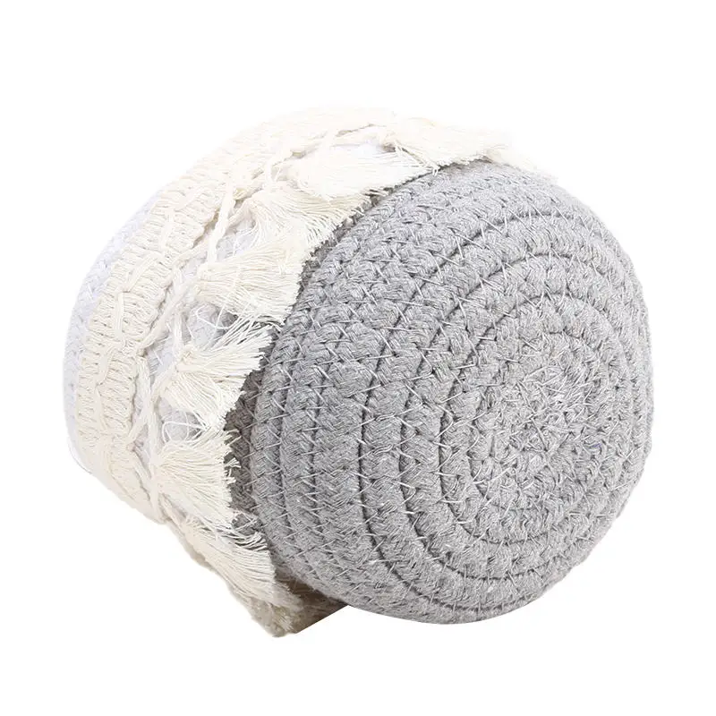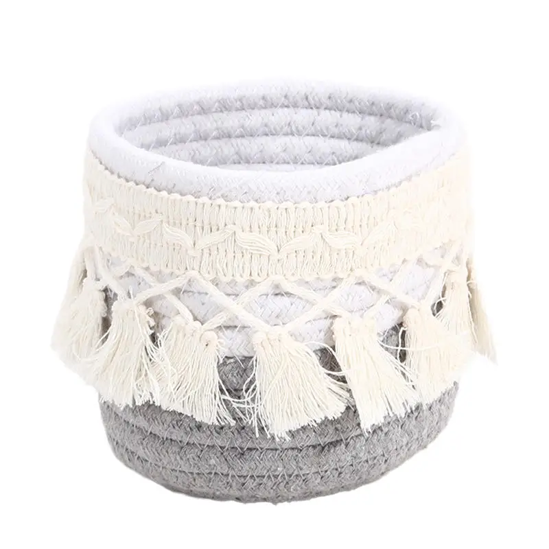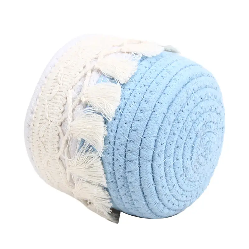 Cesta de almacenamiento de escritorio con borlas, caja de almacenamiento de brochas cosméticas, cestas de almacenamiento tejidas circulares, portalápices, necesidades diarias del hogar