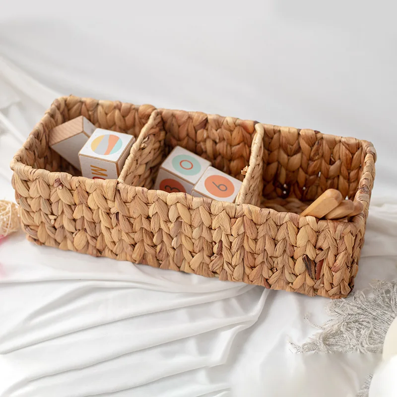 Comprar Cesta de almacenamiento tejida de vid, cesta de almacenamiento tejida a mano de tres rejillas, organizador de escritorio para el hogar, dispositivo de almacenamiento de artículos pequeños con control remoto