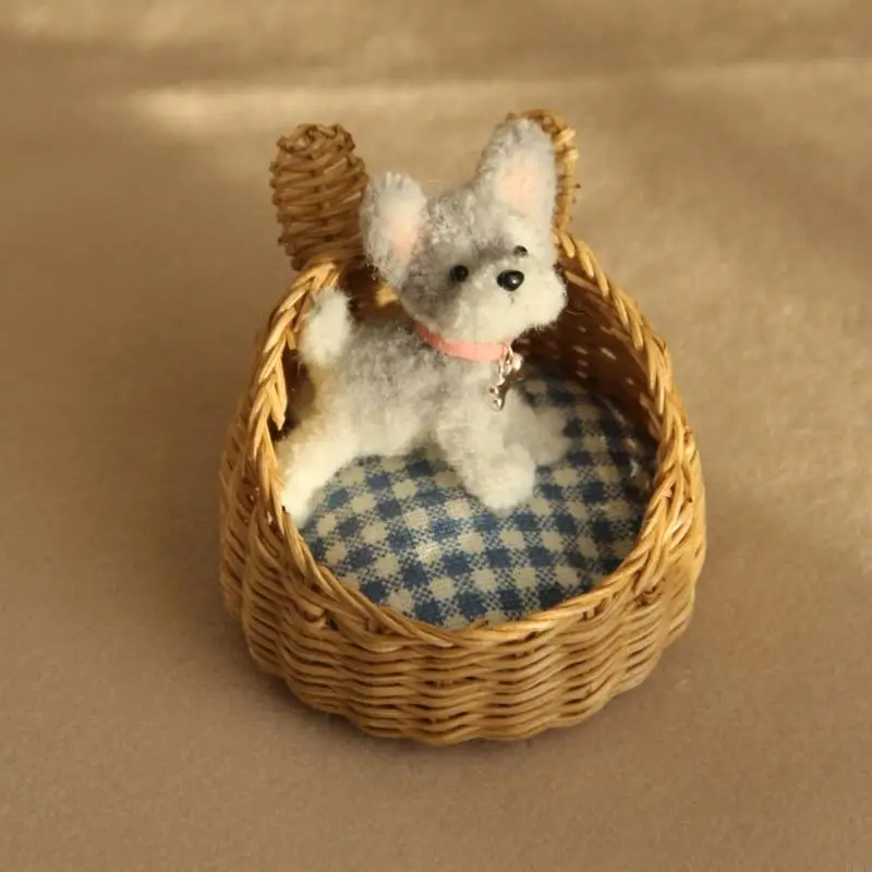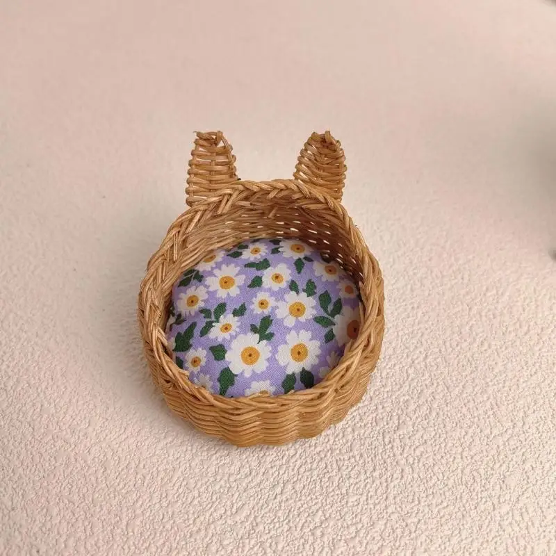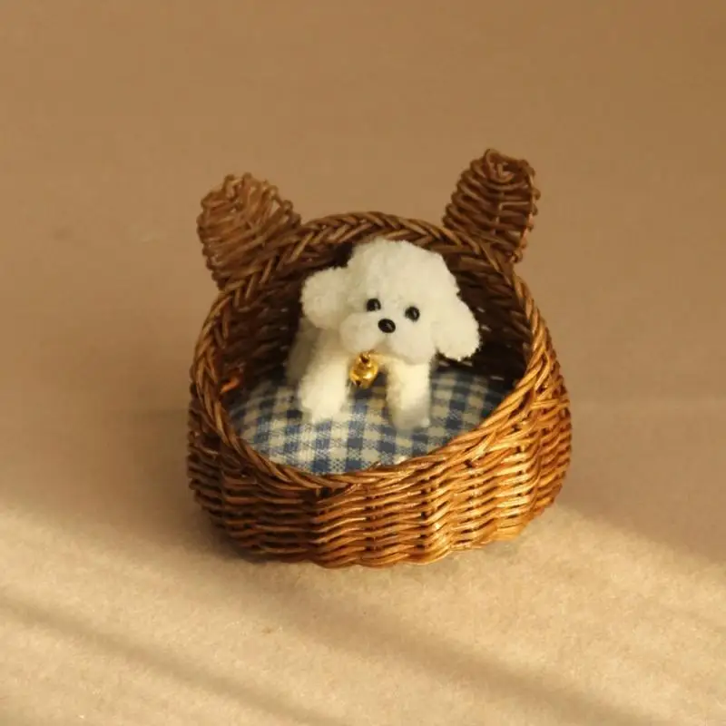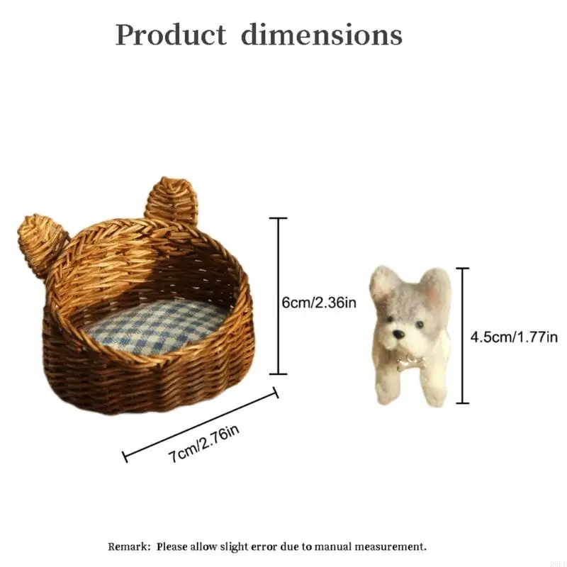 Cesta cama tejida, realista y adecuada para decoración de casas de muñecas.