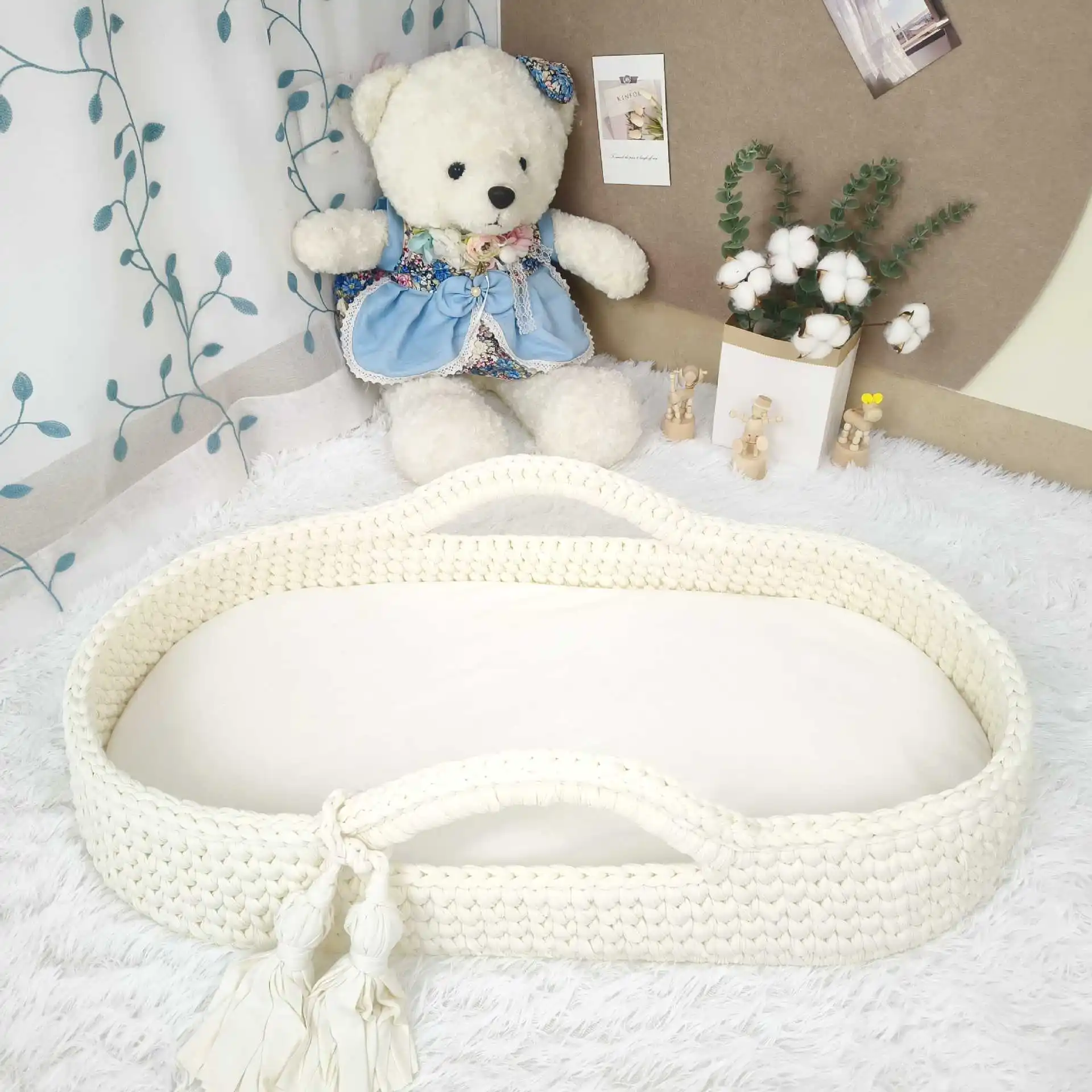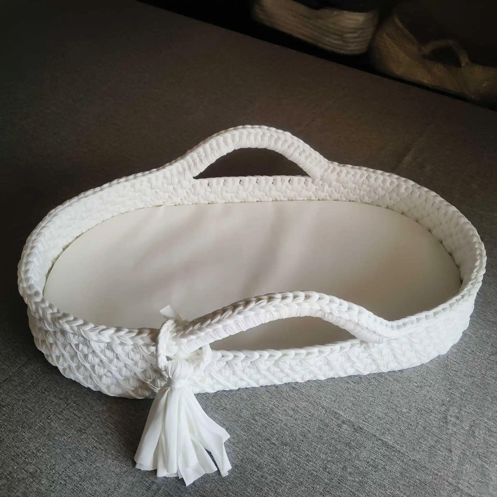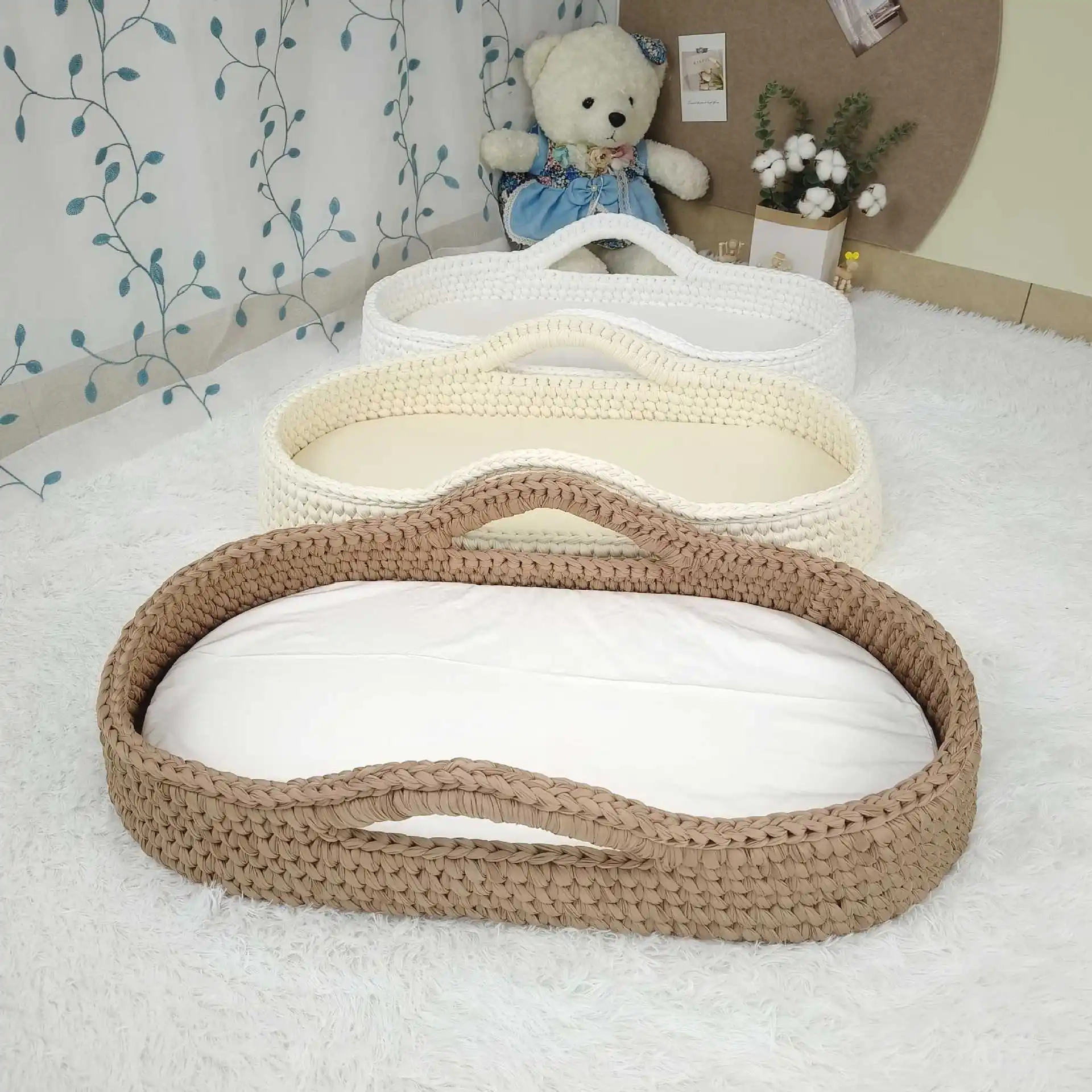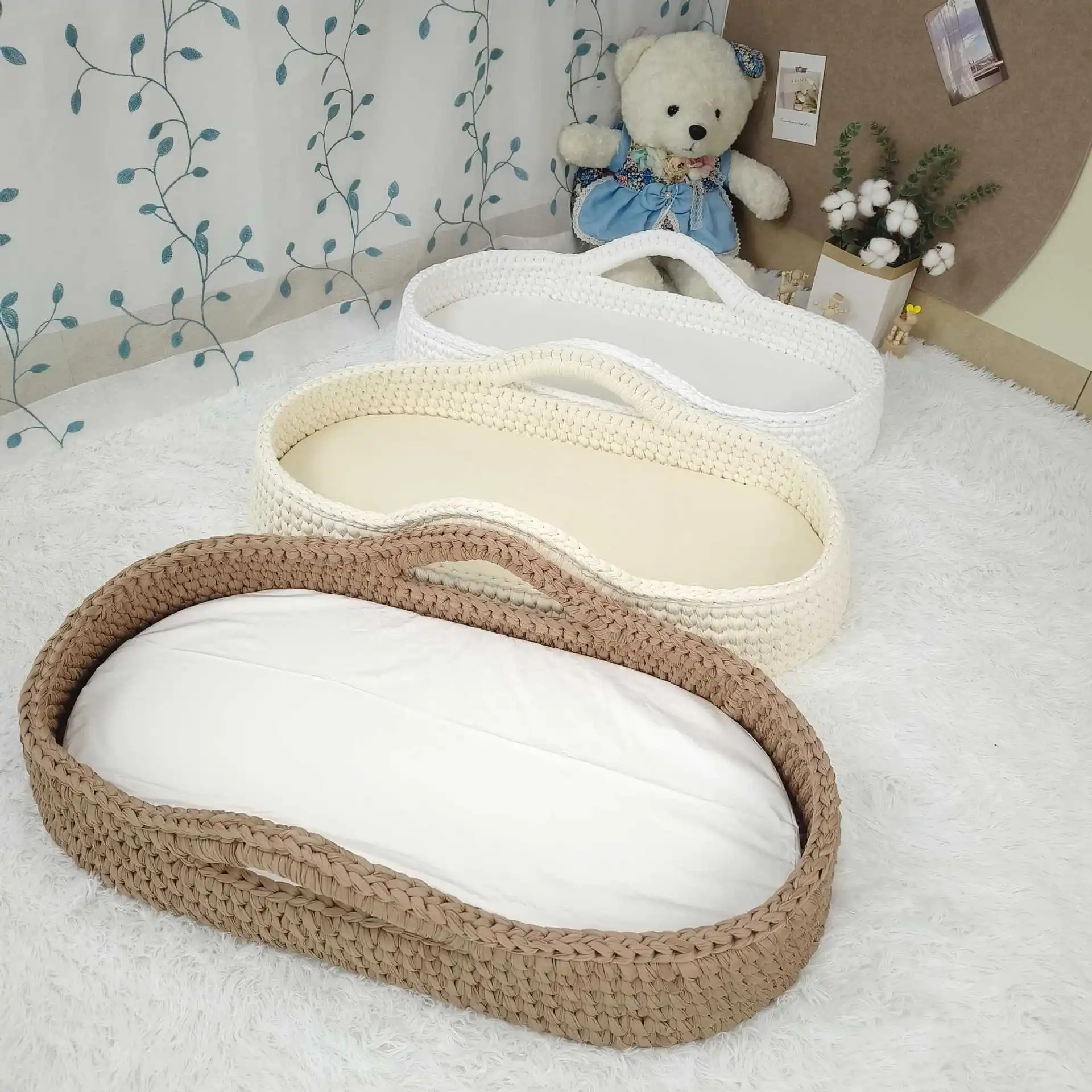 Cesta portátil de cuerda de algodón para cambiar pañales de bebé recién nacido, cuna para recién nacido, cesta para cambiar pañales tejida a mano, cesta para dormir