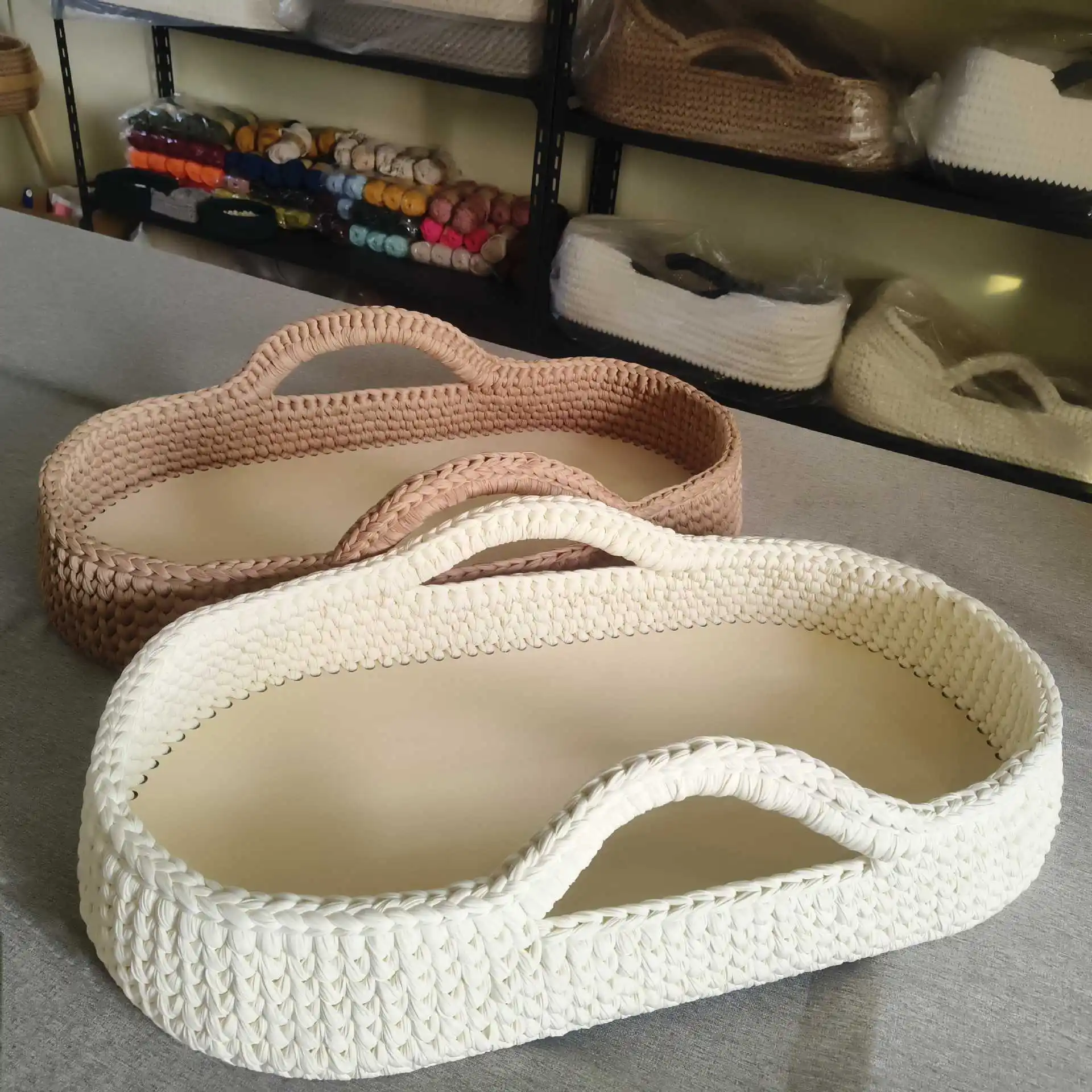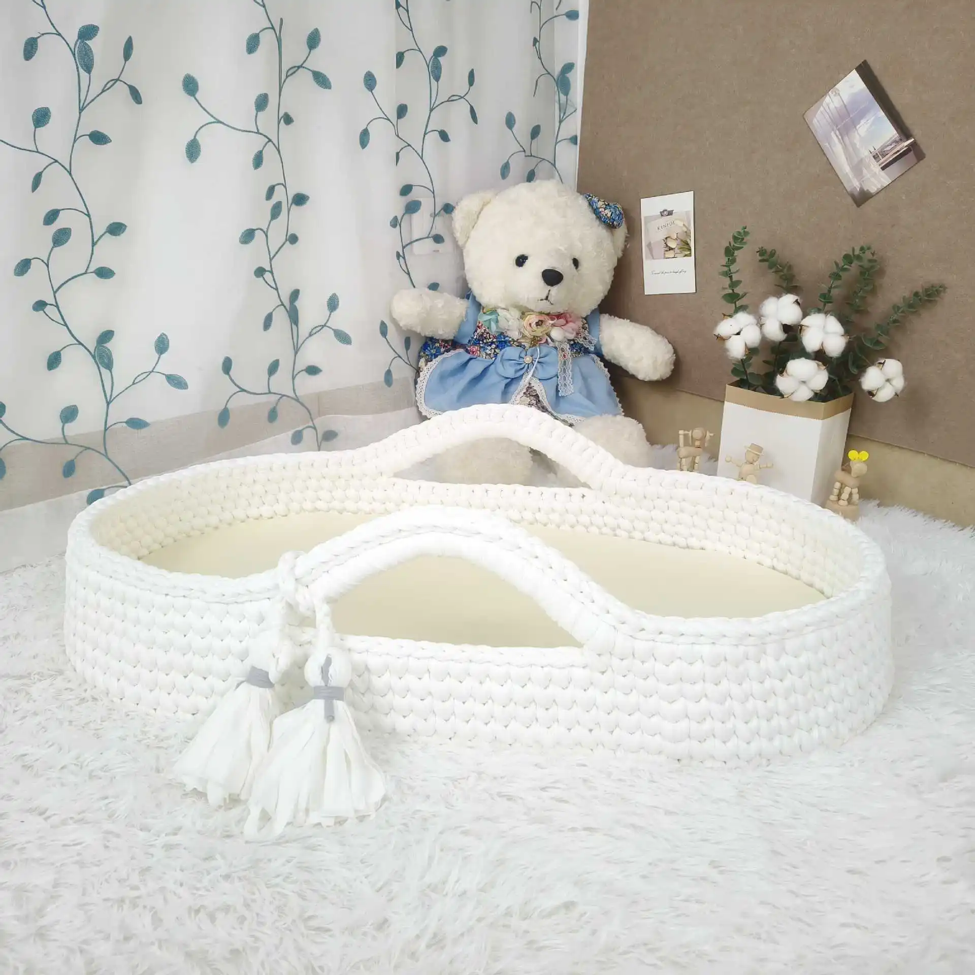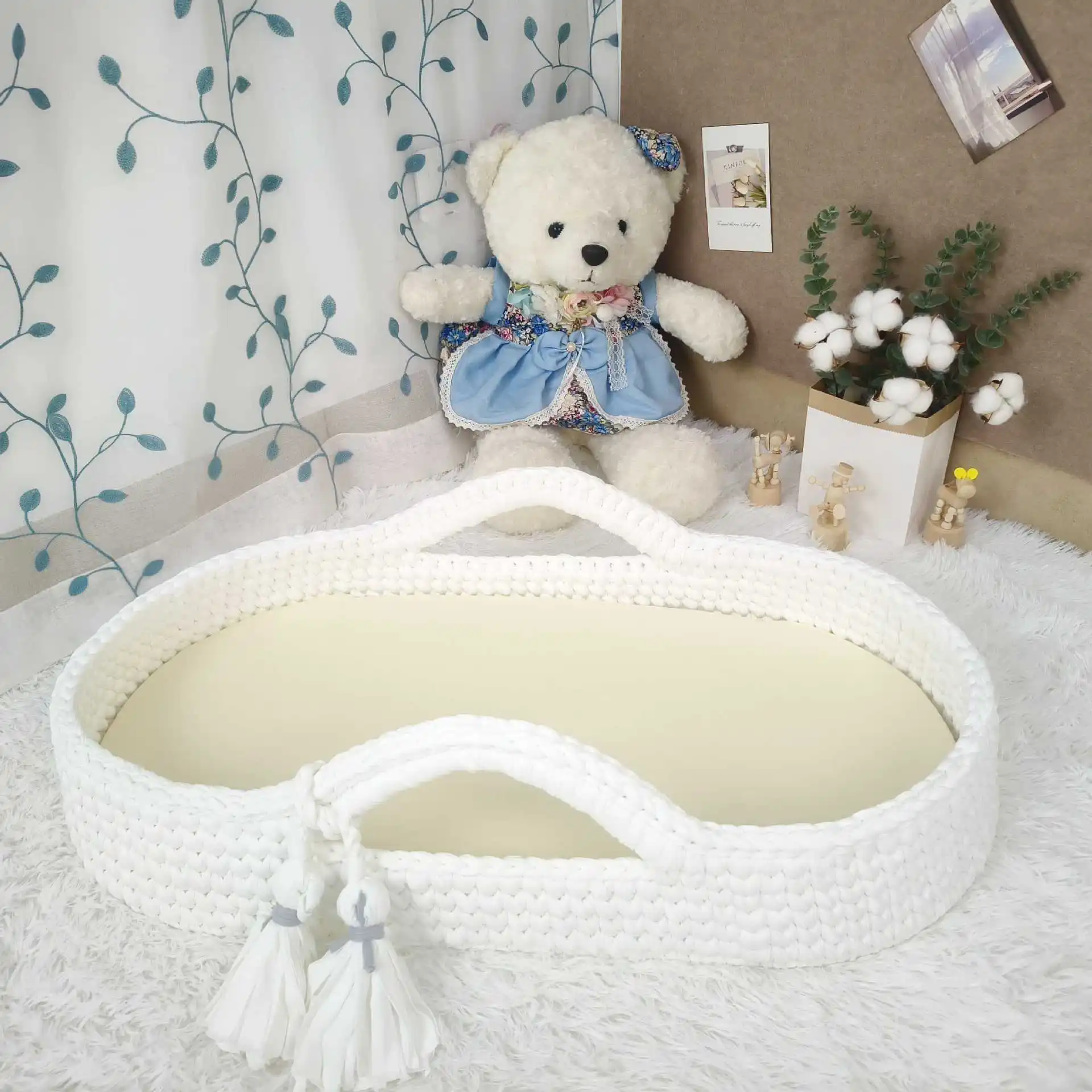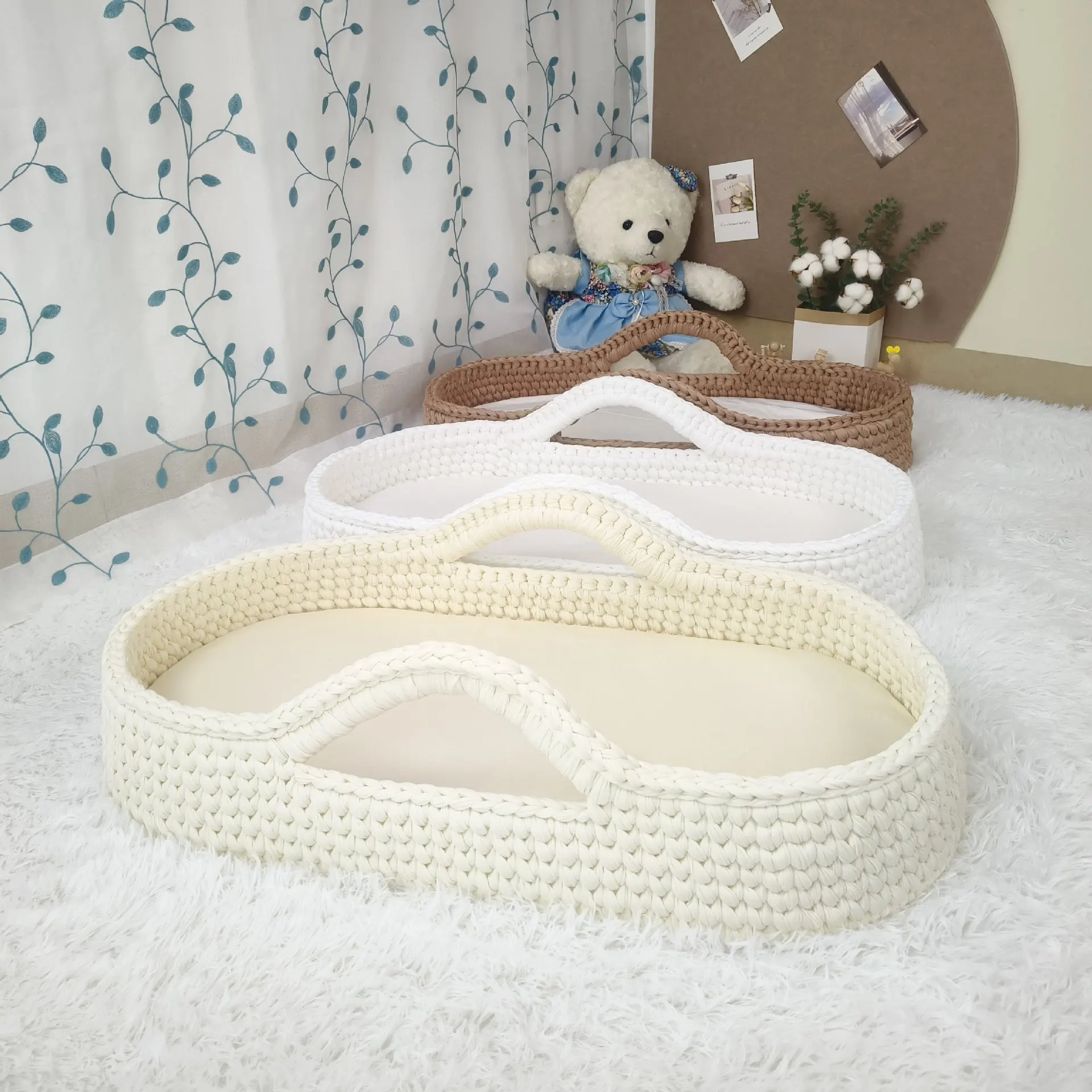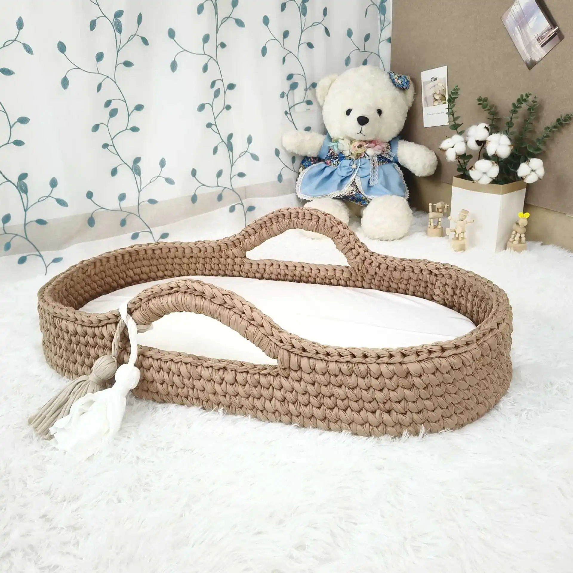 Cesta portátil de cuerda de algodón para cambiar pañales de bebé recién nacido, cuna para recién nacido, cesta para cambiar pañales tejida a mano, cesta para dormir