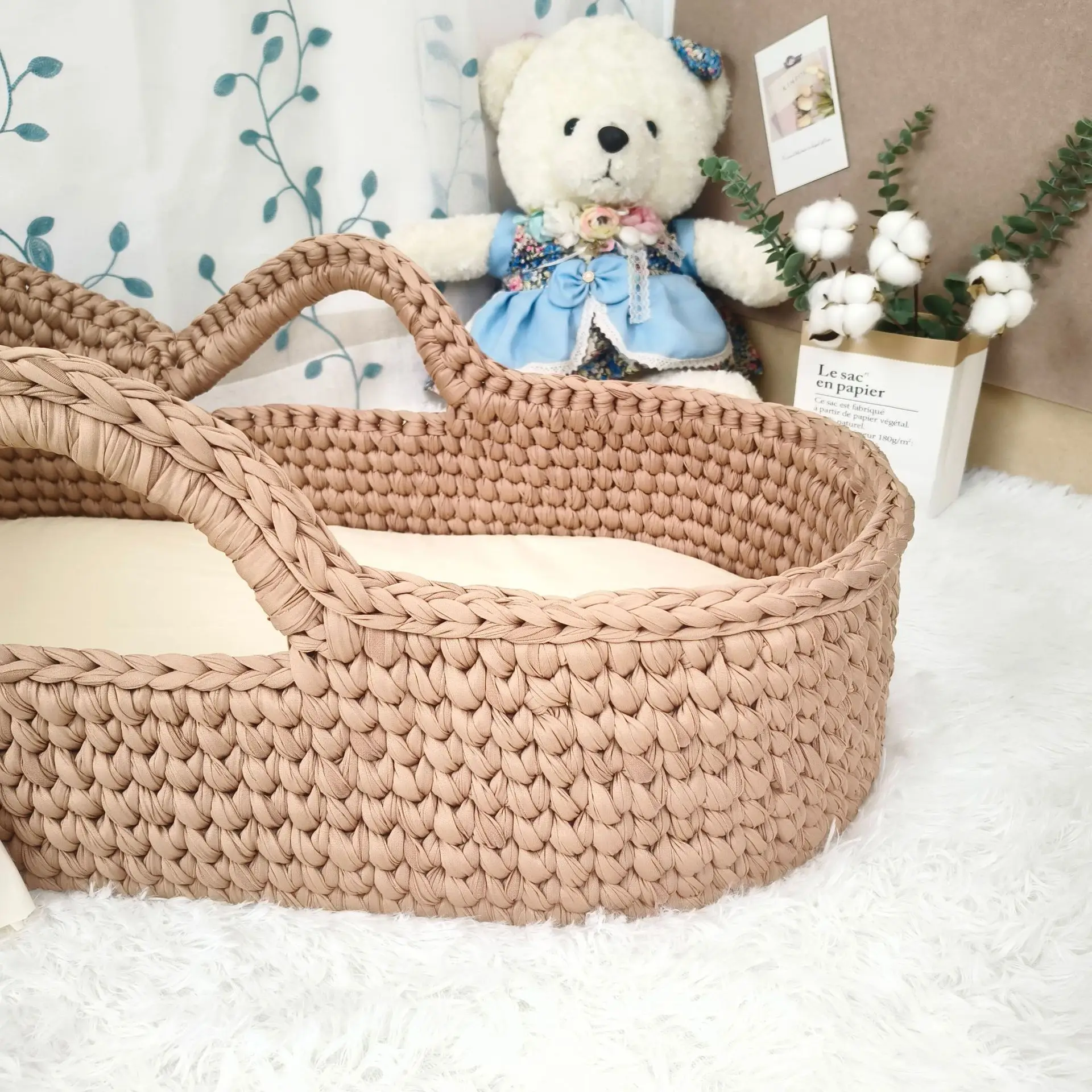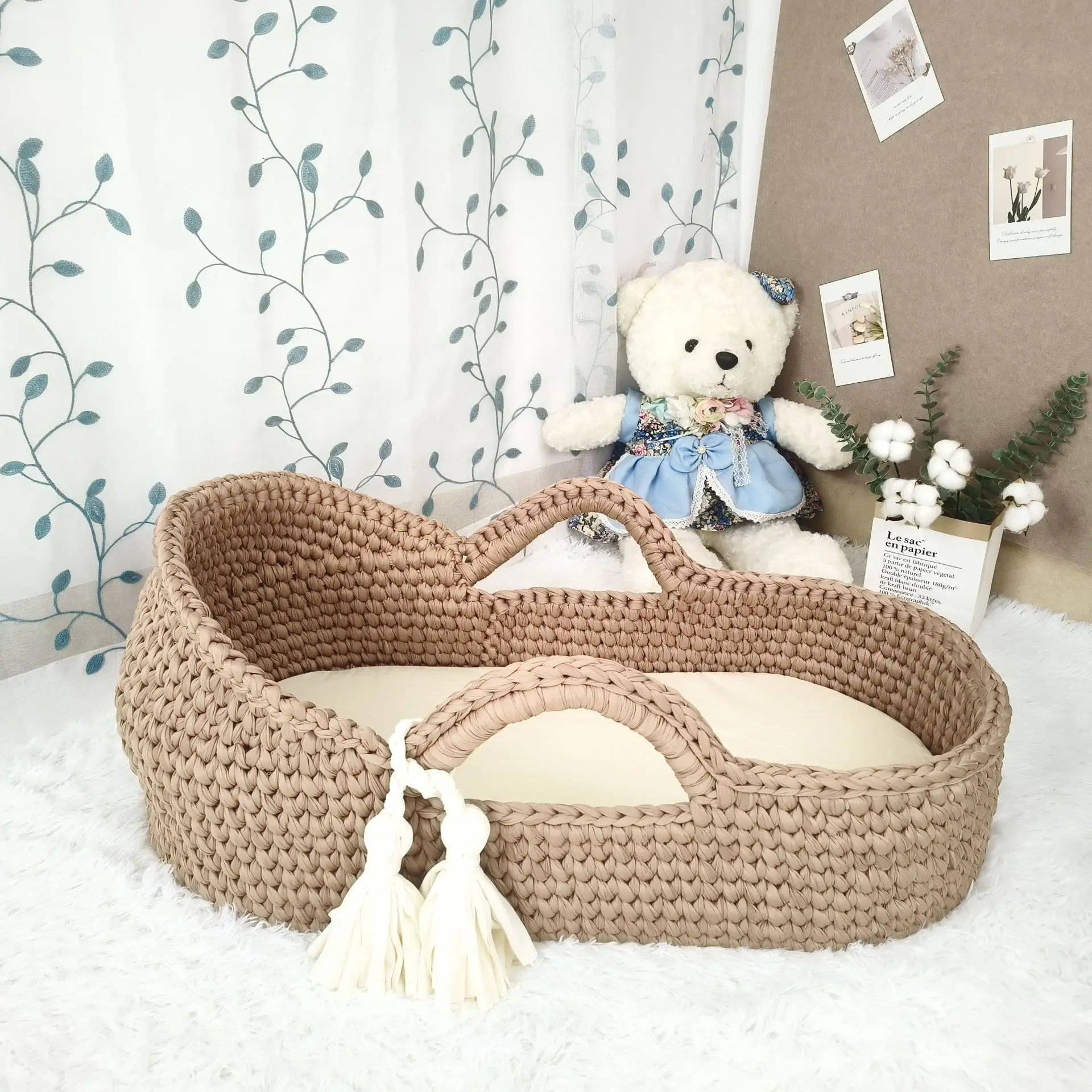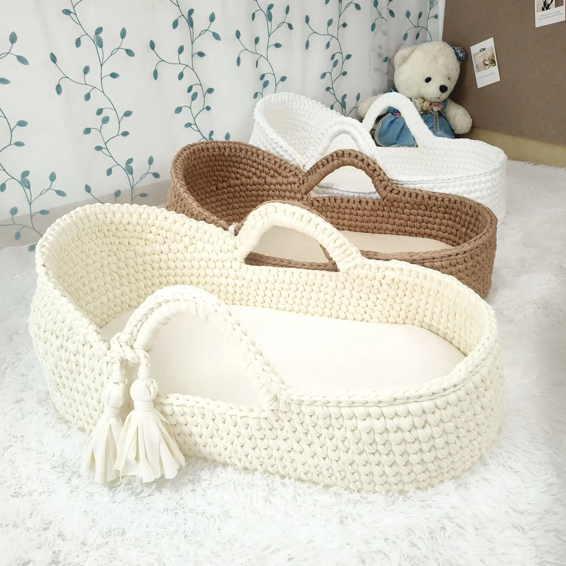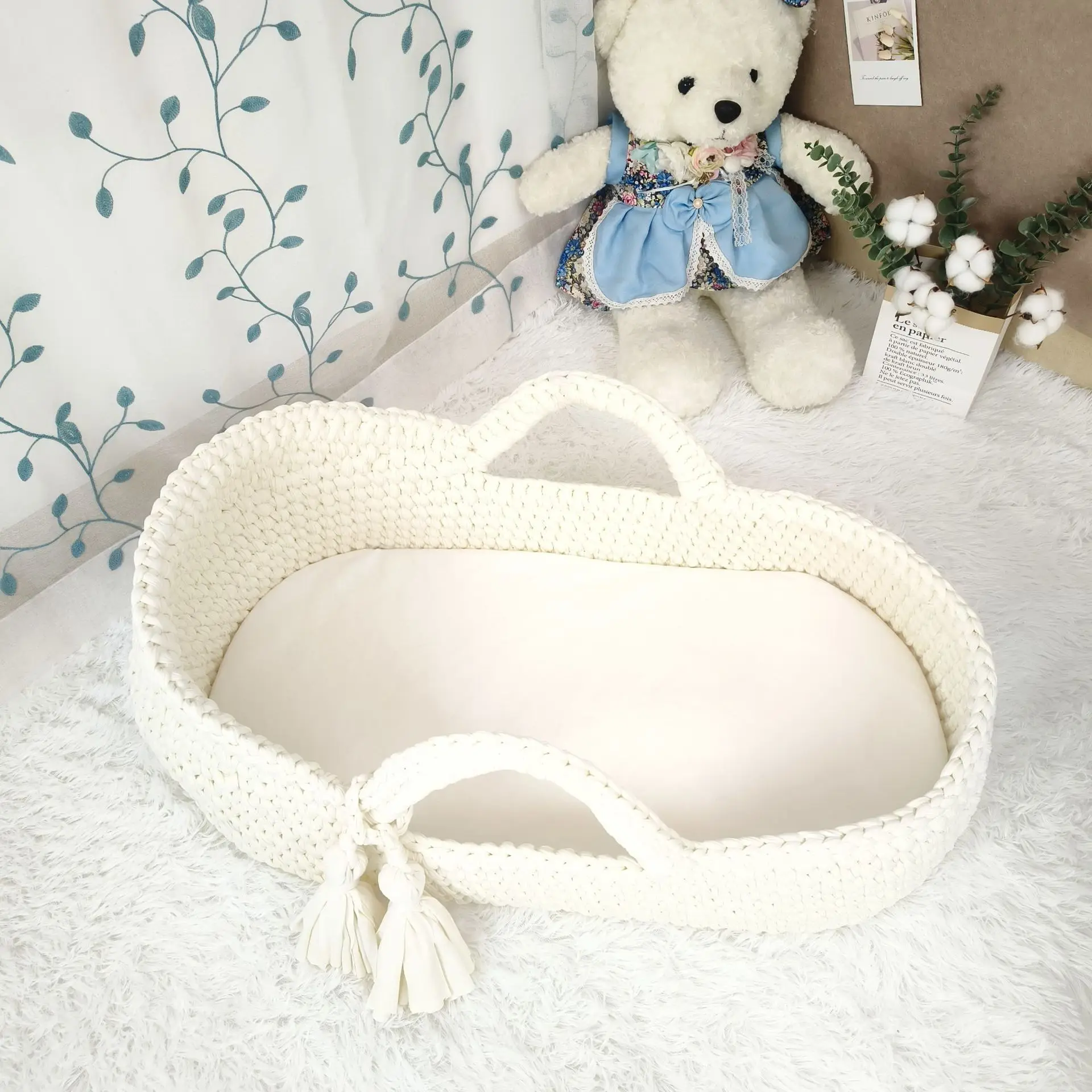 Cesta tejida a mano para bebé Moisés, cuna para bebé, cesta cambiadora de pañales neonatal