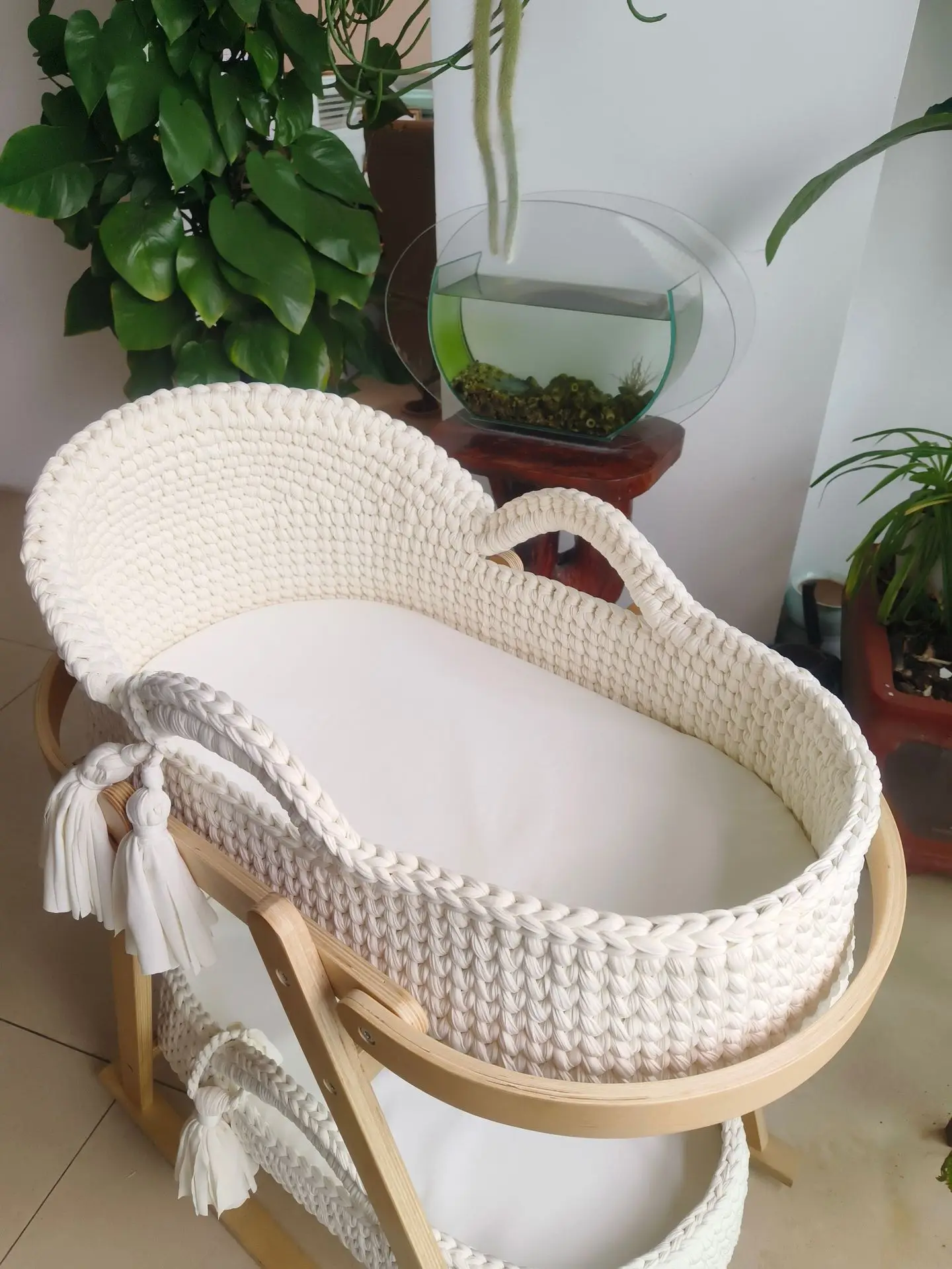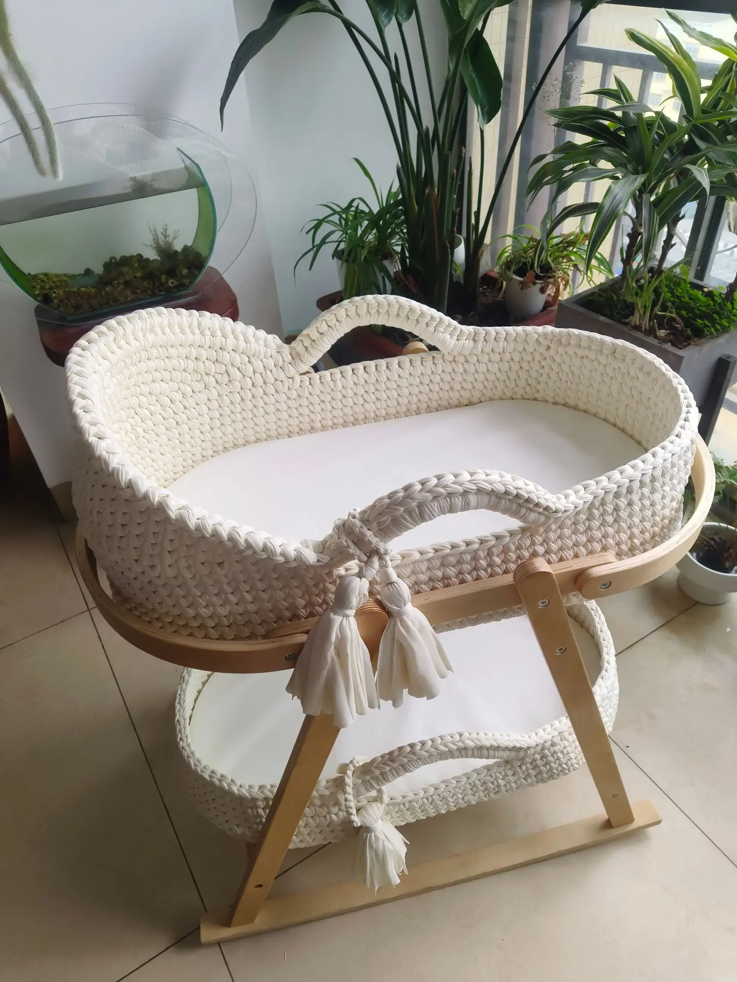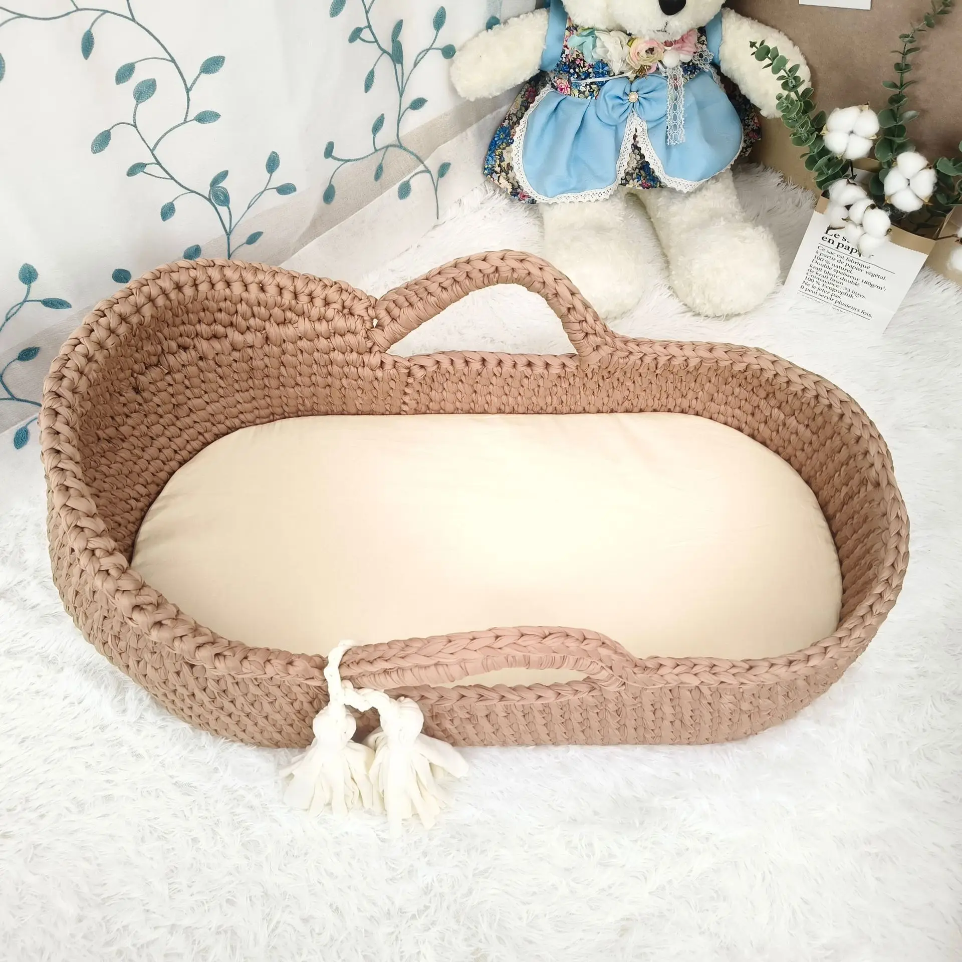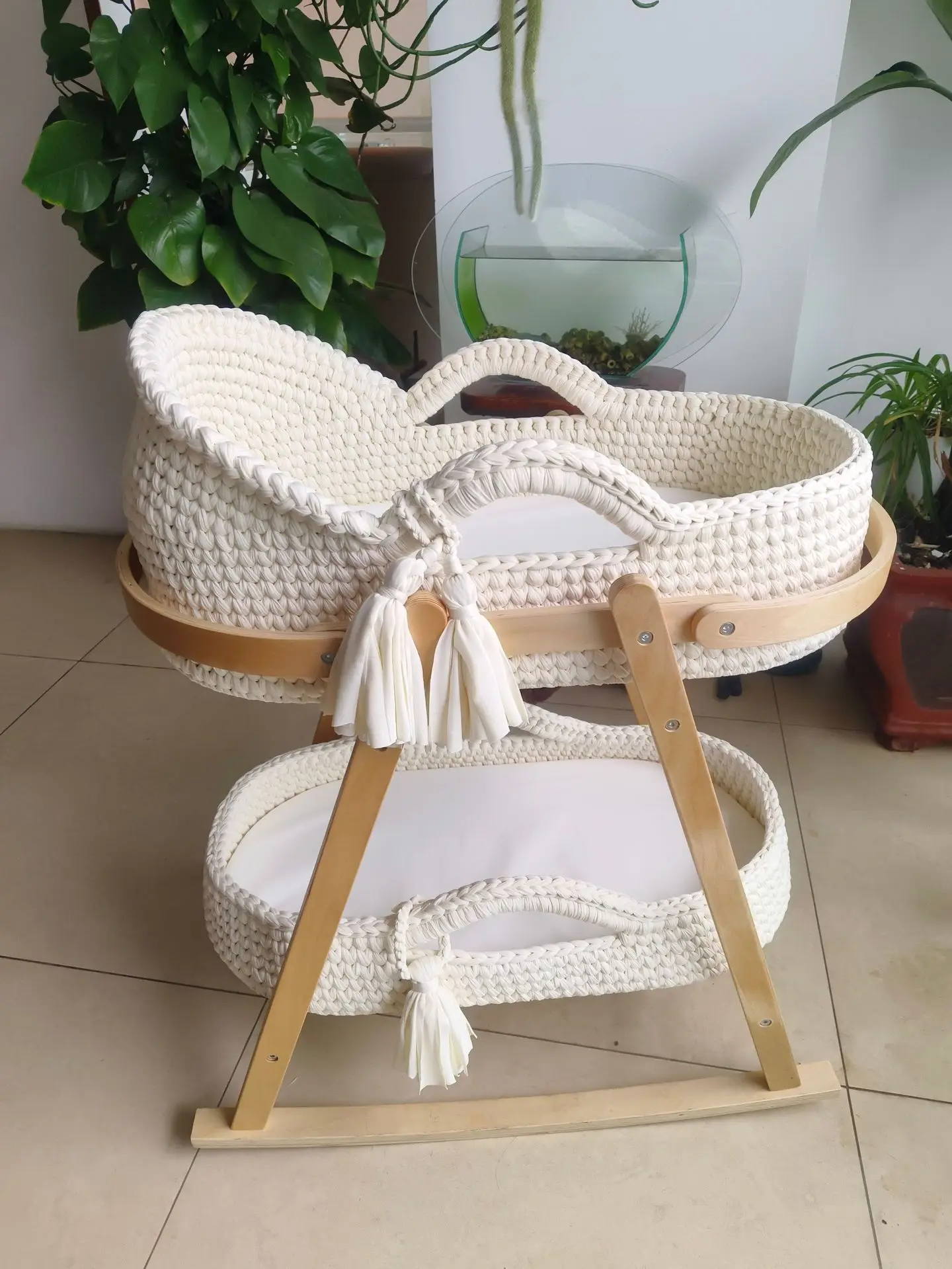 Cesta tejida a mano para bebé Moisés, cuna para bebé, cesta cambiadora de pañales neonatal