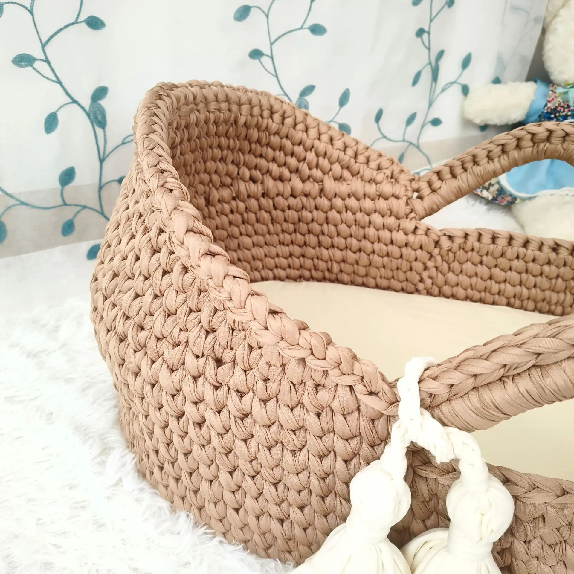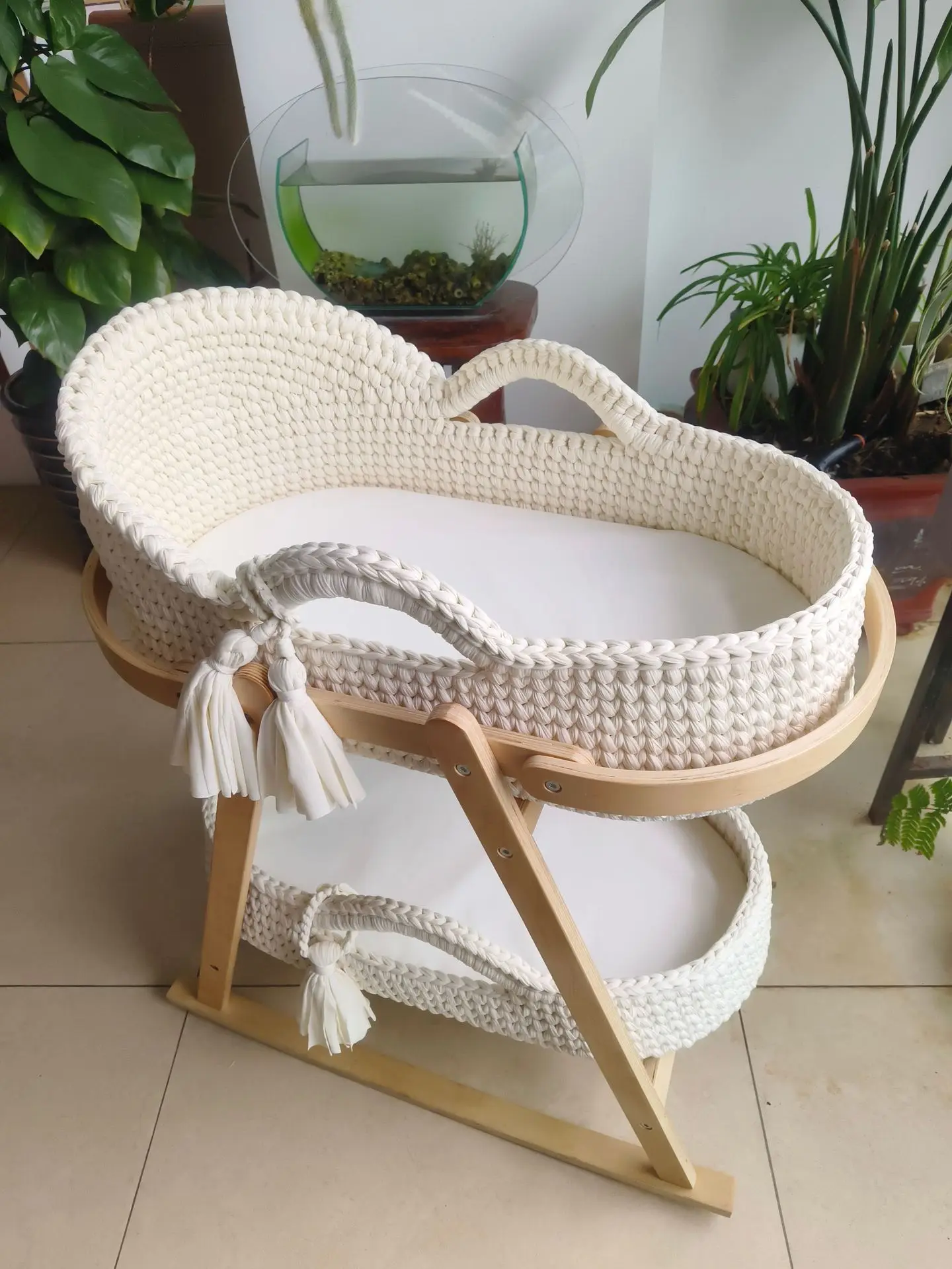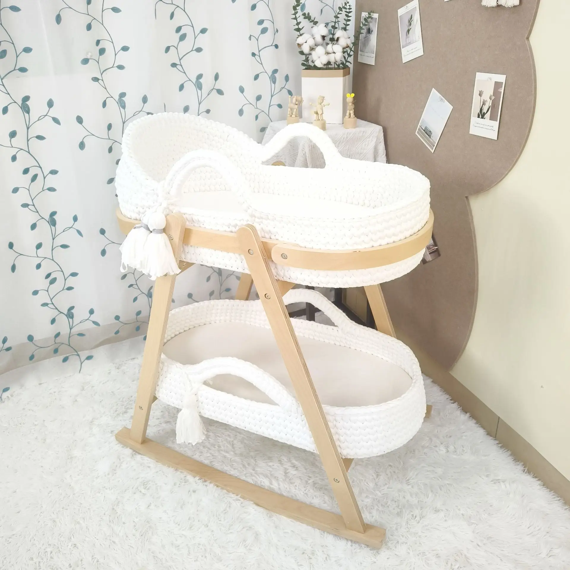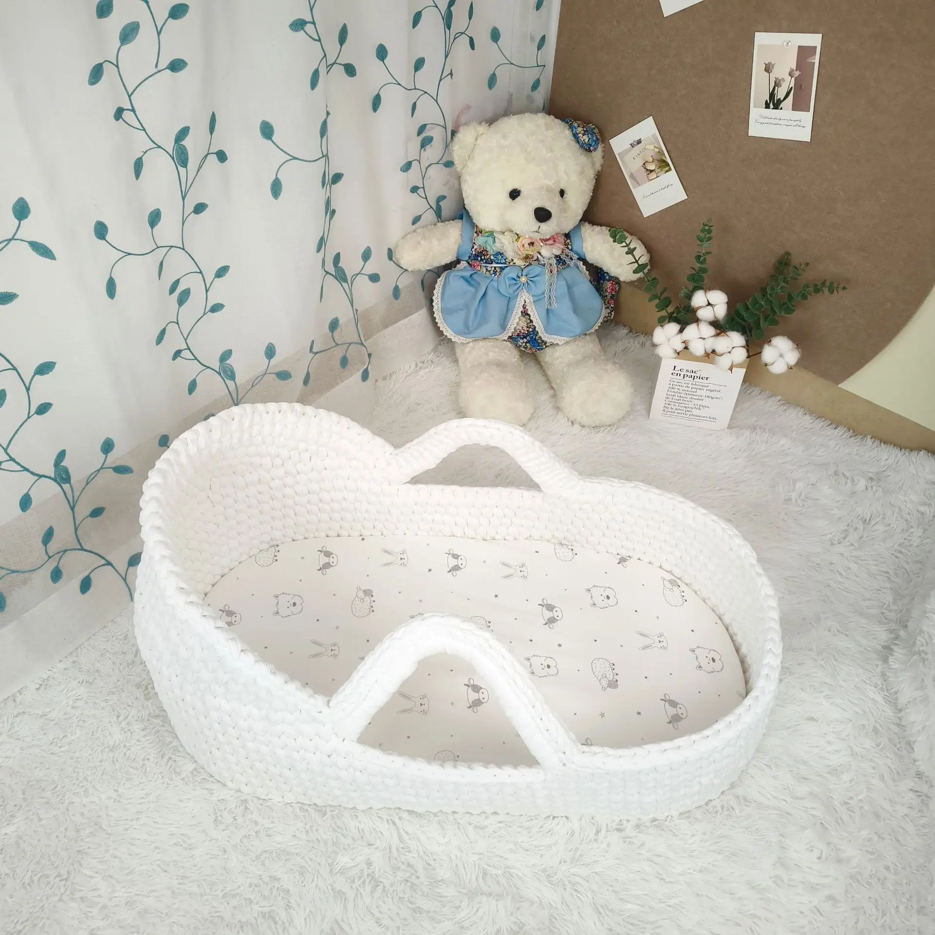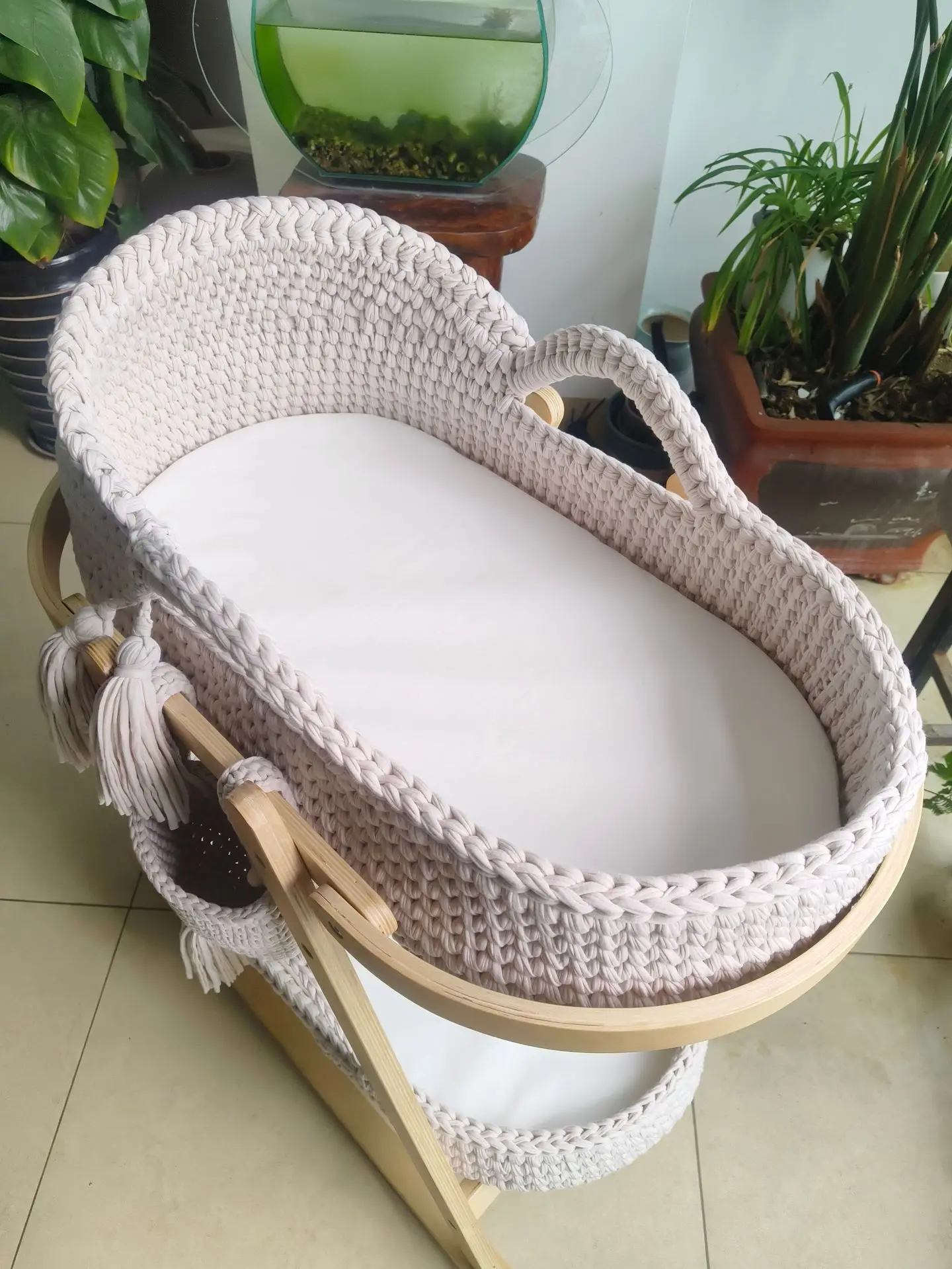 Cesta tejida a mano para bebé Moisés, cuna para bebé, cesta cambiadora de pañales neonatal