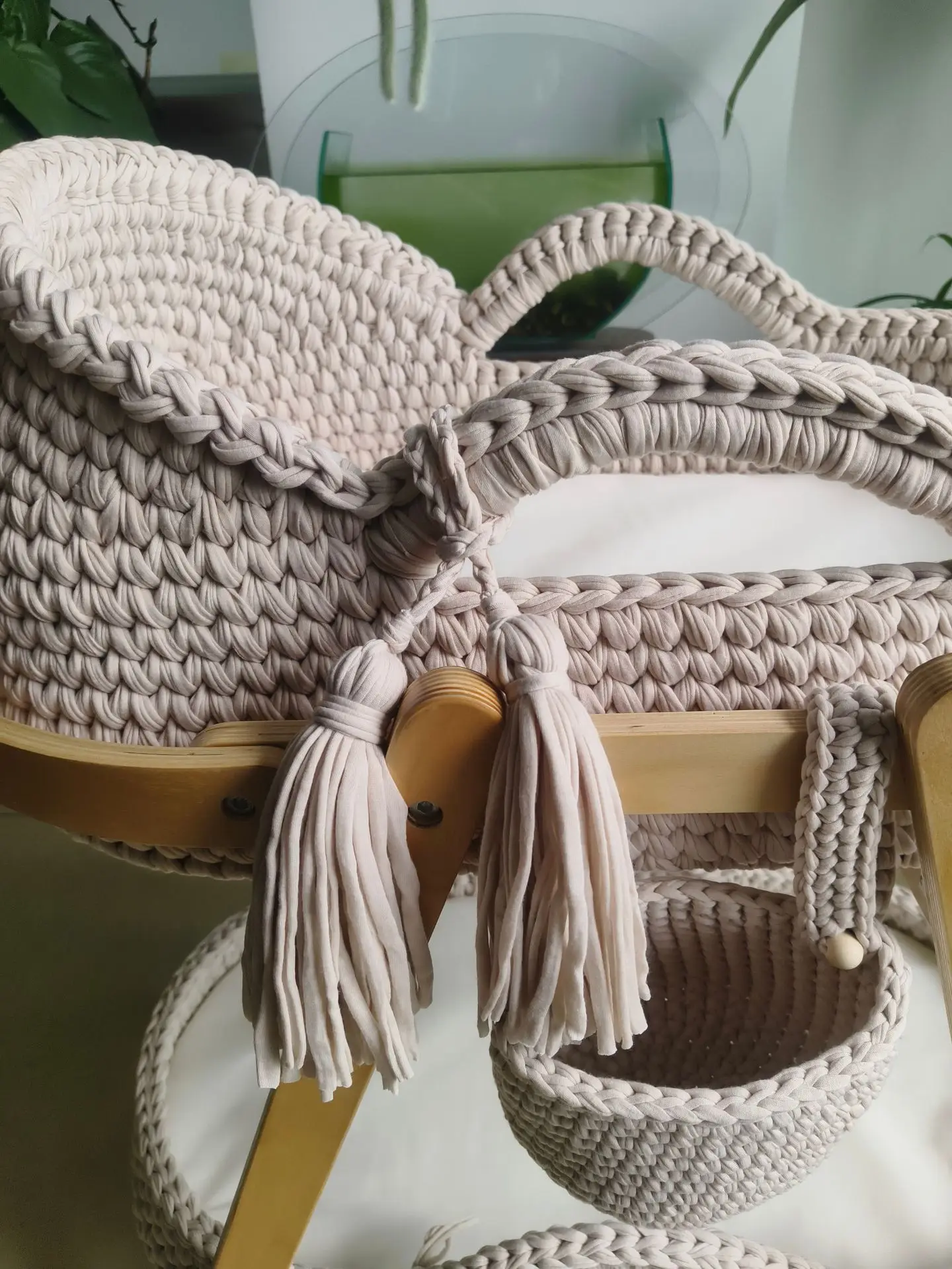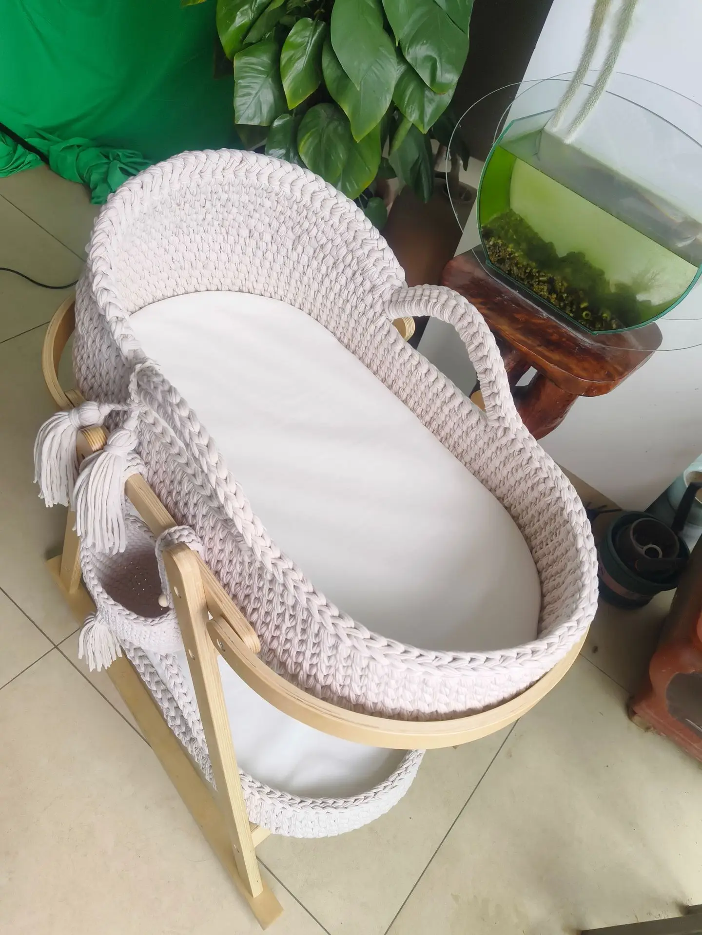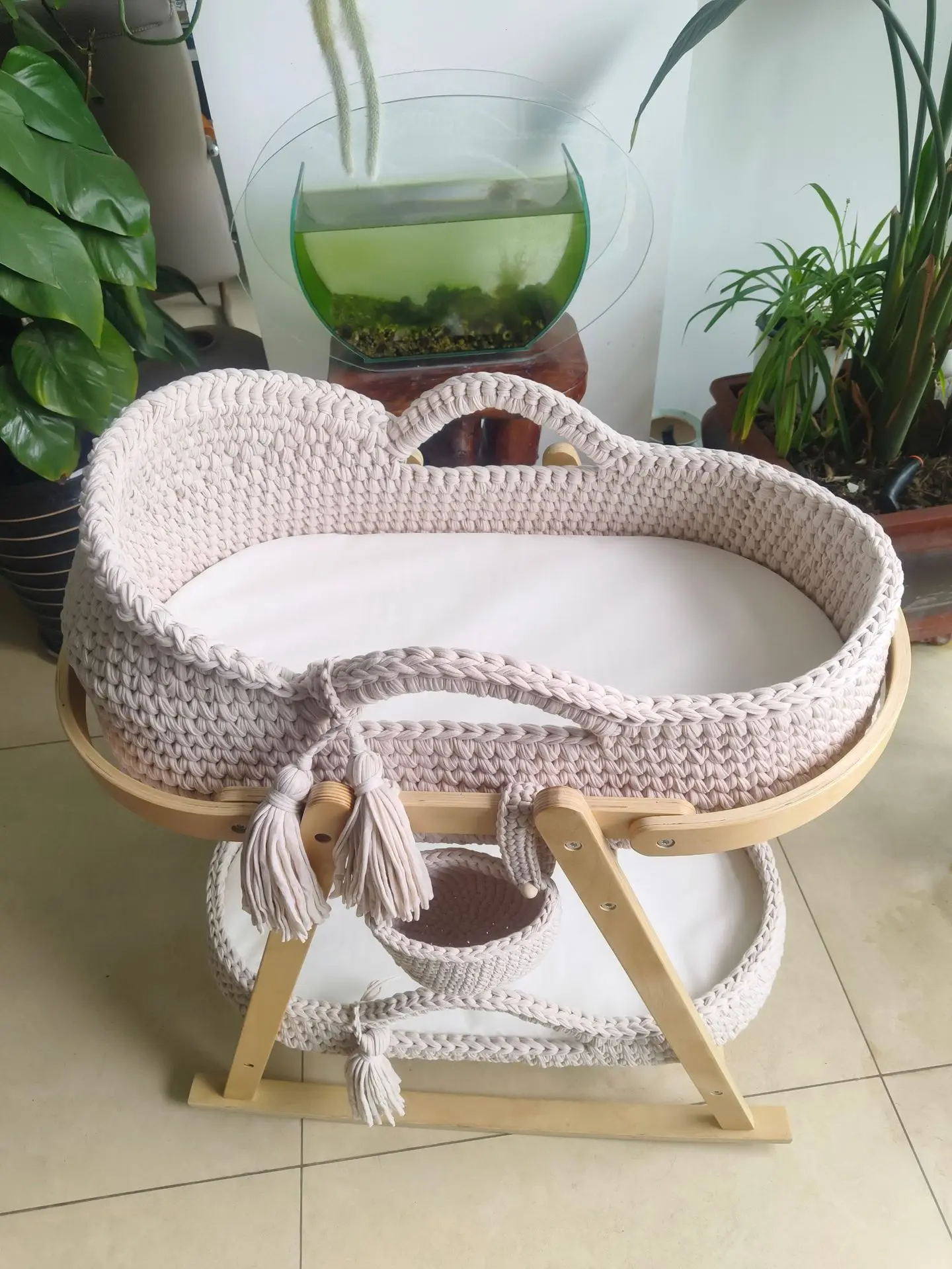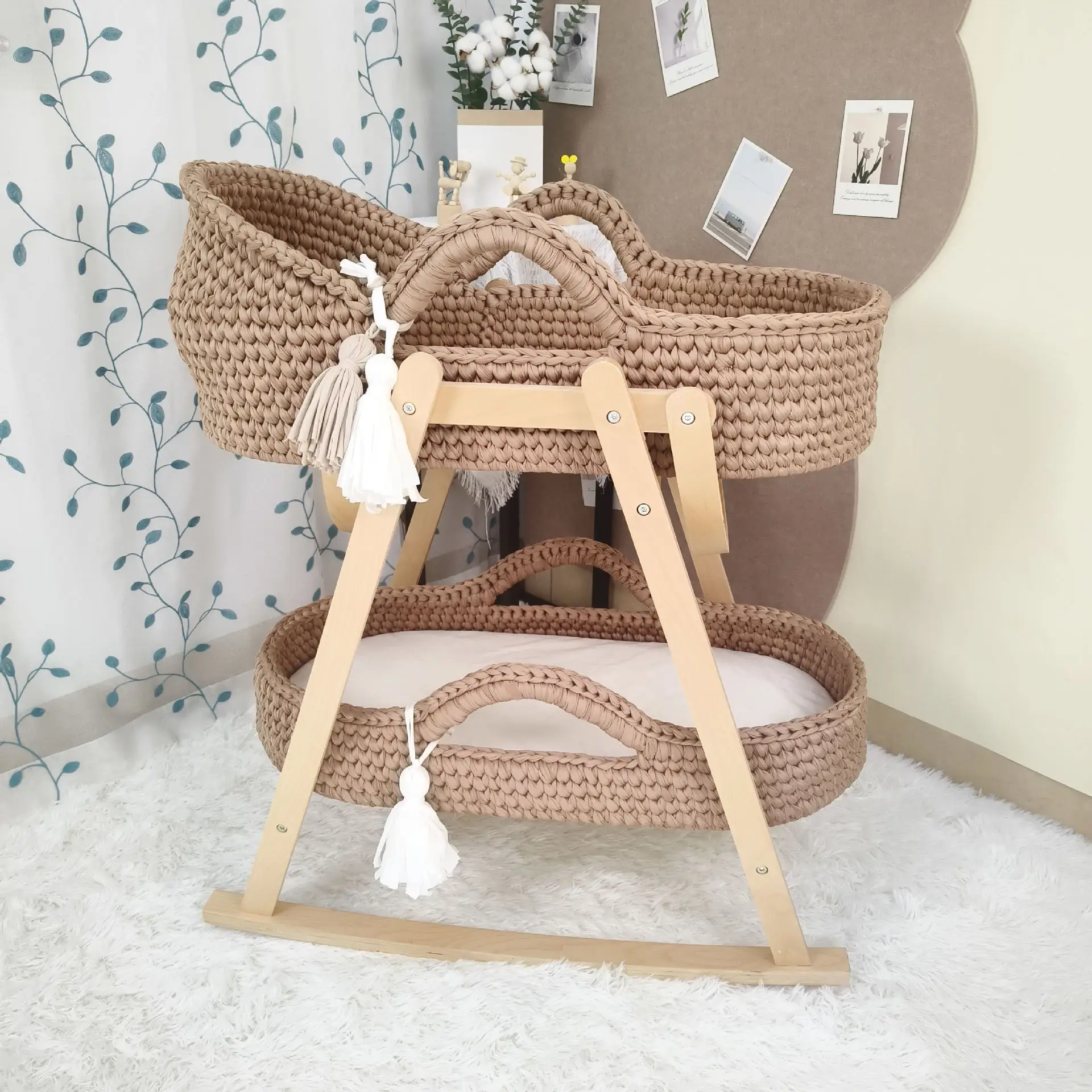 Cesta tejida a mano para bebé Moisés, cuna para bebé, cesta cambiadora de pañales neonatal