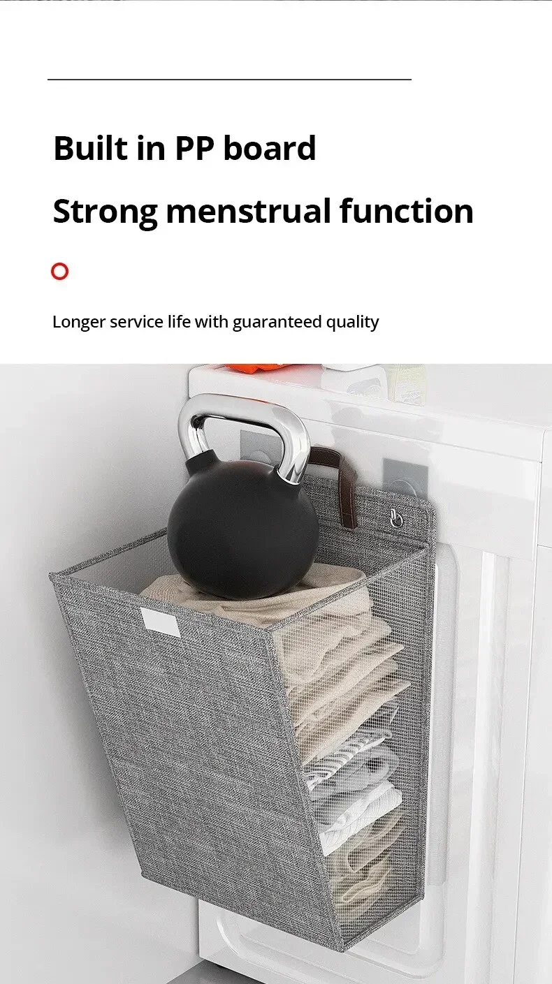 • Material adhesivo para una fijación segura a las paredes: El material adhesivo de este cesto para la ropa sucia garantiza una fijación segura a las paredes, evitando que se resbale o caiga.