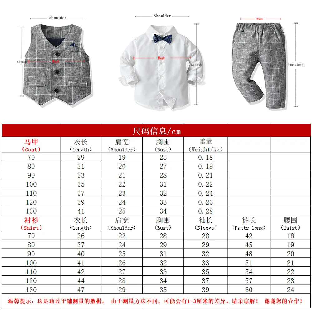 Comprar Chaleco a cuadros coreano para niños, camisa blanca y pantalones, traje para bebés de 2 a 10 años, ropa para niños de 70 a 130cm, otoño