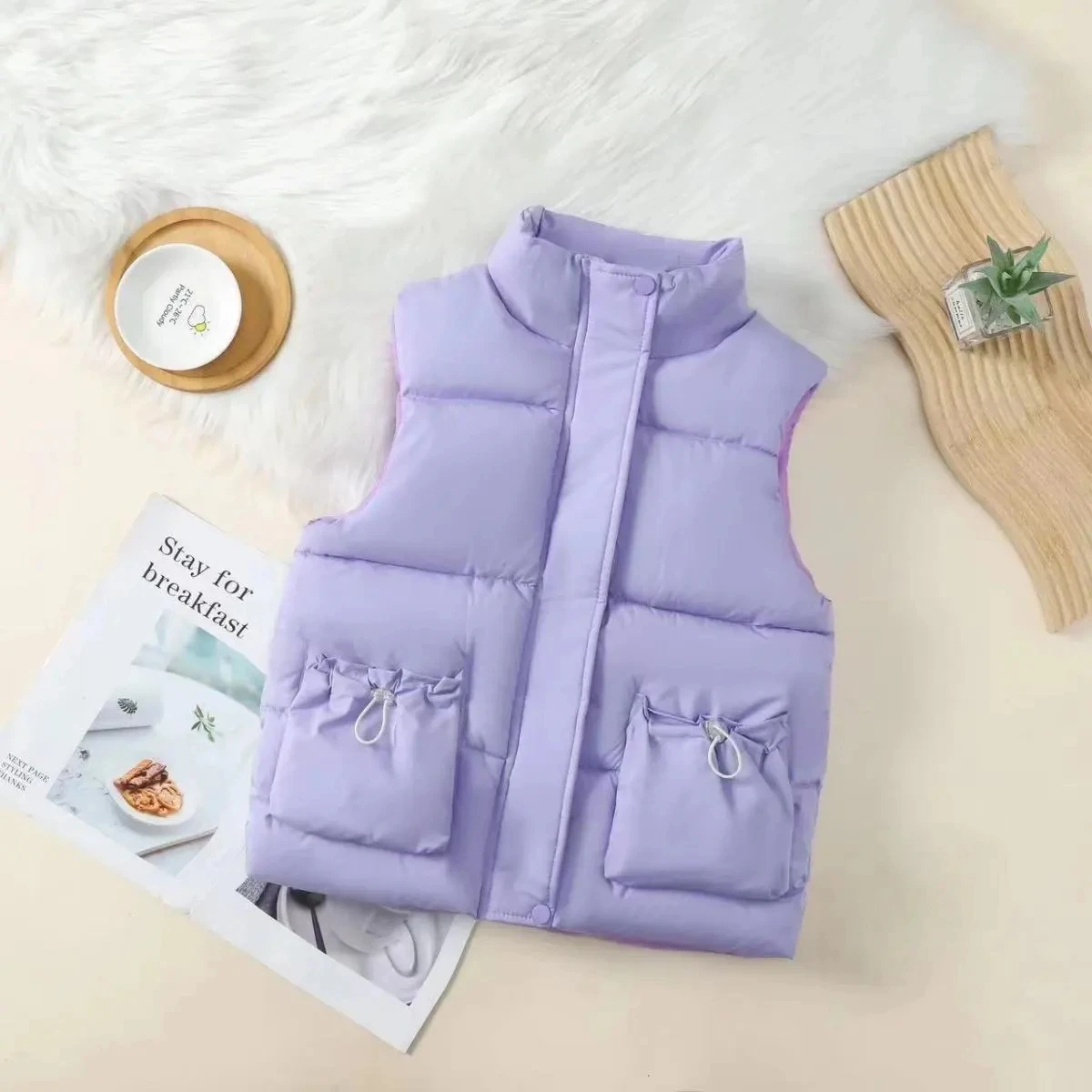 Comprar Chaleco de algodón con cuello levantado para niña, ropa de abrigo cálida de Color sólido, informal, para otoño e invierno, novedad