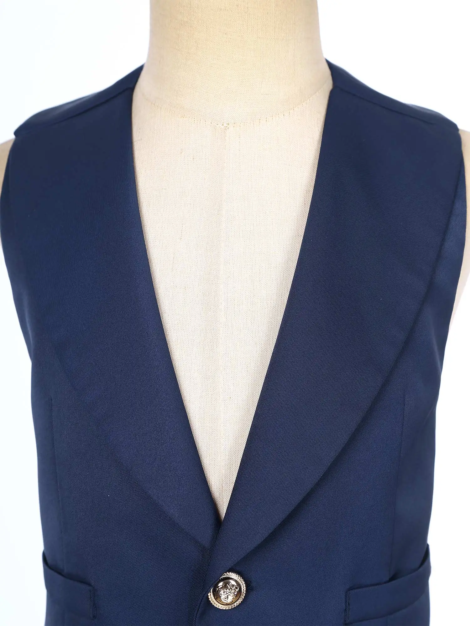 Diseñado con cuello Halter, Espalda descubierta, solapa con cuello en V, botones vintage y forro completo. Este chaleco hace que tu Principito sea guapo y caballero.
