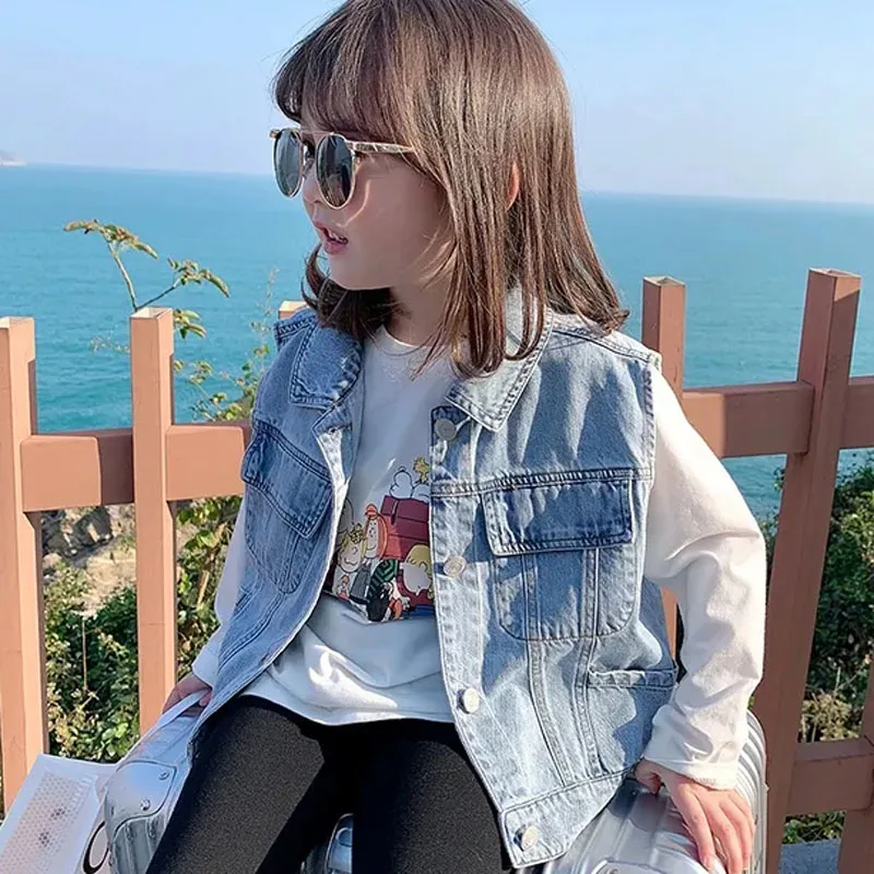 Notas:Comprar Chaleco de mezclilla para niños y niñas, chaleco informal de una sola botonadura, azul, ropa de bebé