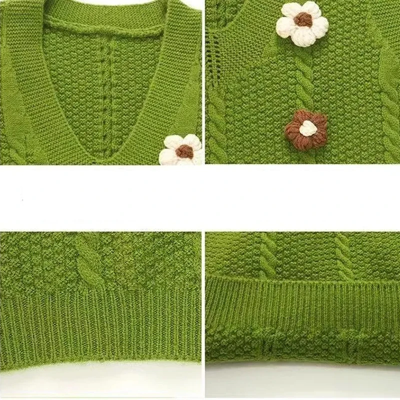 Chaleco tejido con cuello en V para niñas, chaleco para bebé de primavera y otoño, jersey sin mangas, chaleco con decoración floral, suéter para niños - imagen 4