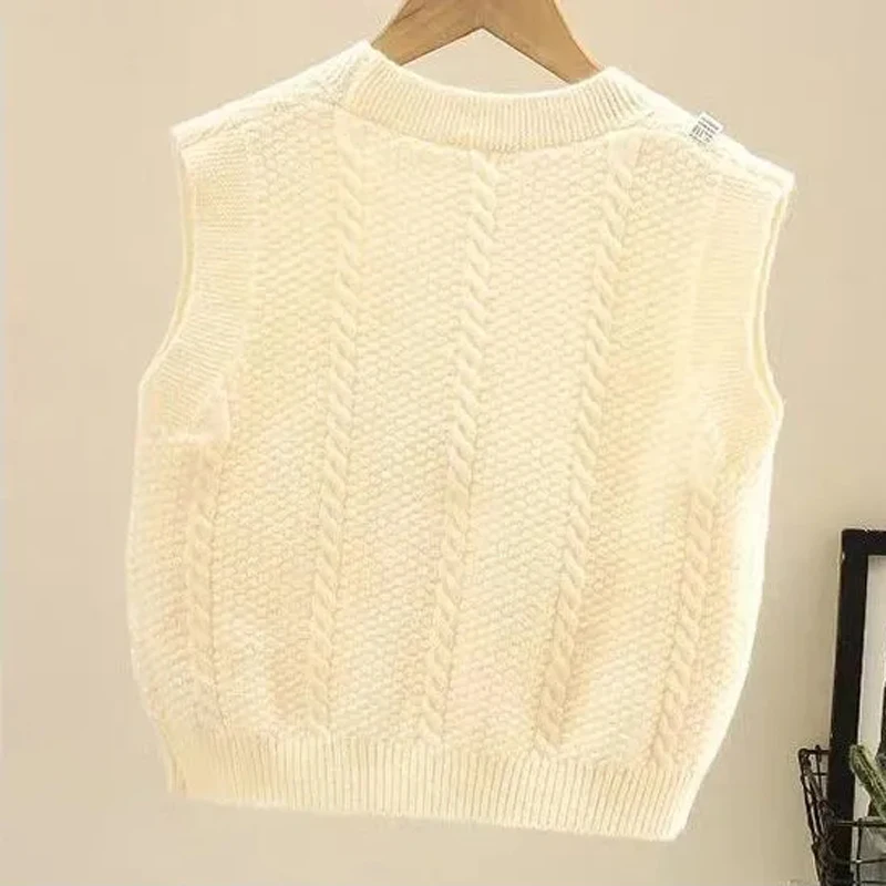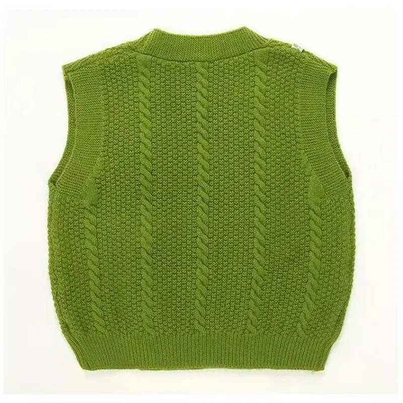 Chaleco tejido con cuello en V para niñas, chaleco para bebé de primavera y otoño, jersey sin mangas, chaleco con decoración floral, suéter para niños - imagen 5
