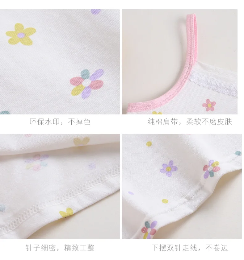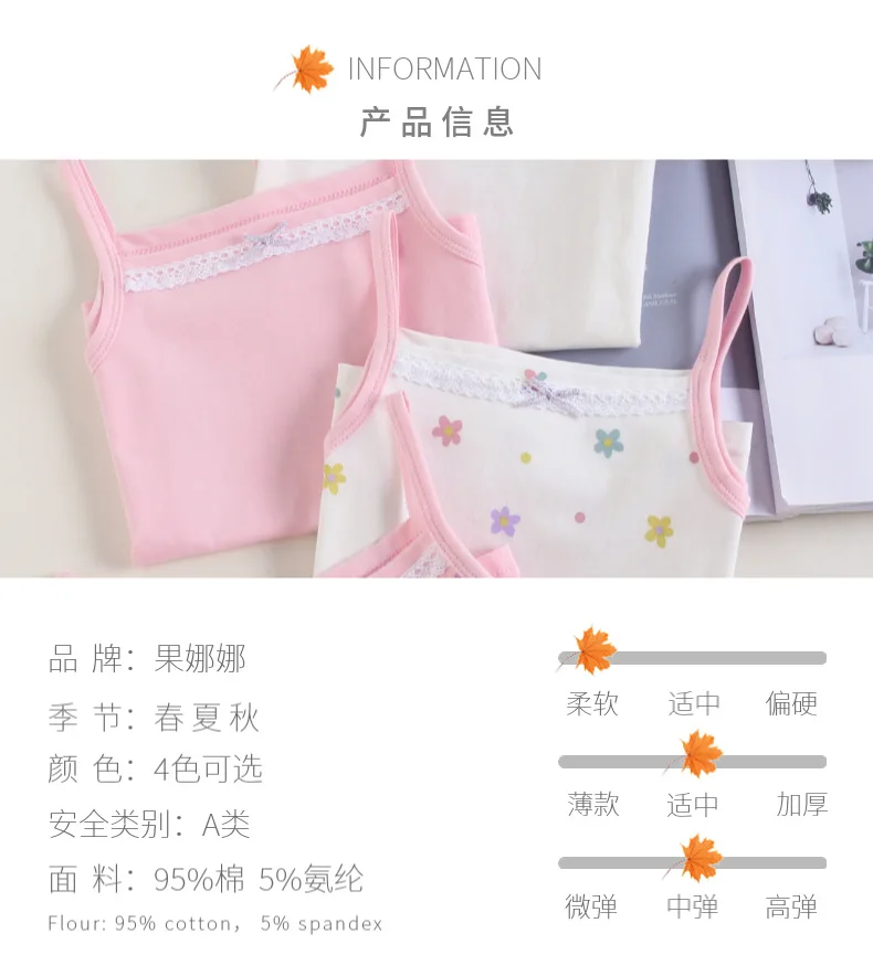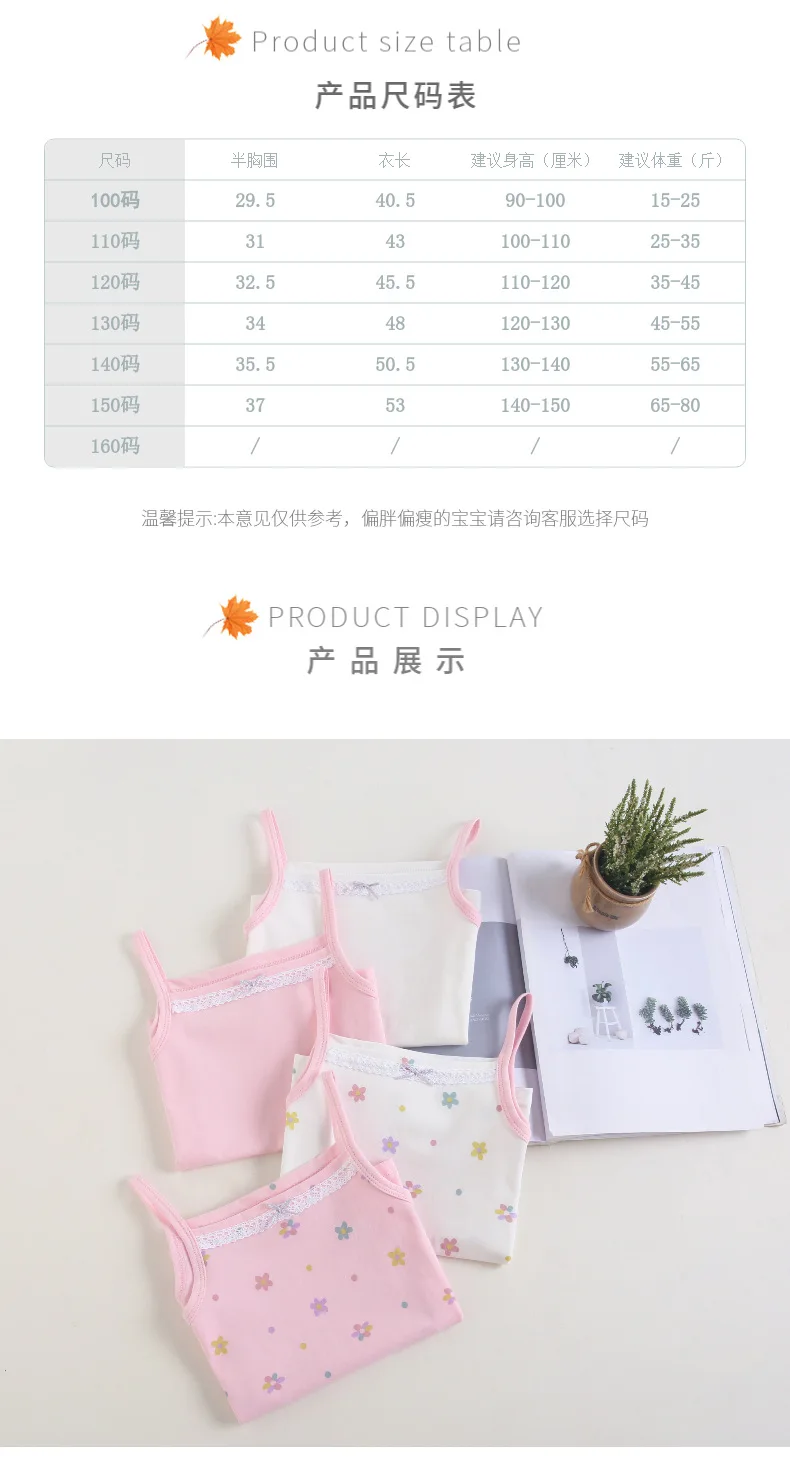 Chaleco con tirantes para niñas de 3 a 10 años, de algodón para niños, versión interior coreana, camisa de fondo para niños de verano, chaleco pequeño de encaje Tejido: 95% algodón + 5% spandex. Etiqueta: 100-150, adecuada para niñas de 3 a 10 años.