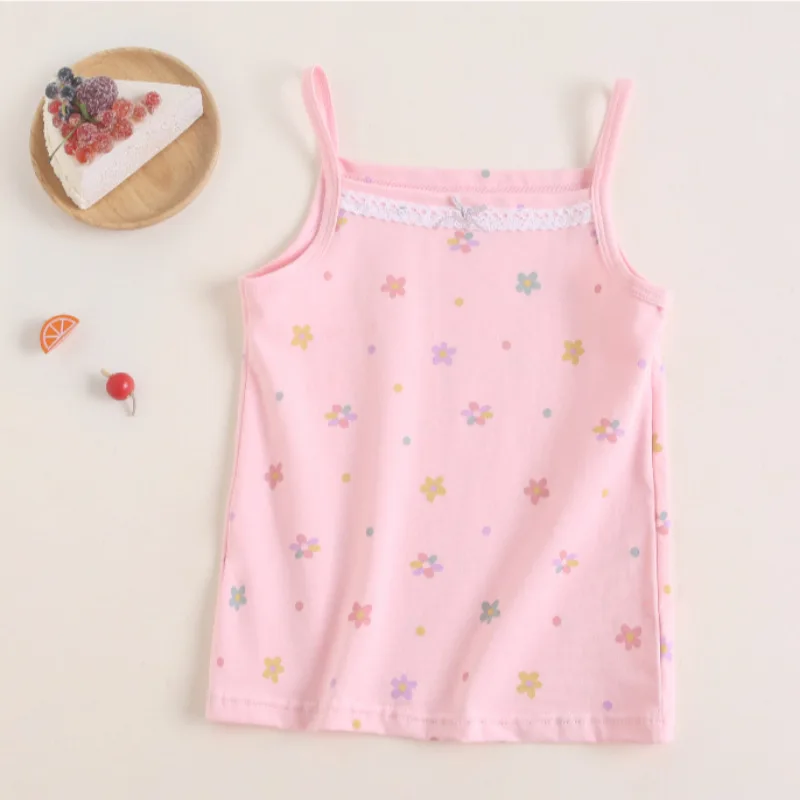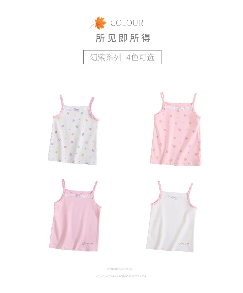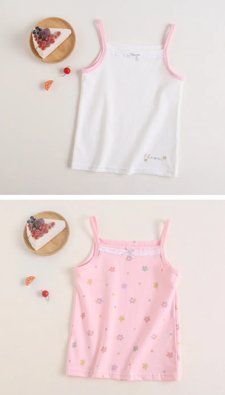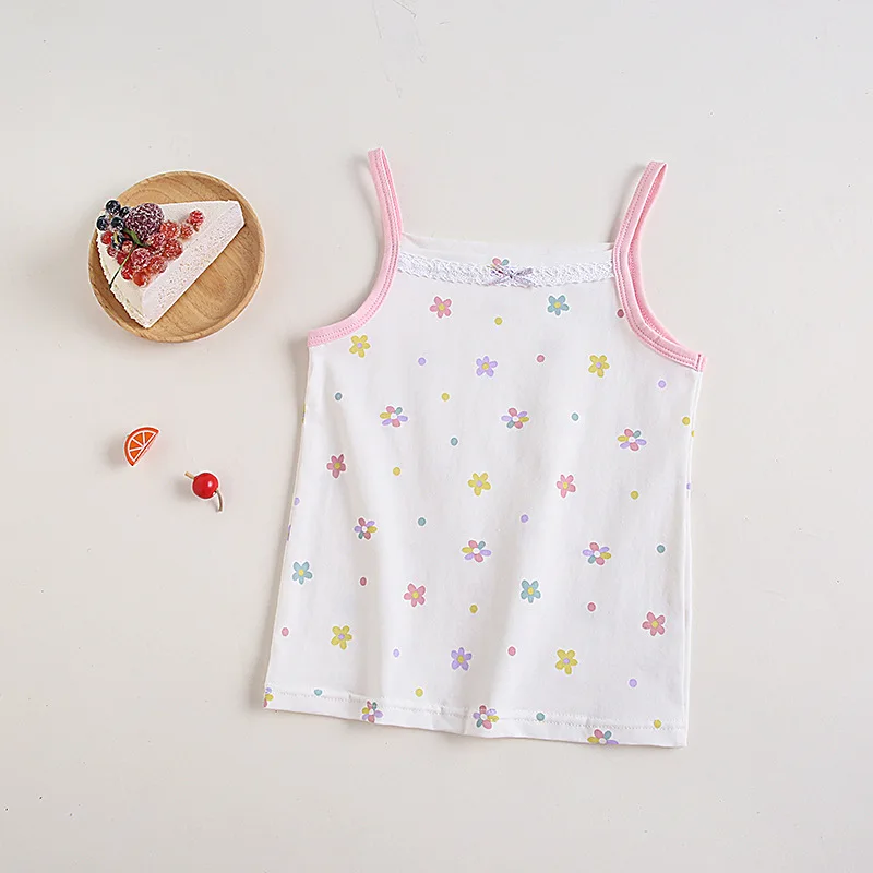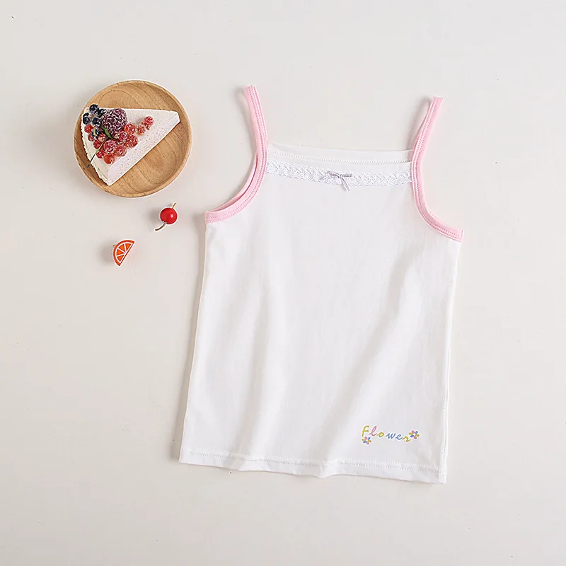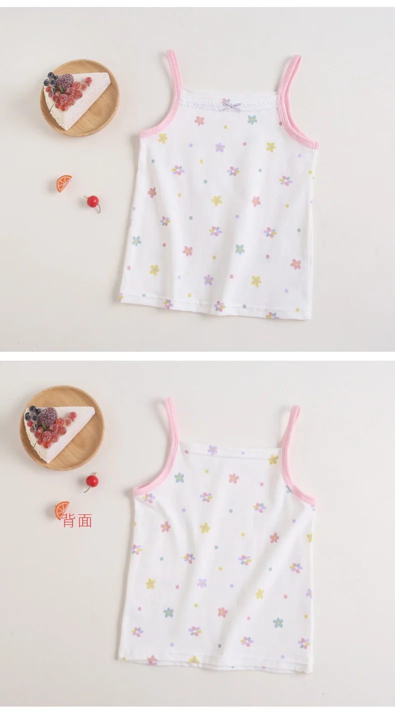 Chaleco con tirantes para niñas de 3 a 10 años, camisa interior de algodón para bebés, versión coreana, camisa de fondo para niños de verano, chaleco pequeño de encaje