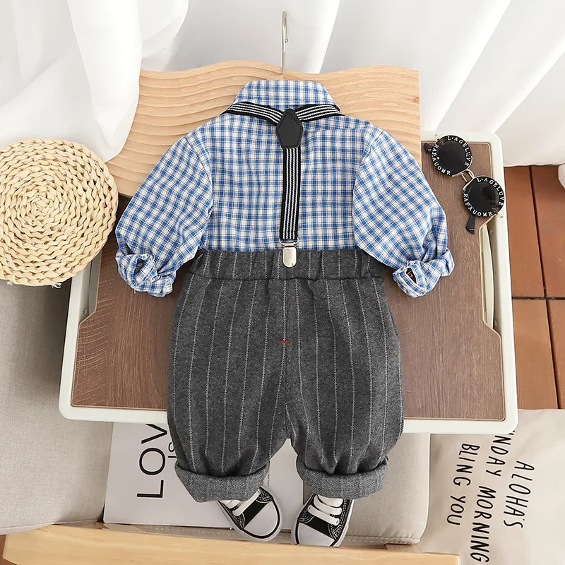 Nueva ropa de otoño para bebés, camisa a cuadros de manga larga para niños, pantalones, 2 unids/set, ropa para niños pequeños, disfraz infantil, chándales para niños de 0 a 4 años